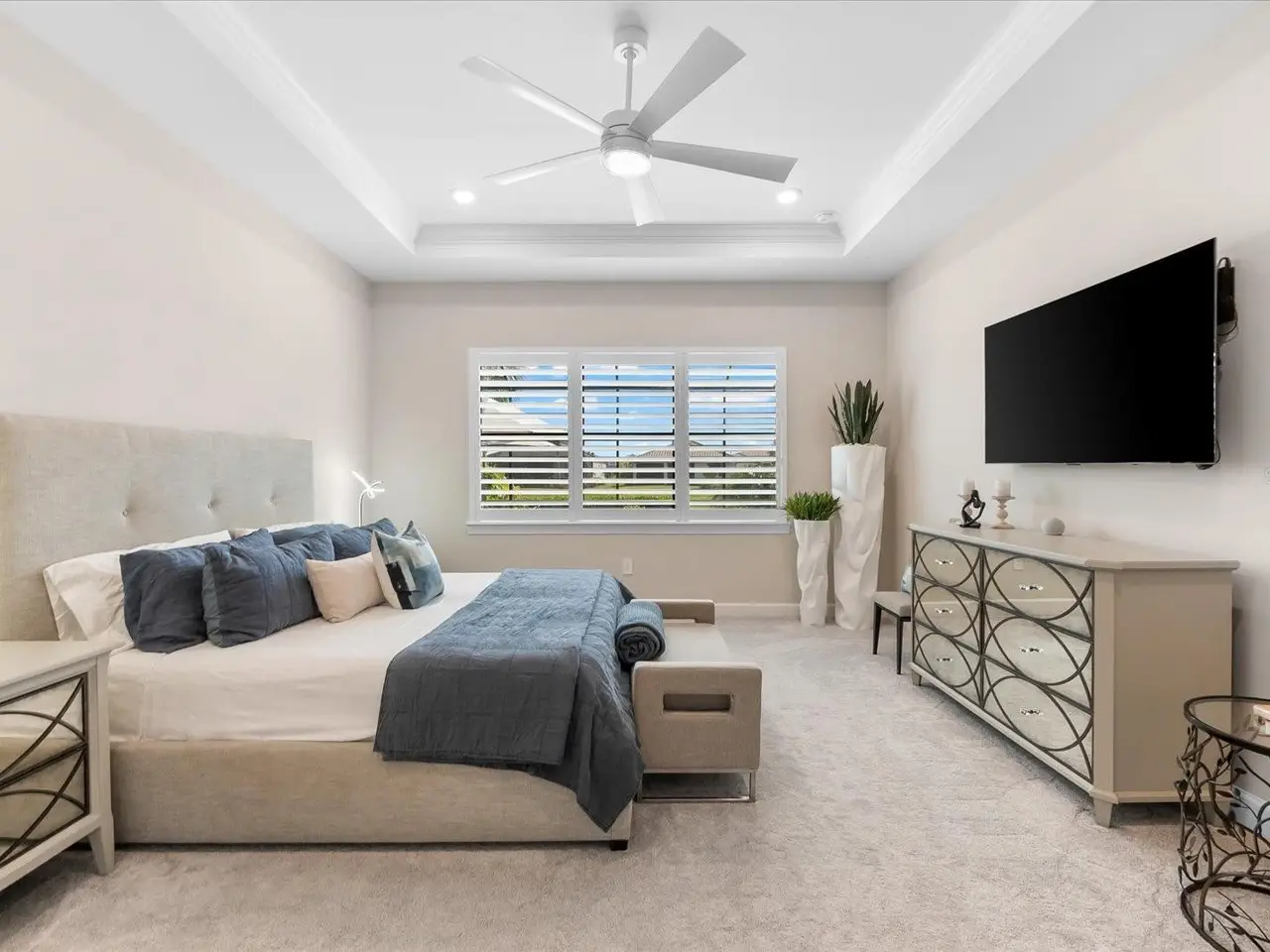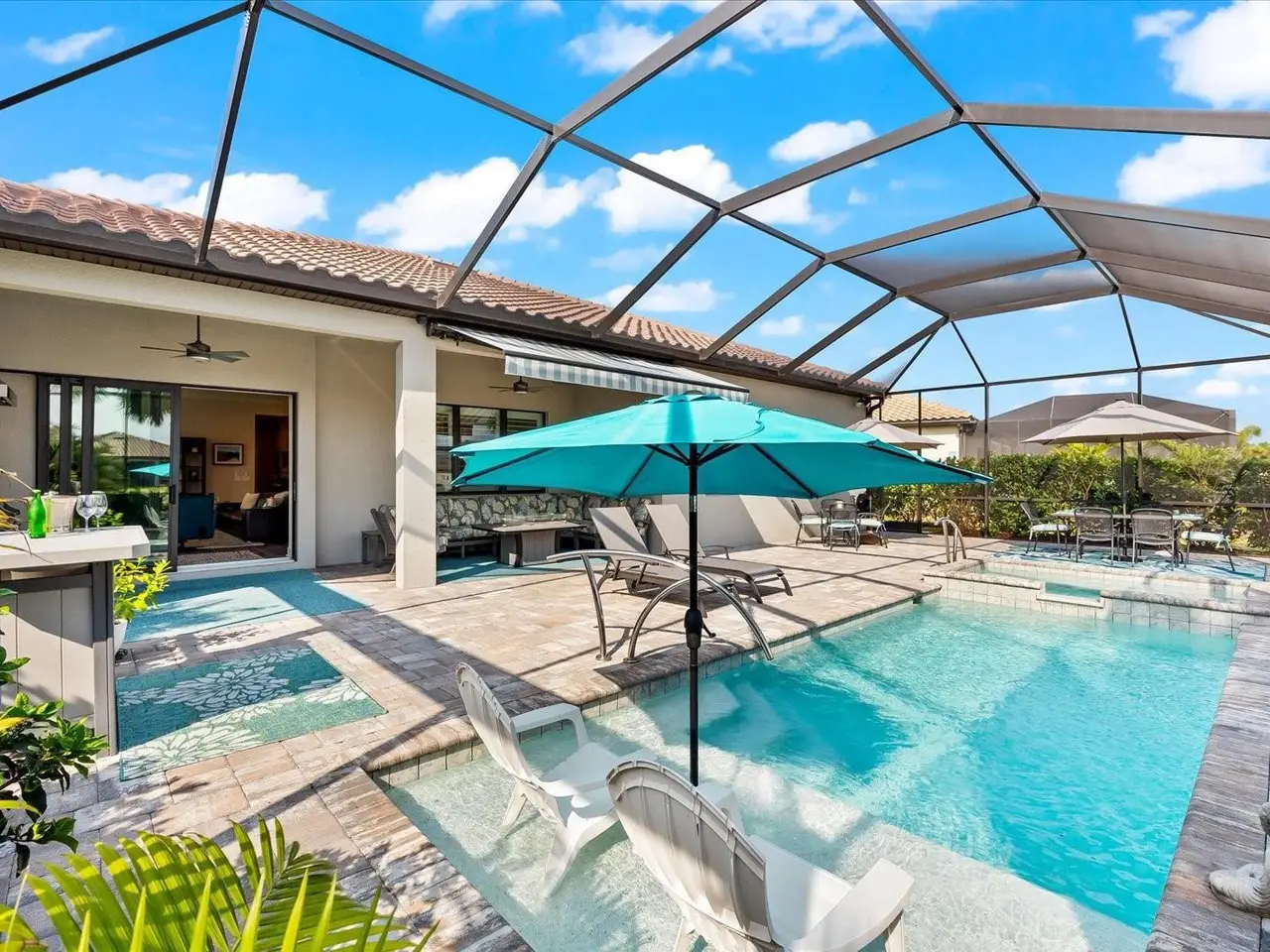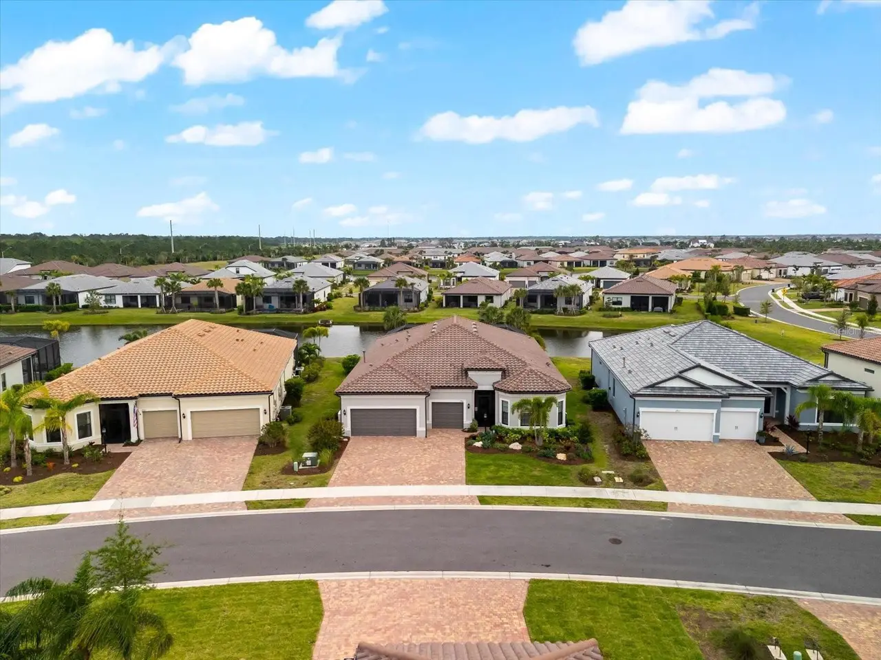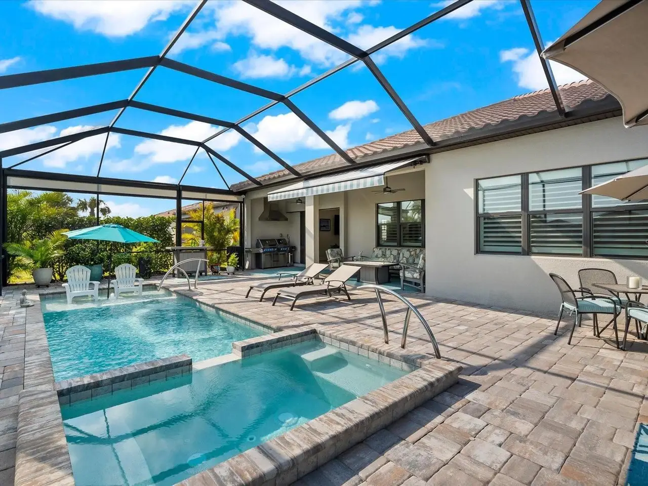 Modern Comfort Meets Resort-Style Living in Del Webb Lakewood Ranch. Welcome to easy, elegant living in the heart of Del Webb Lakewood Ranch—one of the area's most desirable 55+ communities. Set on a premium south-facing waterfront lot, this beautifully upgraded Renown floor plan offers everything you need for comfort, style, and low-maintenance Florida living. Step inside to discover an open, airy layout with three spacious bedrooms, 3.5 bathrooms, and a flexible bonus room—perfect for a home office, hobby space, or additional living area. Thoughtful upgrades shine throughout the home, from tray ceilings and crown molding to plantation shutters and impact-resistant windows and doors. The gourmet kitchen is a standout feature, complete with Bosch induction cooktop, built-in double ovens, stainless steel range hood, two-zone wine fridge, wine rack, reverse osmosis system, touchless faucet, custom cabinetry, and a perfectly organized walk-in pantry. The oversized island is the heart of the home—ideal for casual dining, entertaining, or prepping meals in style. The owner’s suite is your personal retreat, featuring a luxurious bath with dual vanities, an oversized walk-in shower, private water closet, and two custom walk-in closets. Two additional guest suites, each with their own private bath and walk-in closet, offer comfort and privacy for visitors. Enjoy peace of mind with a whole-house 24kW generator, water softener system, and an extended three-car garage with built-in storage and epoxy floors. A separate powder room, drop zone, and large laundry room add to the home’s smart and functional design. Love the outdoors? You’ll appreciate the custom-designed heated saltwater pool and spa, extended brick-paver lanai, automatic sunshades, awning, and panoramic water views—perfect for relaxing or entertaining year-round. Large pocket sliding doors open wide to blend indoor and outdoor living effortlessly. Living in Del Webb Lakewood Ranch means more than just a beautiful home—it’s a lifestyle. Enjoy access to top-tier amenities including six tennis courts, eight pickleball courts, bocce ball, a fitness center with group classes, a resort-style and lap pool, on-site restaurant and bar, and endless social opportunities organized by a full-time Lifestyle Director. With close proximity to Gulf Coast beaches, airports, shopping, dining, and culture, this home truly has it all. Move-in ready and meticulously maintained—don’t miss the opportunity to make it yours.