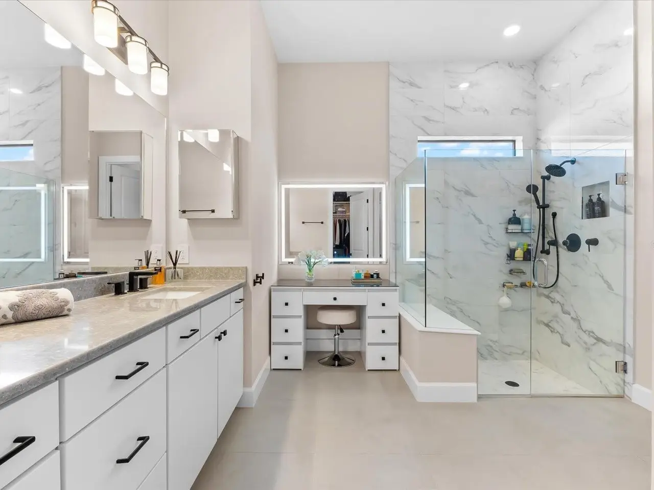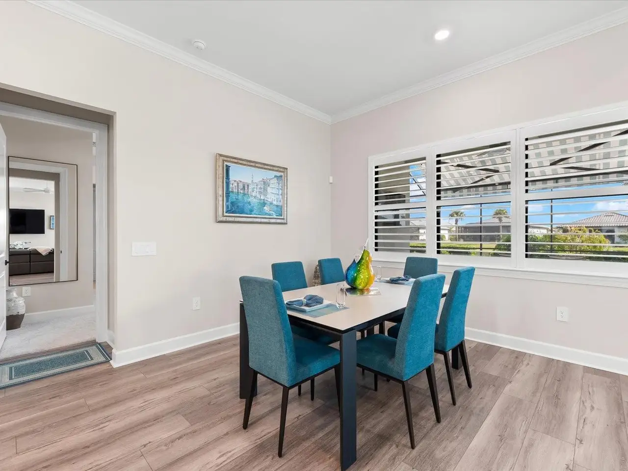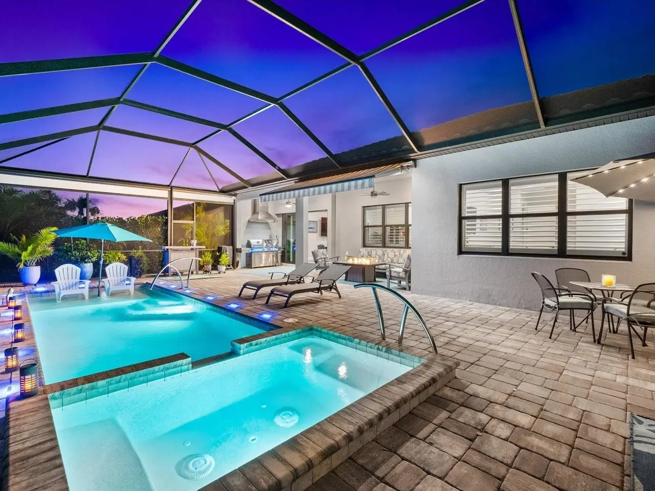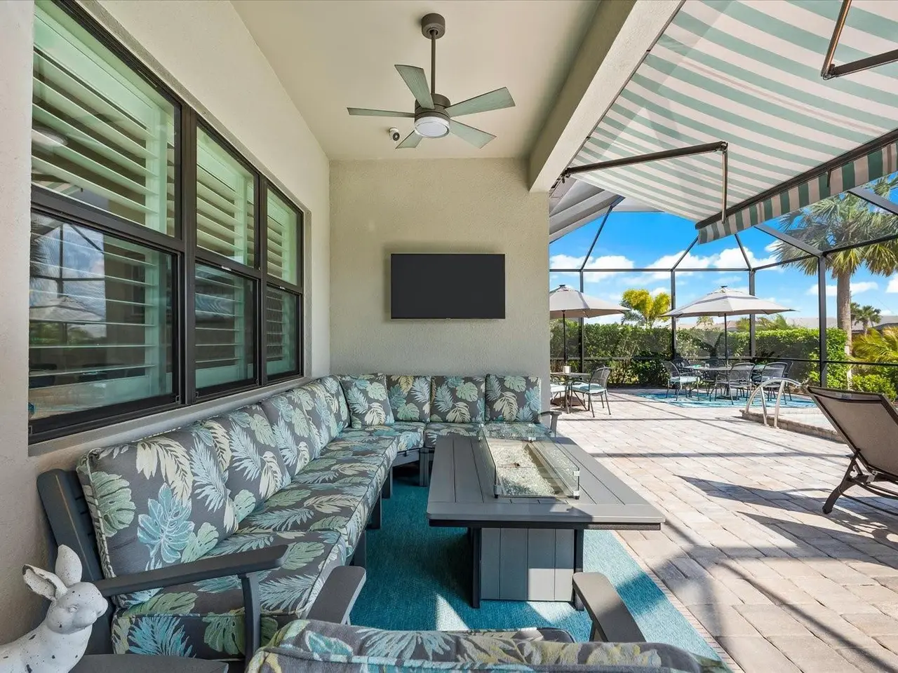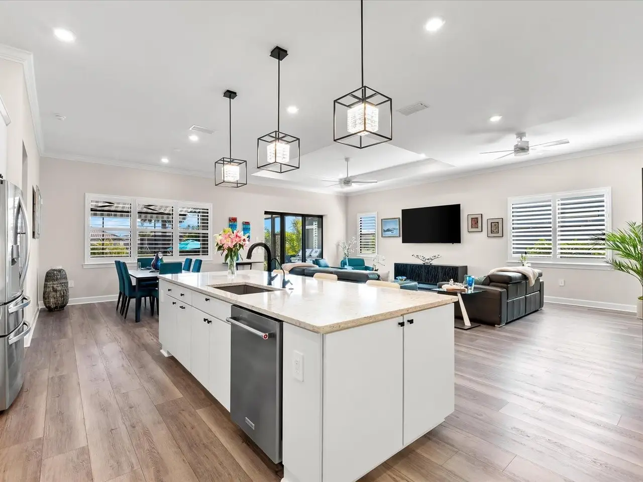 Modern Comfort Meets Resort-Style Living in Del Webb Lakewood Ranch. Welcome to easy, elegant living in the heart of Del Webb Lakewood Ranch—one of the area's most desirable 55+ communities. Set on a premium south-facing waterfront lot, this beautifully upgraded Renown floor plan offers everything you need for comfort, style, and low-maintenance Florida living. Step inside to discover an open, airy layout with three spacious bedrooms, 3.5 bathrooms, and a flexible bonus room—perfect for a home office, hobby space, or additional living area. Thoughtful upgrades shine throughout the home, from tray ceilings and crown molding to plantation shutters and impact-resistant windows and doors. The gourmet kitchen is a standout feature, complete with Bosch induction cooktop, built-in double ovens, stainless steel range hood, two-zone wine fridge, wine rack, reverse osmosis system, touchless faucet, custom cabinetry, and a perfectly organized walk-in pantry. The oversized island is the heart of the home—ideal for casual dining, entertaining, or prepping meals in style. The owner’s suite is your personal retreat, featuring a luxurious bath with dual vanities, an oversized walk-in shower, private water closet, and two custom walk-in closets. Two additional guest suites, each with their own private bath and walk-in closet, offer comfort and privacy for visitors. Enjoy peace of mind with a whole-house 24kW generator, water softener system, and an extended three-car garage with built-in storage and epoxy floors. A separate powder room, drop zone, and large laundry room add to the home’s smart and functional design. Love the outdoors? You’ll appreciate the custom-designed heated saltwater pool and spa, extended brick-paver lanai, automatic sunshades, awning, and panoramic water views—perfect for relaxing or entertaining year-round. Large pocket sliding doors open wide to blend indoor and outdoor living effortlessly. Living in Del Webb Lakewood Ranch means more than just a beautiful home—it’s a lifestyle. Enjoy access to top-tier amenities including six tennis courts, eight pickleball courts, bocce ball, a fitness center with group classes, a resort-style and lap pool, on-site restaurant and bar, and endless social opportunities organized by a full-time Lifestyle Director. With close proximity to Gulf Coast beaches, airports, shopping, dining, and culture, this home truly has it all. Move-in ready and meticulously maintained—don’t miss the opportunity to make it yours.