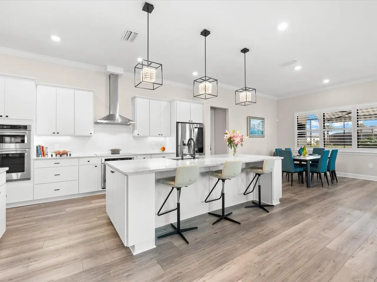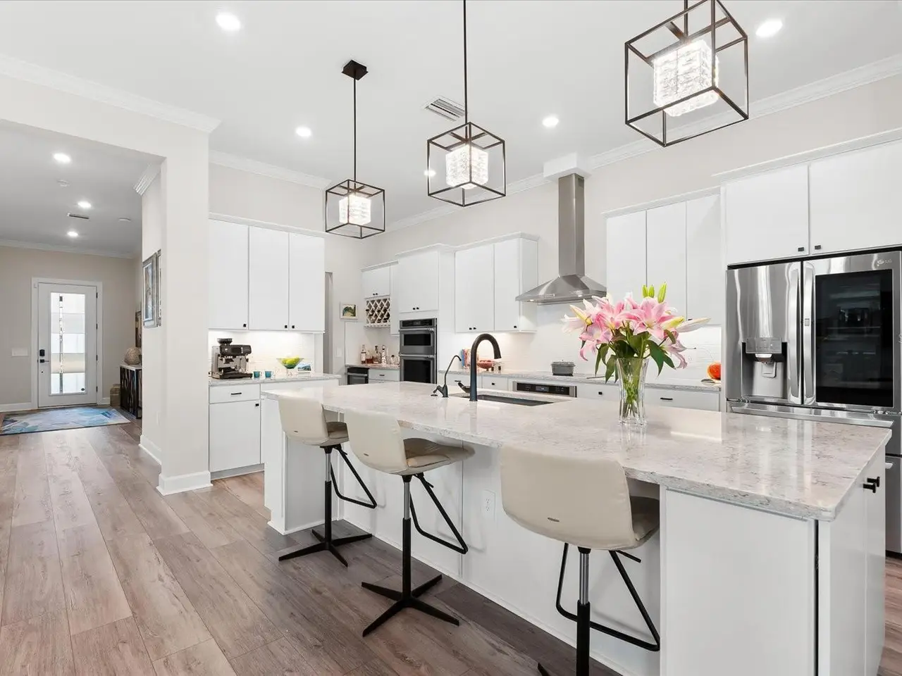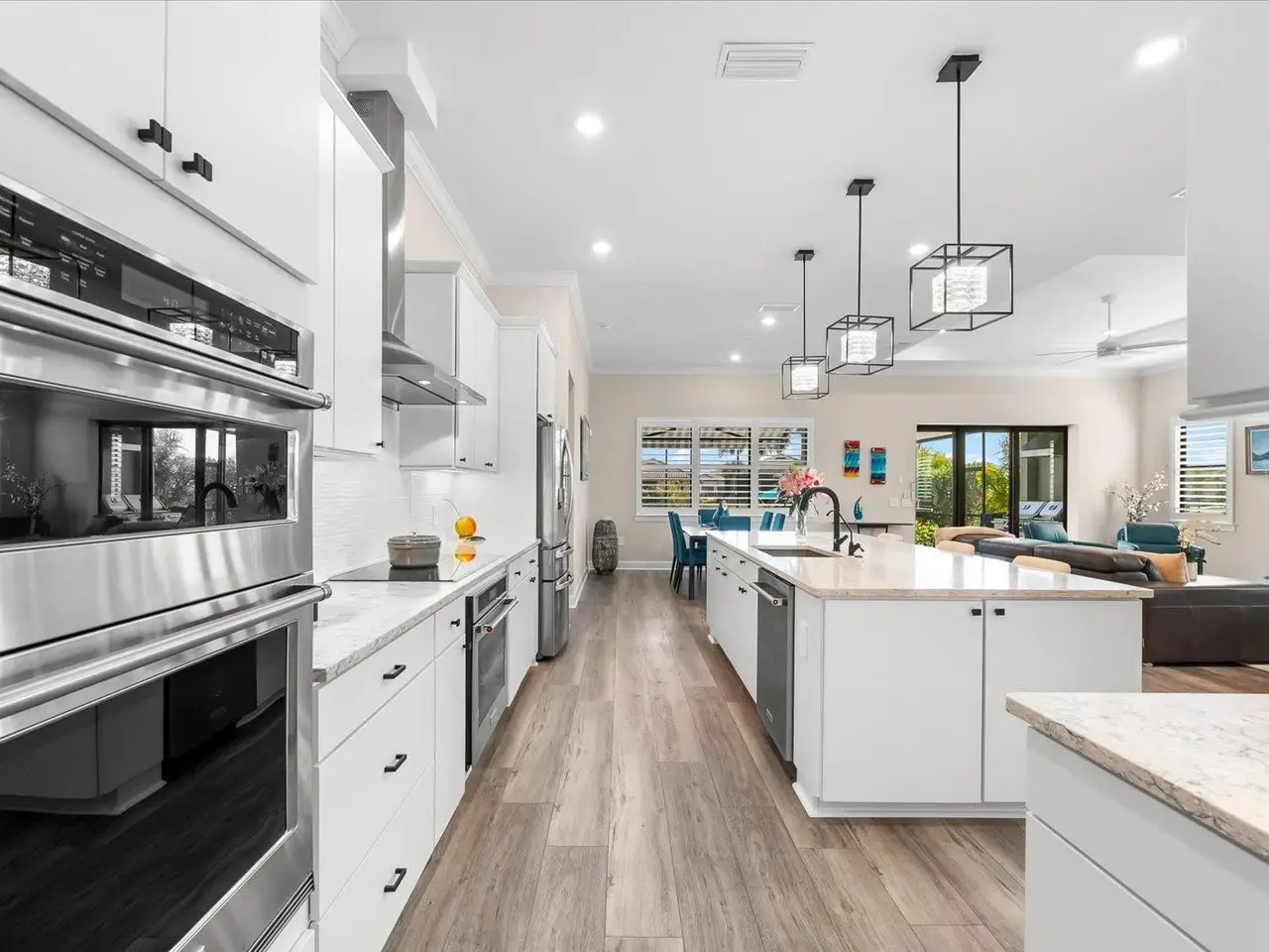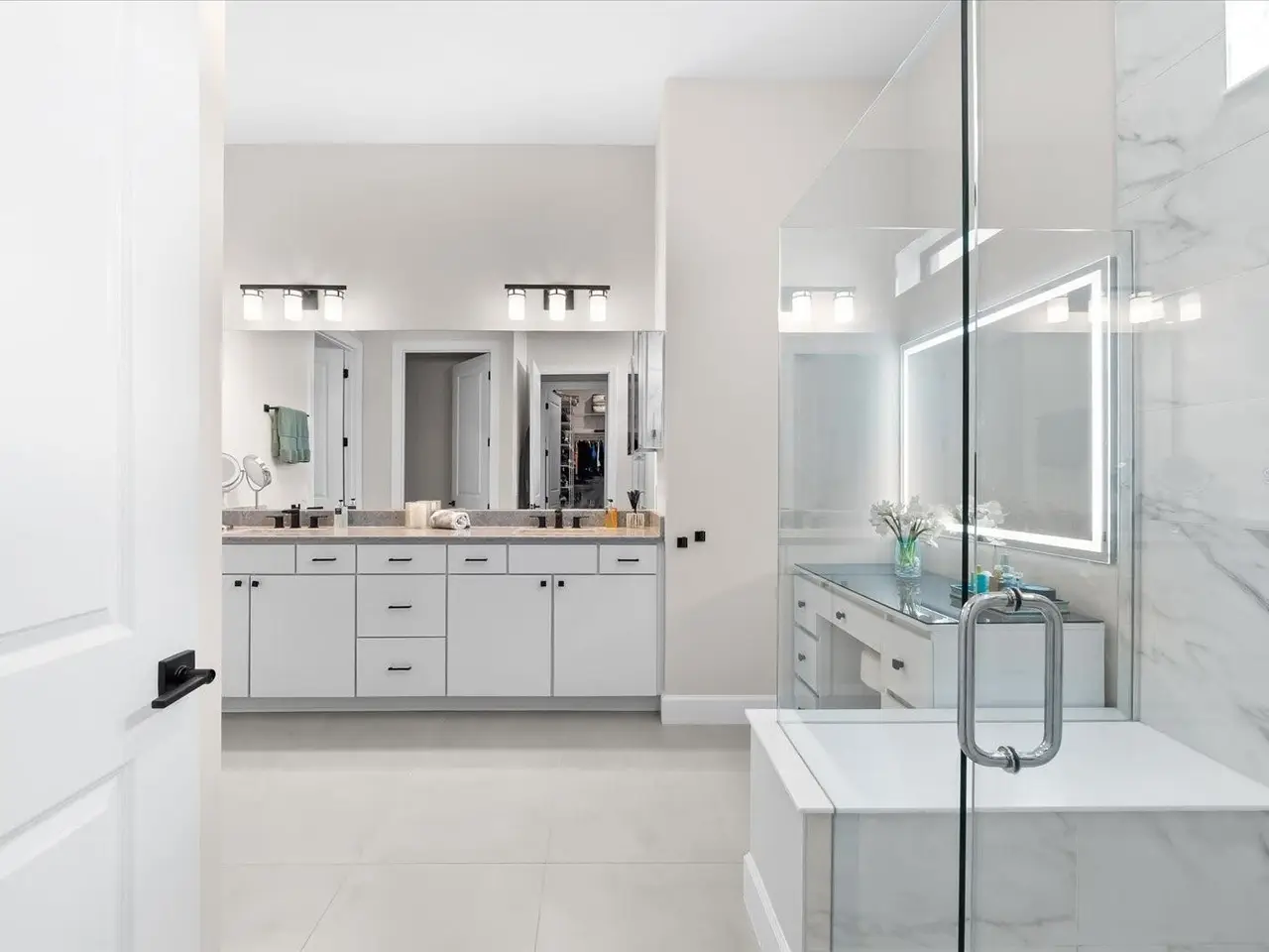 Modern Comfort Meets Resort-Style Living in Del Webb Lakewood Ranch. Welcome to easy, elegant living in the heart of Del Webb Lakewood Ranch—one of the area's most desirable 55+ communities. Set on a premium south-facing waterfront lot, this beautifully upgraded Renown floor plan offers everything you need for comfort, style, and low-maintenance Florida living. Step inside to discover an open, airy layout with three spacious bedrooms, 3.5 bathrooms, and a flexible bonus room—perfect for a home office, hobby space, or additional living area. Thoughtful upgrades shine throughout the home, from tray ceilings and crown molding to plantation shutters and impact-resistant windows and doors. The gourmet kitchen is a standout feature, complete with Bosch induction cooktop, built-in double ovens, stainless steel range hood, two-zone wine fridge, wine rack, reverse osmosis system, touchless faucet, custom cabinetry, and a perfectly organized walk-in pantry. The oversized island is the heart of the home—ideal for casual dining, entertaining, or prepping meals in style. The owner’s suite is your personal retreat, featuring a luxurious bath with dual vanities, an oversized walk-in shower, private water closet, and two custom walk-in closets. Two additional guest suites, each with their own private bath and walk-in closet, offer comfort and privacy for visitors. Enjoy peace of mind with a whole-house 24kW generator, water softener system, and an extended three-car garage with built-in storage and epoxy floors. A separate powder room, drop zone, and large laundry room add to the home’s smart and functional design. Love the outdoors? You’ll appreciate the custom-designed heated saltwater pool and spa, extended brick-paver lanai, automatic sunshades, awning, and panoramic water views—perfect for relaxing or entertaining year-round. Large pocket sliding doors open wide to blend indoor and outdoor living effortlessly. Living in Del Webb Lakewood Ranch means more than just a beautiful home—it’s a lifestyle. Enjoy access to top-tier amenities including six tennis courts, eight pickleball courts, bocce ball, a fitness center with group classes, a resort-style and lap pool, on-site restaurant and bar, and endless social opportunities organized by a full-time Lifestyle Director. With close proximity to Gulf Coast beaches, airports, shopping, dining, and culture, this home truly has it all. Move-in ready and meticulously maintained—don’t miss the opportunity to make it yours.