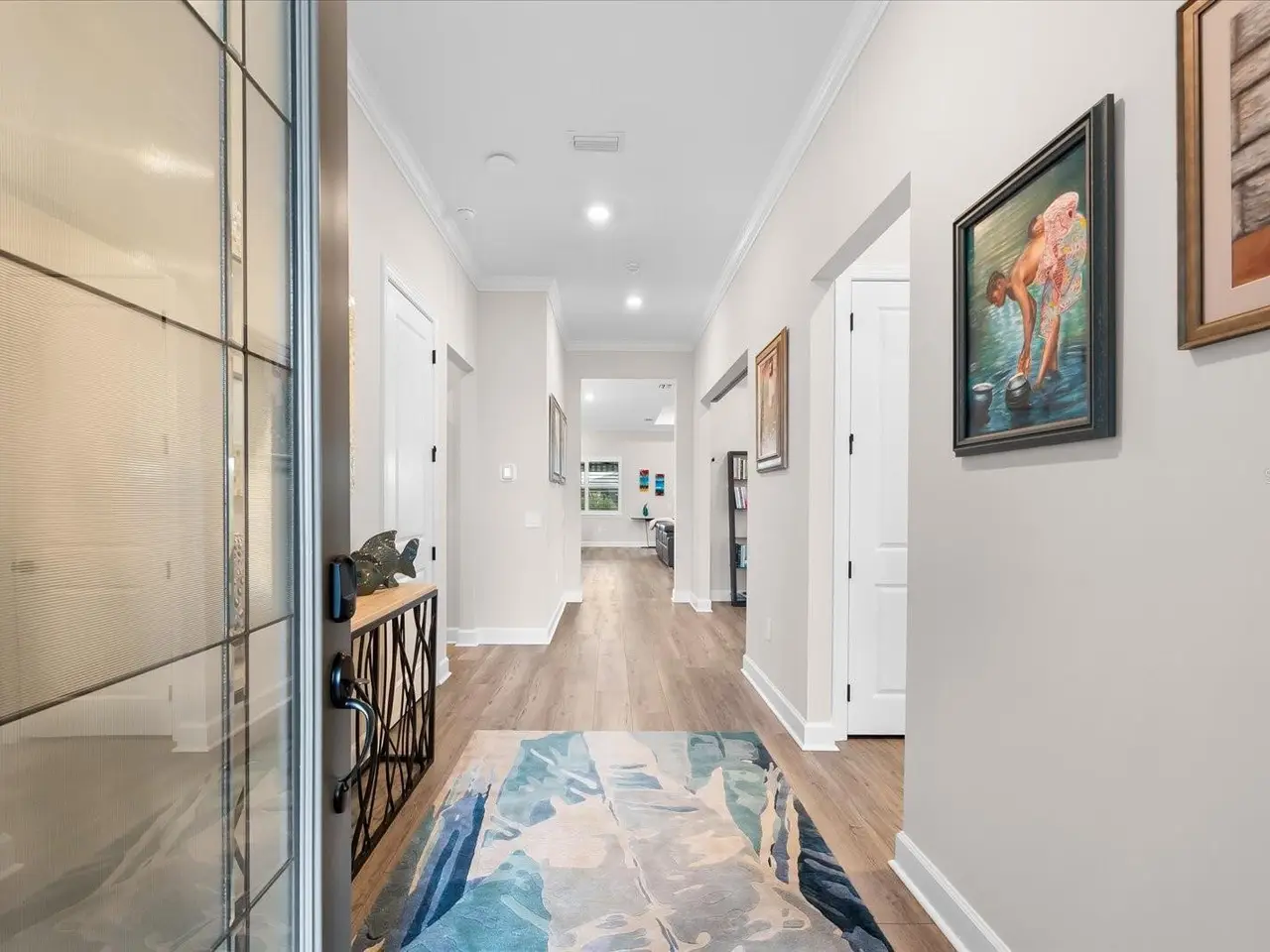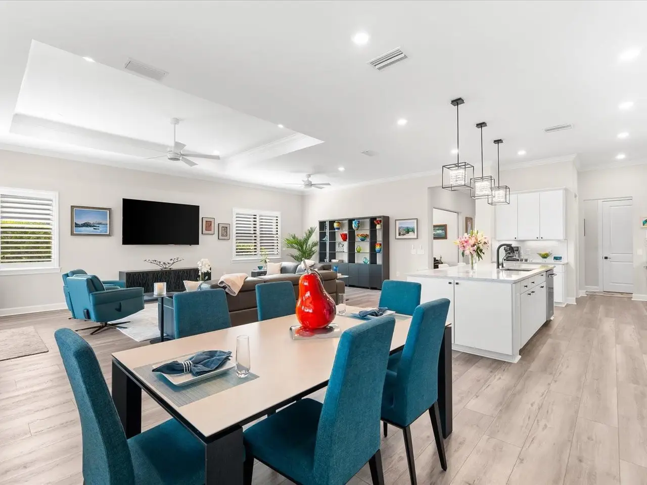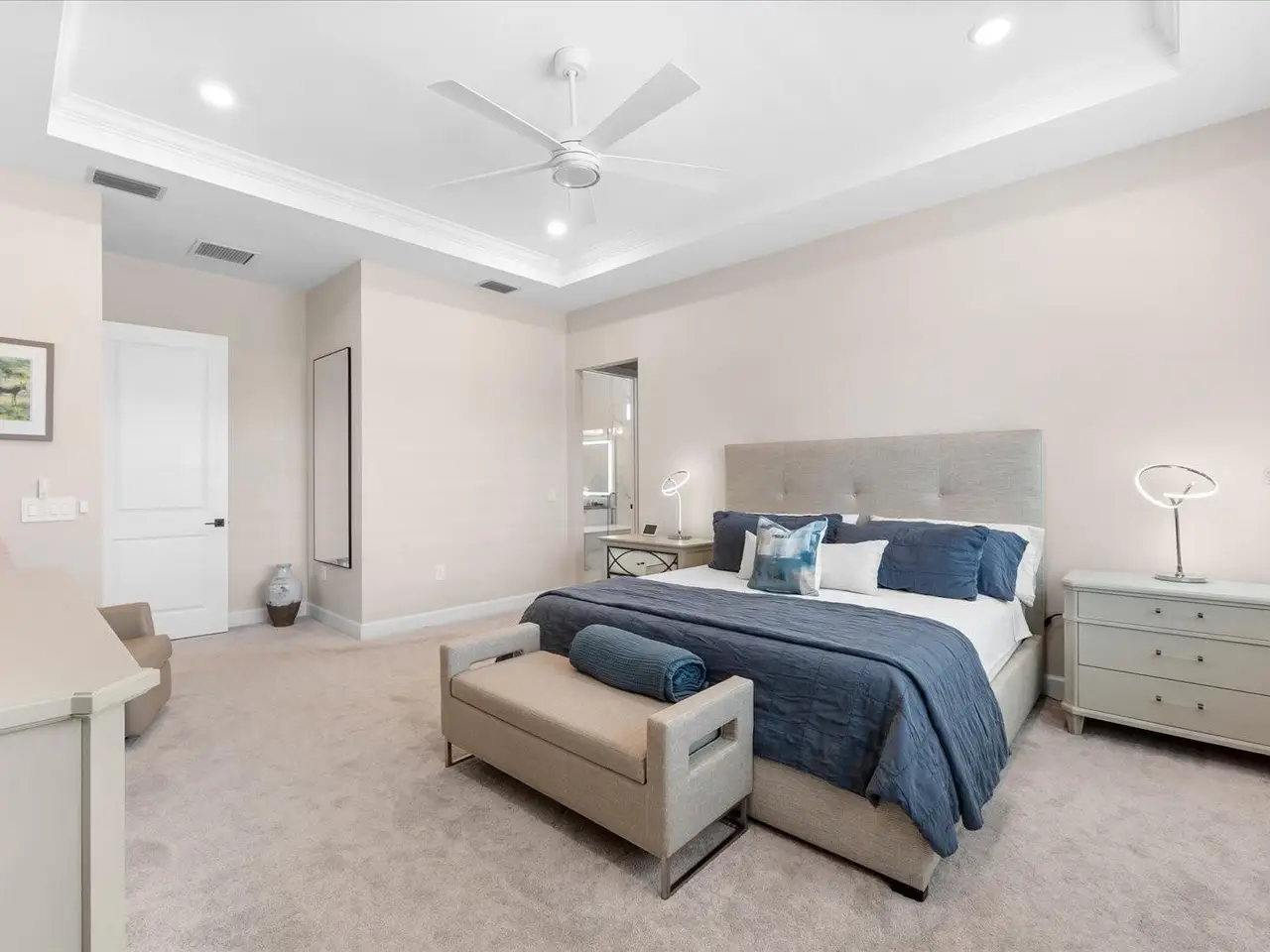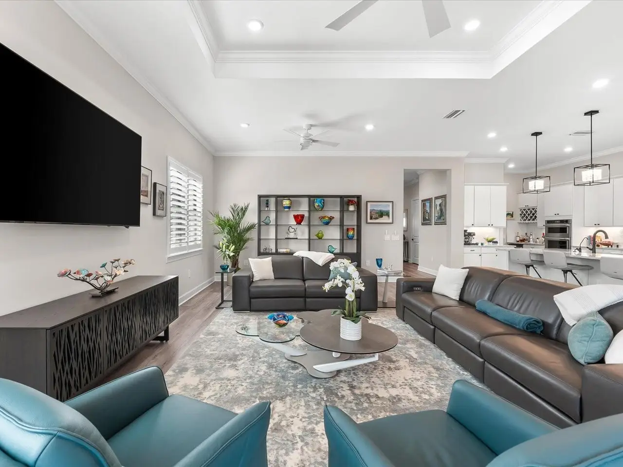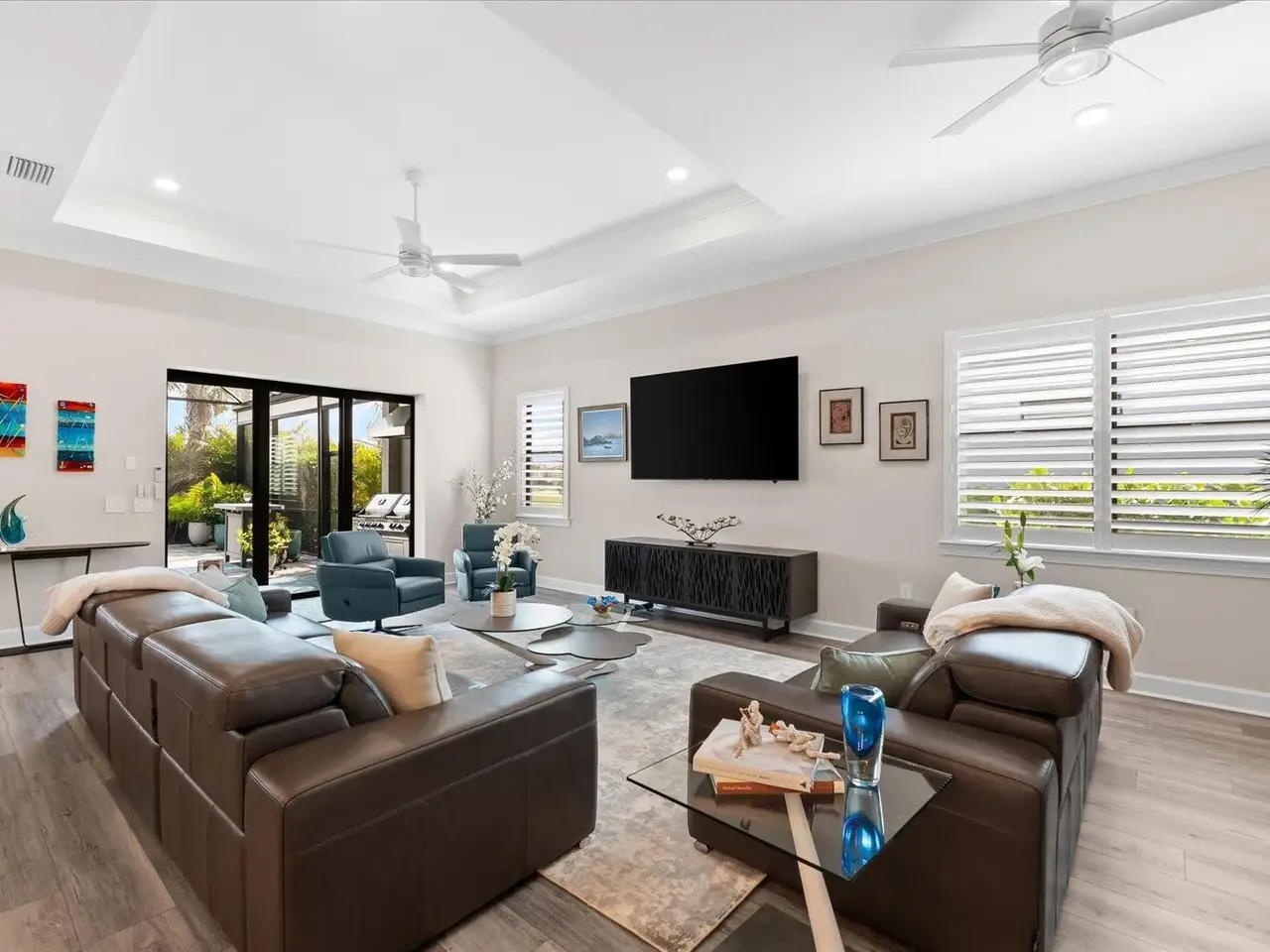 Modern Comfort Meets Resort-Style Living in Del Webb Lakewood Ranch. Welcome to easy, elegant living in the heart of Del Webb Lakewood Ranch—one of the area's most desirable 55+ communities. Set on a premium south-facing waterfront lot, this beautifully upgraded Renown floor plan offers everything you need for comfort, style, and low-maintenance Florida living. Step inside to discover an open, airy layout with three spacious bedrooms, 3.5 bathrooms, and a flexible bonus room—perfect for a home office, hobby space, or additional living area. Thoughtful upgrades shine throughout the home, from tray ceilings and crown molding to plantation shutters and impact-resistant windows and doors. The gourmet kitchen is a standout feature, complete with Bosch induction cooktop, built-in double ovens, stainless steel range hood, two-zone wine fridge, wine rack, reverse osmosis system, touchless faucet, custom cabinetry, and a perfectly organized walk-in pantry. The oversized island is the heart of the home—ideal for casual dining, entertaining, or prepping meals in style. The owner’s suite is your personal retreat, featuring a luxurious bath with dual vanities, an oversized walk-in shower, private water closet, and two custom walk-in closets. Two additional guest suites, each with their own private bath and walk-in closet, offer comfort and privacy for visitors. Enjoy peace of mind with a whole-house 24kW generator, water softener system, and an extended three-car garage with built-in storage and epoxy floors. A separate powder room, drop zone, and large laundry room add to the home’s smart and functional design. Love the outdoors? You’ll appreciate the custom-designed heated saltwater pool and spa, extended brick-paver lanai, automatic sunshades, awning, and panoramic water views—perfect for relaxing or entertaining year-round. Large pocket sliding doors open wide to blend indoor and outdoor living effortlessly. Living in Del Webb Lakewood Ranch means more than just a beautiful home—it’s a lifestyle. Enjoy access to top-tier amenities including six tennis courts, eight pickleball courts, bocce ball, a fitness center with group classes, a resort-style and lap pool, on-site restaurant and bar, and endless social opportunities organized by a full-time Lifestyle Director. With close proximity to Gulf Coast beaches, airports, shopping, dining, and culture, this home truly has it all. Move-in ready and meticulously maintained—don’t miss the opportunity to make it yours.
