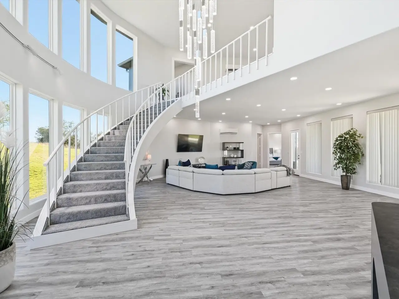 Experience the ultimate in country living in this stunning home completed in August 2024, situated on 5 sprawling acres with breathtaking views of the surrounding countryside. 2 fully fenced and gated acres of lush lawn offer the ideal setting for pets, family, and outdoor entertaining, fully irrigated with high-efficiency Hunter rotors and illuminated with LED landscape lighting for magical evenings under the stars. Step inside to a bright, open floor plan capturing natural light through full-height picture windows, highlighting a seamless blend of modern style and thoughtful craftsmanship. Every detail has been considered, from premium appliances, to dimmable LED lighting and whisper-quiet 22 SEER mini-split heat pumps in every room. The home includes a full mother-in-law suite with its own kitchen, living room, workspace, and separate bedroom, providing private accommodations for guests or extended family. Two tankless water heaters provide unlimited hot water and strong pressure throughout. The open interior flows effortlessly, with neutral tones creating a serene atmosphere, while the covered patio and expansive upper deck allow you to enjoy stunning sunsets and peaceful surroundings. The 5,000 sq. ft., two-story insulated shop offers endless possibilities, including a 30x30 garage, hobby room, mechanical shop, full bath, freight elevator, RV hookups, and a completely open second floor ideal for hobbies, entertainment, or workspace. Remote-controlled solar-powered entry gates, chain-link and wire fencing, flood lighting, and thoughtfully designed outdoor spaces enhance the property. Every elementfrom ZIP-sealed exterior sheathing, R24 foam insulation, and 2x6 construction to high-efficiency windows and energy-saving systemsensures comfort, durability, and low utility costs. This home blends modern luxury and peaceful country charm, where every day feels like a retreat surrounded by nature, wildlife, and endless opportunities for work, play, and relaxation.