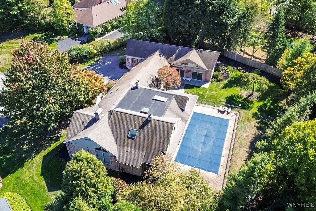 Don't miss this rare opportunity in Snyder! Tucked away in a serene, park-like setting on a private cul-de-sac, this spacious 3-bedroom, 3.5-bath ranch offers exceptional living and entertaining space. The home features a 24' x 64' art studio with soaring cathedral ceilings C/B?B= perfect for creative pursuits or flexible use.Enjoy summer days in the 20' x 40' Gunite pool, or relax in the 3-season room (15' x 17'). Entertain guests in the formal dining room, complete with a bar and kitchenette, or cook with ease in the fully applianced eat-in kitchen featuring granite countertops and a stylish backsplash.Additional highlights include: Central air conditioning, Abundant built-in cabinetry and storage, Professionally landscaped grounds and Smallwood schools.
