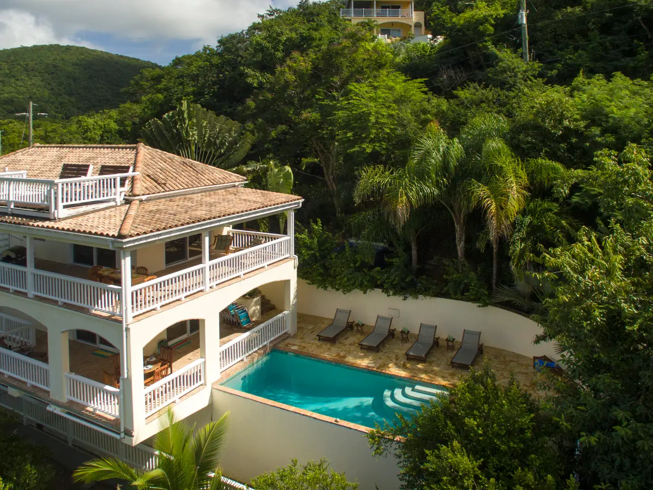 Villa Satori is a two bedroom Mediterranean style pool villa in a very private section of Fish Bay. Dine al fresco on the large covered porch, sun and swim in the pool off the lower terrace or enjoy sunset cocktails on the rooftop terrace. Two private guest suites are situated on the lower level. Upper great room and kitchen houses a 3rd full bath allowing for added guests if needed.