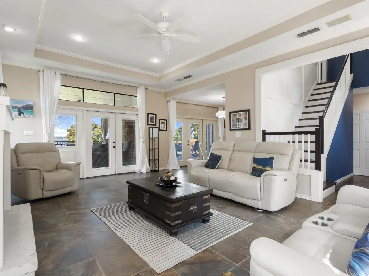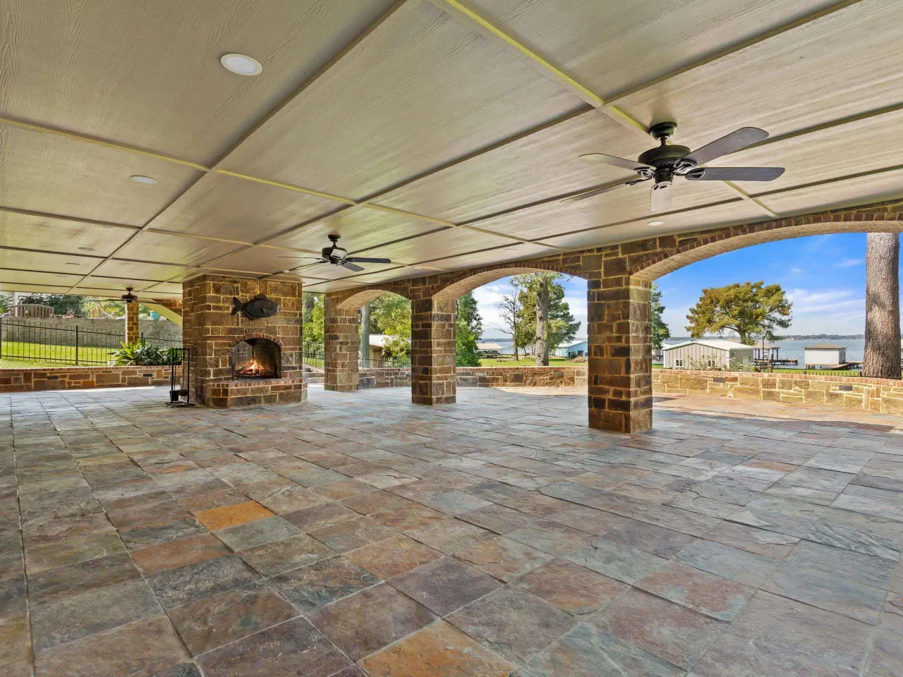 This stunning 3,850 sq. ft. home is beautifully situated on a half-acre lot along the shores of Lake Palestine. Offering four bedrooms and three and a half baths, this property is designed for both comfort and entertainment. The home features a massive two-level outdoor entertaining space with a see-through fireplace enjoyed from both levels, perfect for gathering year-round. The private third-floor primary suite includes a spacious ensuite and its own balcony with sweeping lake views. Out on the water, the property boasts a fully equipped boat dock with a covered boat lift, double jet ski lift, and a shaded patio area for lakeside relaxation. Recent updates include a new roof 2023, replaced entire entertaining deck on main level 2023, ensuring peace of mind and long-term enjoyment. Replaced seawall 2022, Three HVAC units one replaced in 2022, new water heater 2025. This is truly a one-of-a-kind property and an absolute must see for anyone seeking luxury lakeside living on Lake Palestine.