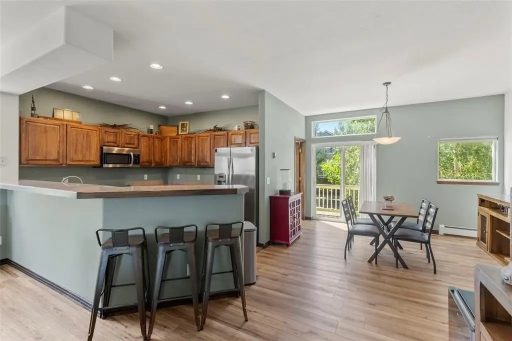 Another significant price reduction — now listed at $1,199,000, $200K below the original price. Seller would like to see an offer. "‘Rare opportunity!’ 4-Bed/4-Bath End-Unit Townhome in the prime Blue River Run Location! Nestled just steps from the Silverthorne rec path, this bright, end-unit home enjoys abundant natural light thanks to only one shared wall. The updated, open floorplan seamlessly connects living, dining, and kitchen spaces—perfect for group gatherings or entertaining. Year-round convenience: Attached 2-car garage and central Summit County location make this an ideal base for mountain adventures. Value plus: You can even get your mail delivered to your address - no need for a PO Box! Newly installed LV flooring, boiler, dishwasher, range, washer/dryer, and a best-in-class price per square foot means you’re getting more value. This one won’t linger on the market. Indoor-outdoor living with multiple decks/patios invites morning coffee or evening stargazing, while easy access links you quickly to trails and riverside strolls. Flexible living options allows for the lower-level bedroom to function as a lock-off rental—ideal for long-term tenants or guests. Experience effortless mountain living close to major ski resorts, with the perfect blend of comfort, convenience, and adventure. Don’t miss your chance—homes like this go fast!