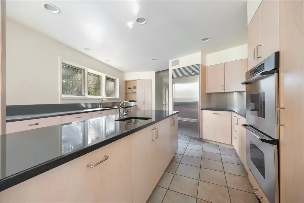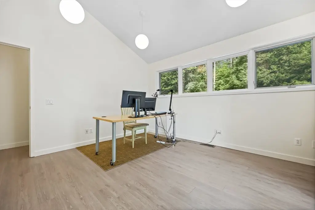 Designed by architect Kathleen Lugosch, founding Director of the Master of Architecture at UMass Amherst, this extraordinary residence is sited on 7.9 serene acres that look onto 25 additional acres of protected land, providing rare privacy that's a 10-minute drive from the center of Amherst and its colleges, cultural attractions, and village life. A formal entry introduces the home's signature design elements: custom millwork, translucent screen partitions, and a fluid layout that guides you through the space. Expansive glazing along the entire southern facade floods the interiors with natural light and offers uninterrupted views of the rolling fields beyond. The upper-level features 3 bedrooms, including a luxurious primary suite with ensuite bath and views of the meadow throughout. The lower level offers versatile secondary living spaces, with 1 bedroom, a library and media room, and full bath. The office wing offers 2 large office spaces with stunning views of the property.