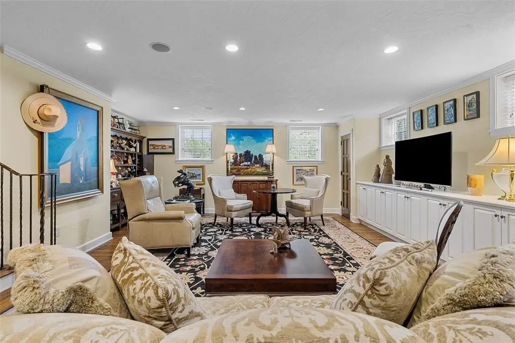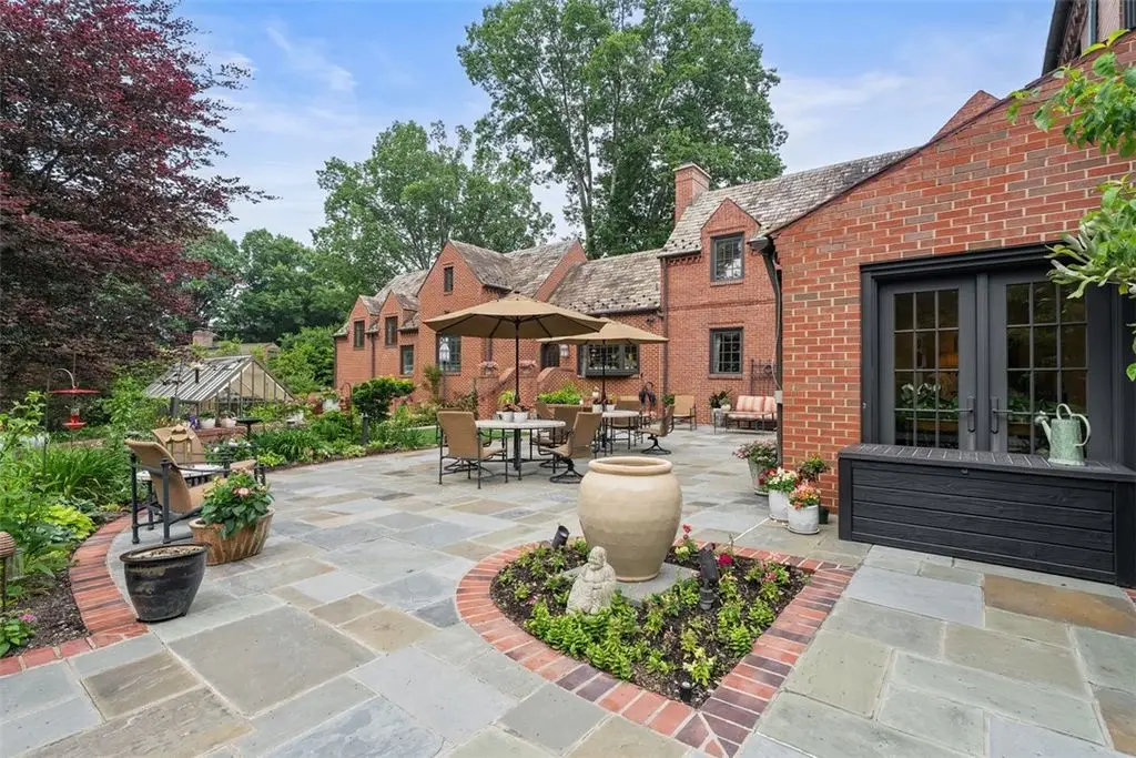 An extraordinary offering in Upper St. Clair, this English Manor Tudor estate pairs timeless architecture with refined modern living. Privately set on nearly an acre beside historic Gilfillan Farm, the 4+ bed, 3.5 bath home exudes quiet sophistication. Rich in character and craftsmanship, it features artisan millwork, stained glass windows, arched doorways, and a graceful layout ideal for both everyday living and elegant entertaining. A chef's kitchen with Subzero/Thermador appliances and walnut and quartzite counters, first-floor owner's suite with den and custom closets, and an elevator enhance comfort and convenience. Professionally designed gardens envelop the home with year-round beauty, offering serene outdoor spaces and a rare sense of privacy. Just minutes from schools, parks, and amenities, this is a rare opportunity to own a legacy property where heritage, design, and natural beauty converge in perfect harmony. A truly distinguished home for the discerning buyer.