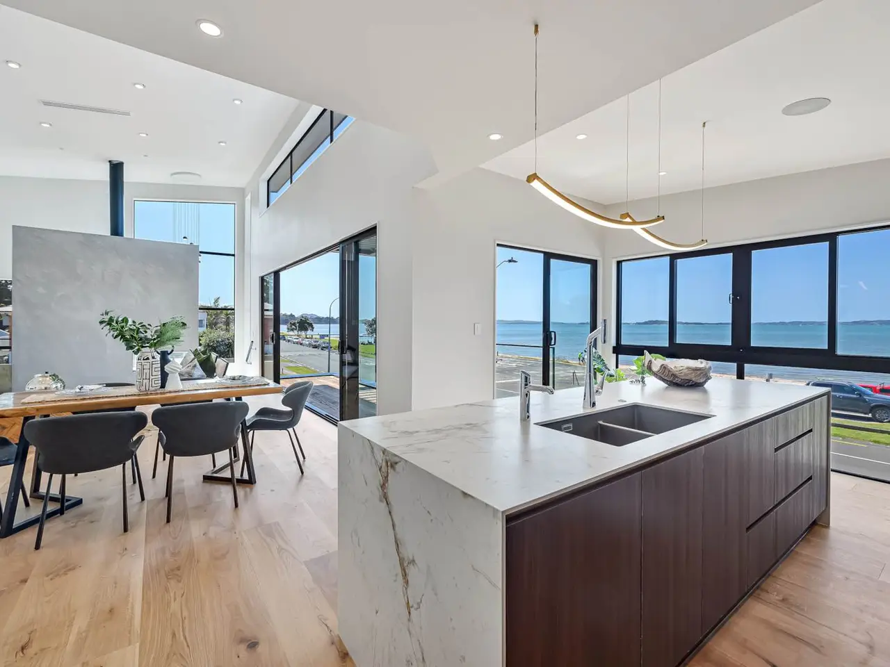 Flawless coastal elements blend with a visionary contemporary influence to form an extraordinary waterfront residence. For those who demand excellence and have a trained eye for refined indulgence and functionality, you will need to see this splendid home. Floor-to-ceiling glass at every turn ensures the encapsulating beach and Waiheke views are front and centre. While multiple spots to relax or host guests await, including a magnificent high-stud and light-filled living, dining and kitchen oasis. The indulgent gourmet kitchen is headlined by a marble waterfall island and a wealth of high-end finishes, including a full complement of Gaggenau and Liebherr appliances and a fully-equipped butler's pantry.The five bedrooms are the ultimate in luxury. In the master suite find a decadent ensuite and floor-to-ceiling closets in the walk-in wardrobe. Elsewhere, glass-fronted wardrobes are the next level in modern touches. And, keeping two bedrooms on the ground floor, both with ensuites, allows for next-level hosting. No expense has been spared in creating this grand-scale, two-storey home. Along with an integrated system, including a smart door, intercom, camera and music system, there are automatic gates, underfloor heating in the bathrooms, central vac and air-conditioning system and gas fireplaces. The double garage is internally accessed. Waterfront living is at its absolute finest in Eastern Beach. Start each day with a barefoot stroll, or grab the paddleboard for sublime exercise, and take the dog for a good run. In zone for some of the city's most popular schools, including Bucklands Beach Primary and Intermediate and Macleans College, and with such easy access to the greater city, here is where life begins. Make it happen now.