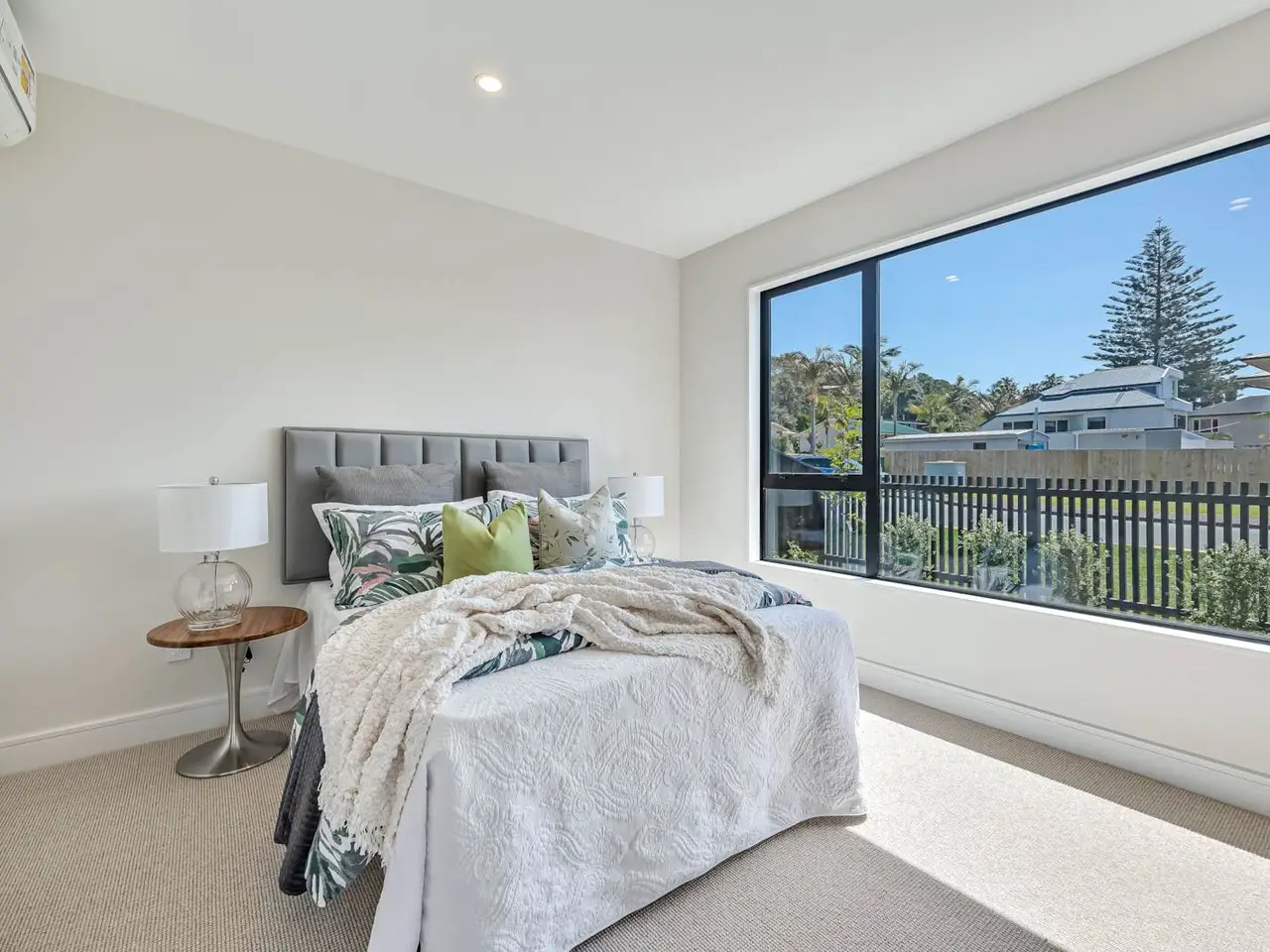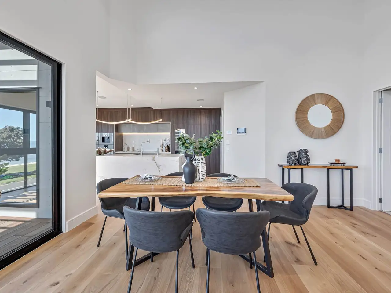 Floor-to-ceiling glass with beach views