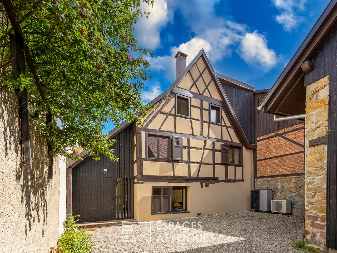 In the heart of a medieval village, just ten minutes from Colmar and close to shops, schools and amenities, this former 18th-century winegrower's house, built on 4 acres of land, has a unique charm. Combining the character of the old with the modernity of a high-end renovation carried out in 2024, it offers 215 m2 of living space, plus a 40 m2 converted barn, and provides a rare living environment that combines elegance, contemporary comfort and high-quality features.From the moment you enter, you can feel the impact of the architect's renovation: generous volumes, noble materials and bespoke design on all floors create a refined atmosphere. The ground floor is organised around a light-filled extension, opening onto a split-level living room with a wood-burning stove, creating a warm and welcoming atmosphere. The adjoining kitchen/dining room is extended by a large bay window opening onto the south-facing terrace and the outdoors. A pantry concealed behind an invisible door allows for optimal organisation while preserving the aesthetics of the space. A separate laundry room, also hidden by an invisible door, completes this level. Above this space, a games room has been created, accessed by an elegant wooden staircase, offering a convivial and versatile space for young and old alike.The first floor features a master suite with a cathedral ceiling, dressing room, shower room and integrated air conditioning, as well as two further bedrooms, also with air conditioning, sharing a bathroom and a spacious hallway. The top floor offers an additional bedroom, a study and a windowless room that could be converted into a dressing room, offering great flexibility of use.Finally, a separate 40 m2 barn completes the property: the ground floor has a cosy living area with a fitted kitchen, while the first floor has a comfortable bedroom. With its own independent electric heating system, this outbuilding is ideal for creating a guest house to generate rental income or a self-contained accommodation for family and friends.The exterior extends the interior comfort with a terrace ideal for enjoying sunny days, a wooded garden and a private courtyard that can accommodate three vehicles, hidden behind a motorised gate. A garden shed and boiler room complete this perfectly designed property. Energy efficiency is ensured by a heat pump, integrated air conditioning and a wood-burning stove. The immediate surroundings, marked by the authentic charm of Turckheim, appeal with their heritage, vineyards and proximity to Colmar, which is easily accessible in just a few minutes.This exceptional property appeals with its unusual identity and rare character on the Alsatian property market. A cross between a characterful winegrower's house and a contemporary renovation, it is a unique opportunity for those looking for a high-end property combining authenticity and modern comfort in the heart of a sought-after living environment.3 parking spacesShops 5 minutes away by carSchools 3 minutes away on footBus and train station 2 minutes away on footMotorway 10 km awayREF. 1630Additional information* 10 rooms* 5 bedrooms* 1 bathroom* 1 bathroom* 2 floors in the building* Outdoor space : 405 SQM* Parking : 3 parking spaces* Property tax : 505 €Energy Performance CertificatePrimary energy consumptiona : 59 kWh/m2.yearHigh performance housing*59kWh/m2.year1*kg CO2/m2.yearA*B*C*D*E*F*GExtremely poor housing performance* Of which greenhouse gas emissionsa : 1 kg CO2/m2.yearLow CO2 emissions*1kg CO2/m2.yearA*B*C*D*