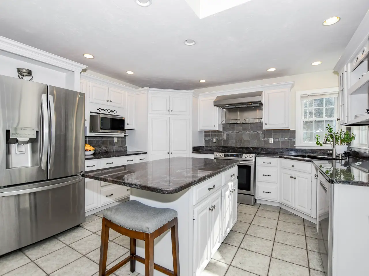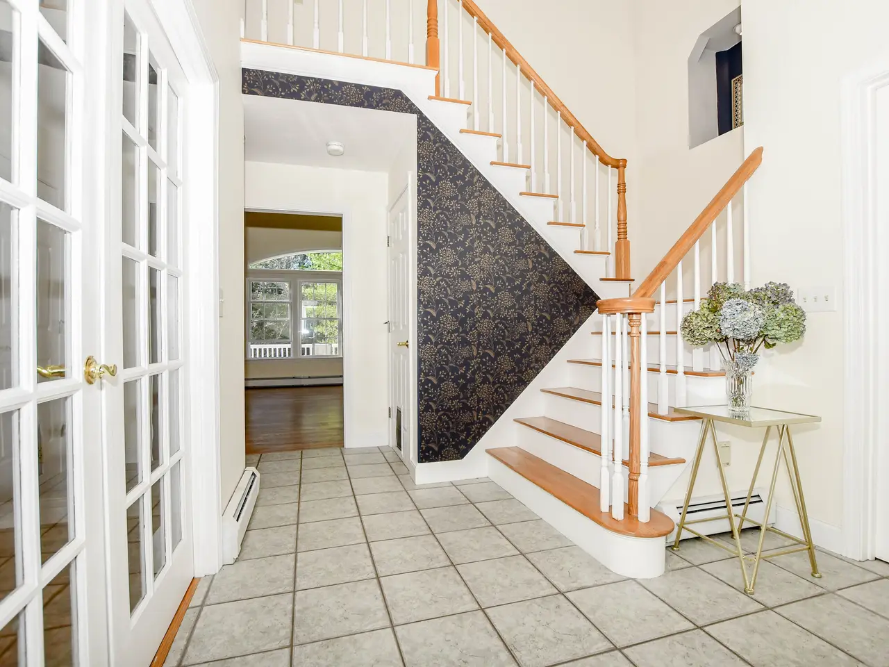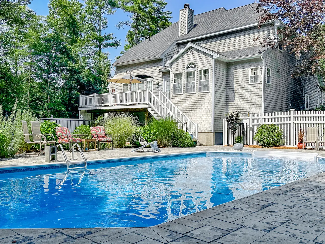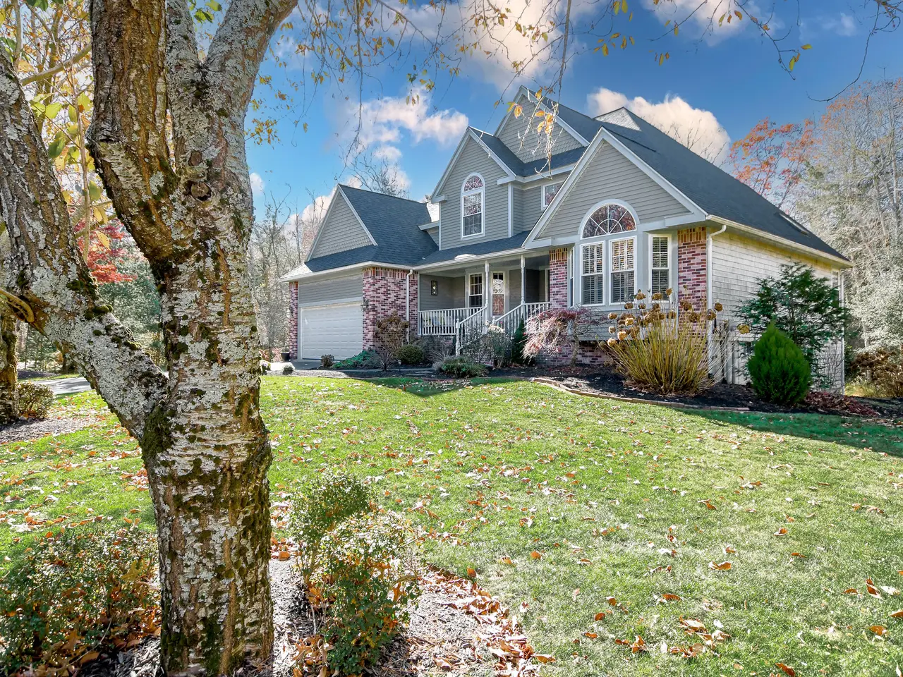 Located in the Olde Knoll community and designed with quality workmanship and thoughtful details throughout, this fabulous home is perfect for entertaining. Features include vaulted ceilings, hardwood floors, and two fireplaces between the spacious living room and gourmet custom kitchen. Also included on the first-floor is a spacious primary suite with luxurious bath and a formal dining room with French doors. Upstairs are 3 large bedrooms and full bath all of which offer charm and appeal. Other amenities include a heated lined in ground-pool, two car garage, finished bonus room in the basement, A/C and oil heat. Walk to the village, beach, post office, library and General Store.