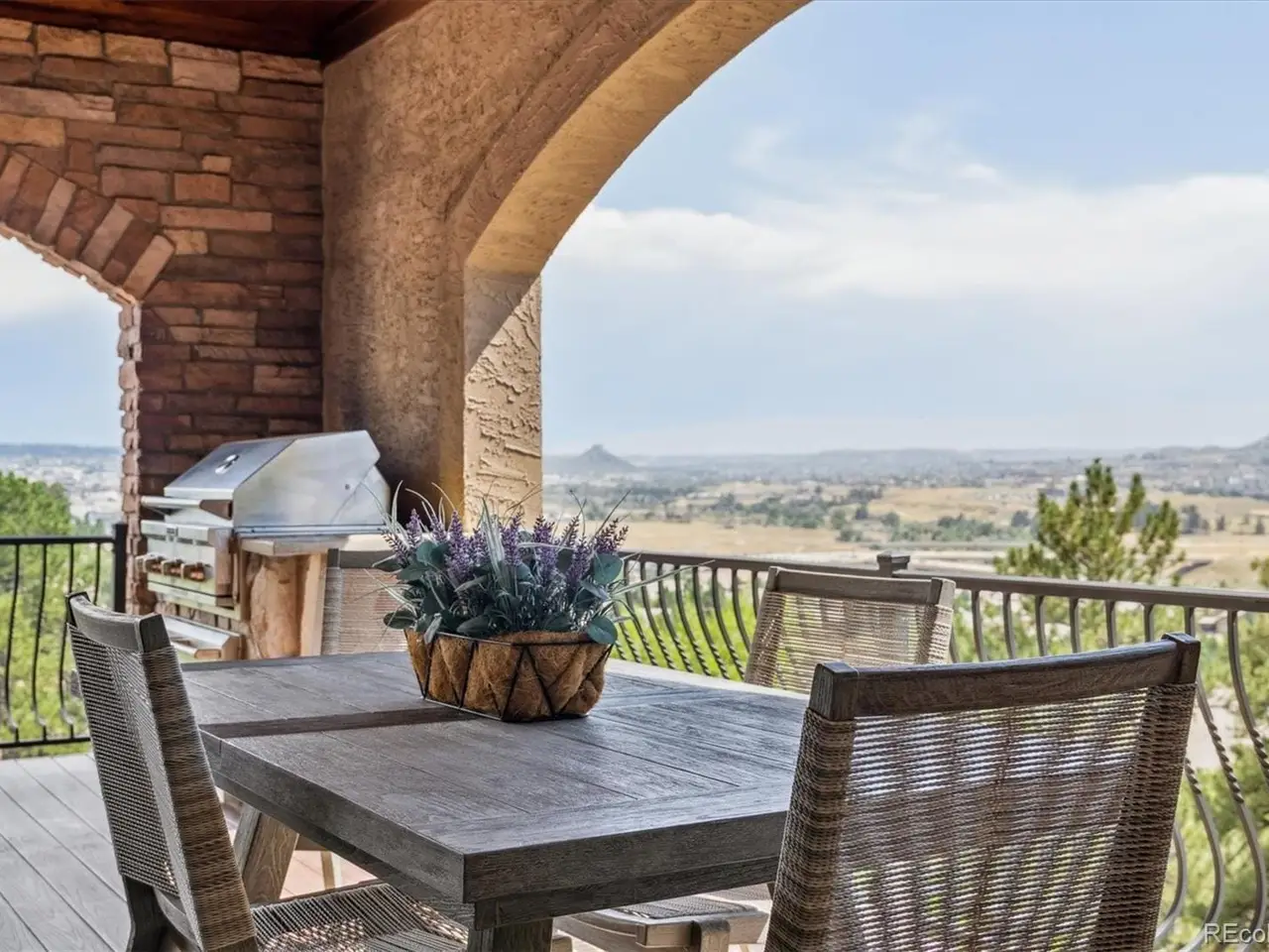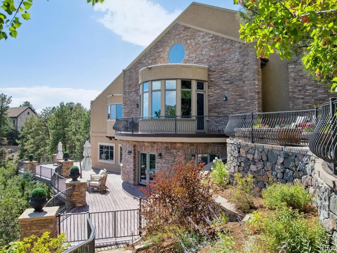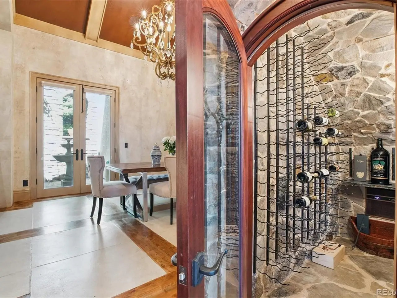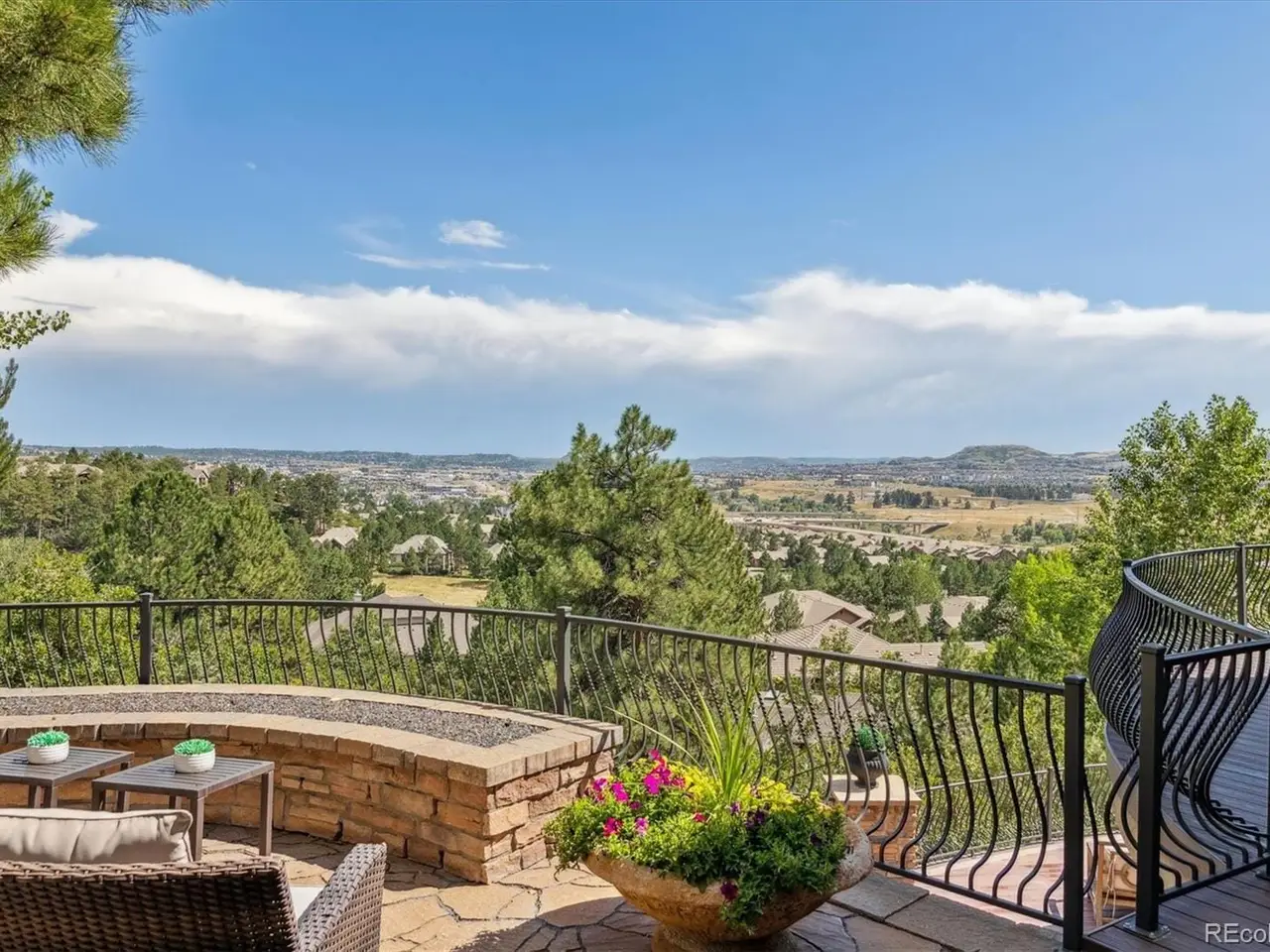 Spectacular Views and Unparalleled Luxury in Castle Pines Village. Nestled on a serene 1.75-acre wooded lot in the exclusive Castle Pines Village, this custom estate offers the perfect blend of privacy, elegance, and breathtaking views. From the moment you step inside, you are greeted by a stunning entryway and exquisite custom woodwork that set the tone for the homes timeless charm. The great room, highlighted by soaring wood cathedral ceilings and walls of windows, frames panoramic mountain views and flows seamlessly into the gourmet kitchen. Designed for both everyday living and entertaining, the kitchen features top-of-the-line appliances, a large center island, and an adjacent 300-bottle wine cellar. A formal dining room provides an elegant space for gatherings, while multiple living areas invite comfort and relaxation. The primary suite is a true retreat, offering dramatic views, a spa-inspired bath with heated floors, infinity tub, steam shower, and a custom wardrobe dressing room. Each of the spacious secondary bedrooms features en suite baths, and a private guest suite with deck access ensures comfort for visitors. Designed for entertainment, this home includes a bonus room with a pub-style bar and billiards, a theater room, and a private office with custom built-ins. A cozy den with a grand fireplace provides yet another inviting living space. Step outside to experience unbelievable outdoor living with multiple decks overlooking the treetops and mountains, a fire pit, hot tub spa, and a beautifully landscaped private yard. This rare Castle Pines Village retreat combines luxurious living with Colorados natural beauty. Fantastic gated community with swimming, tennis, fitness center trails and Security rate access to restaurants and shopping.