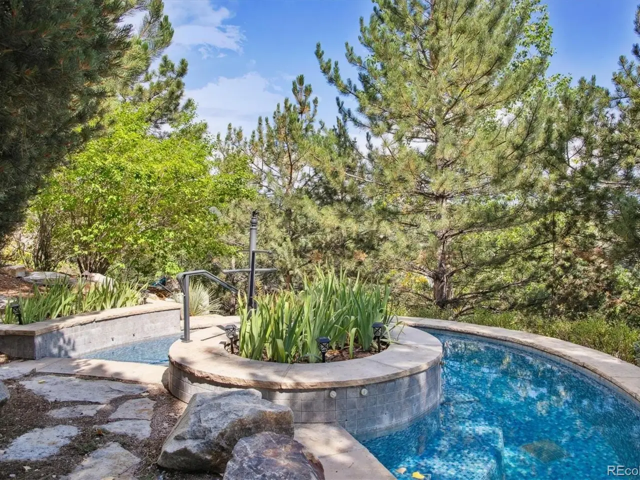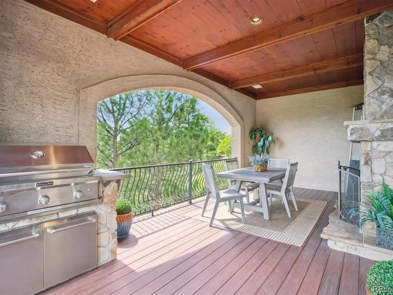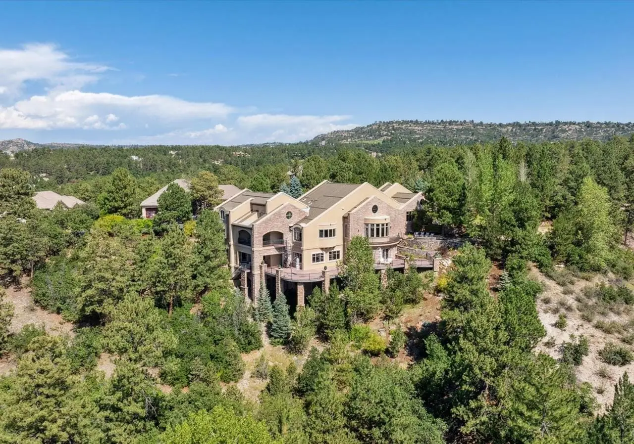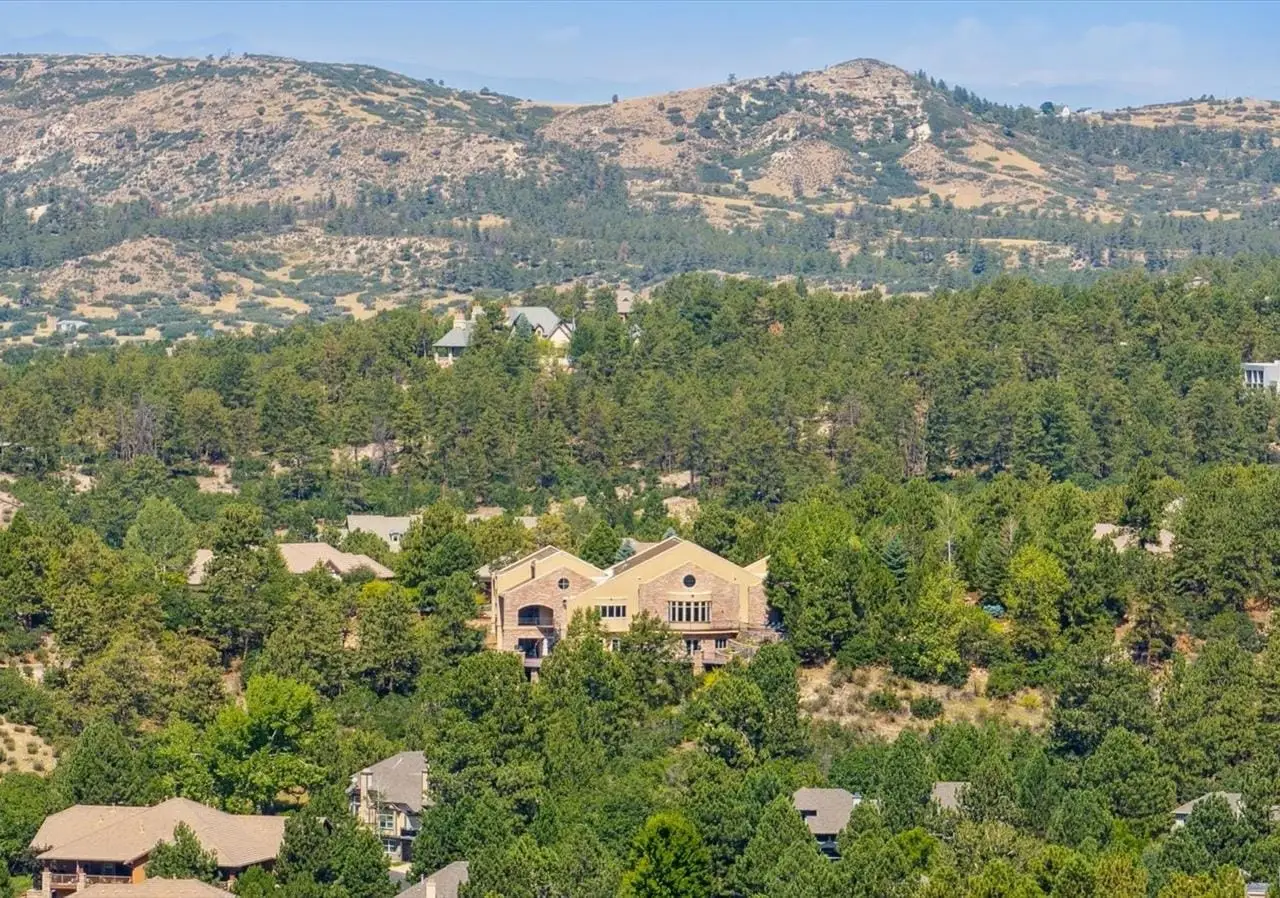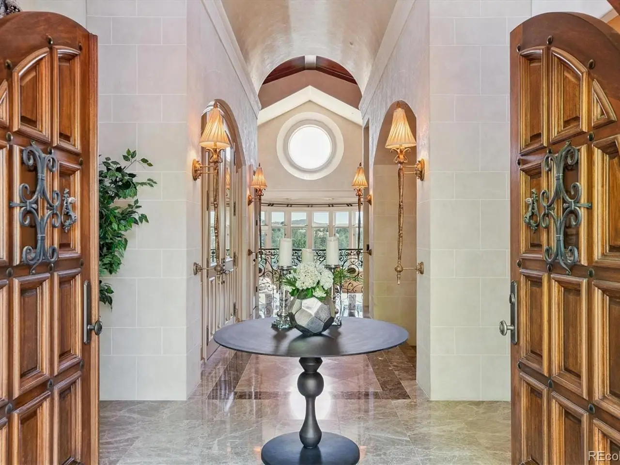 Spectacular Views and Unparalleled Luxury in Castle Pines Village. Nestled on a serene 1.75-acre wooded lot in the exclusive Castle Pines Village, this custom estate offers the perfect blend of privacy, elegance, and breathtaking views. From the moment you step inside, you are greeted by a stunning entryway and exquisite custom woodwork that set the tone for the homes timeless charm. The great room, highlighted by soaring wood cathedral ceilings and walls of windows, frames panoramic mountain views and flows seamlessly into the gourmet kitchen. Designed for both everyday living and entertaining, the kitchen features top-of-the-line appliances, a large center island, and an adjacent 300-bottle wine cellar. A formal dining room provides an elegant space for gatherings, while multiple living areas invite comfort and relaxation. The primary suite is a true retreat, offering dramatic views, a spa-inspired bath with heated floors, infinity tub, steam shower, and a custom wardrobe dressing room. Each of the spacious secondary bedrooms features en suite baths, and a private guest suite with deck access ensures comfort for visitors. Designed for entertainment, this home includes a bonus room with a pub-style bar and billiards, a theater room, and a private office with custom built-ins. A cozy den with a grand fireplace provides yet another inviting living space. Step outside to experience unbelievable outdoor living with multiple decks overlooking the treetops and mountains, a fire pit, hot tub spa, and a beautifully landscaped private yard. This rare Castle Pines Village retreat combines luxurious living with Colorados natural beauty. Fantastic gated community with swimming, tennis, fitness center trails and Security rate access to restaurants and shopping.