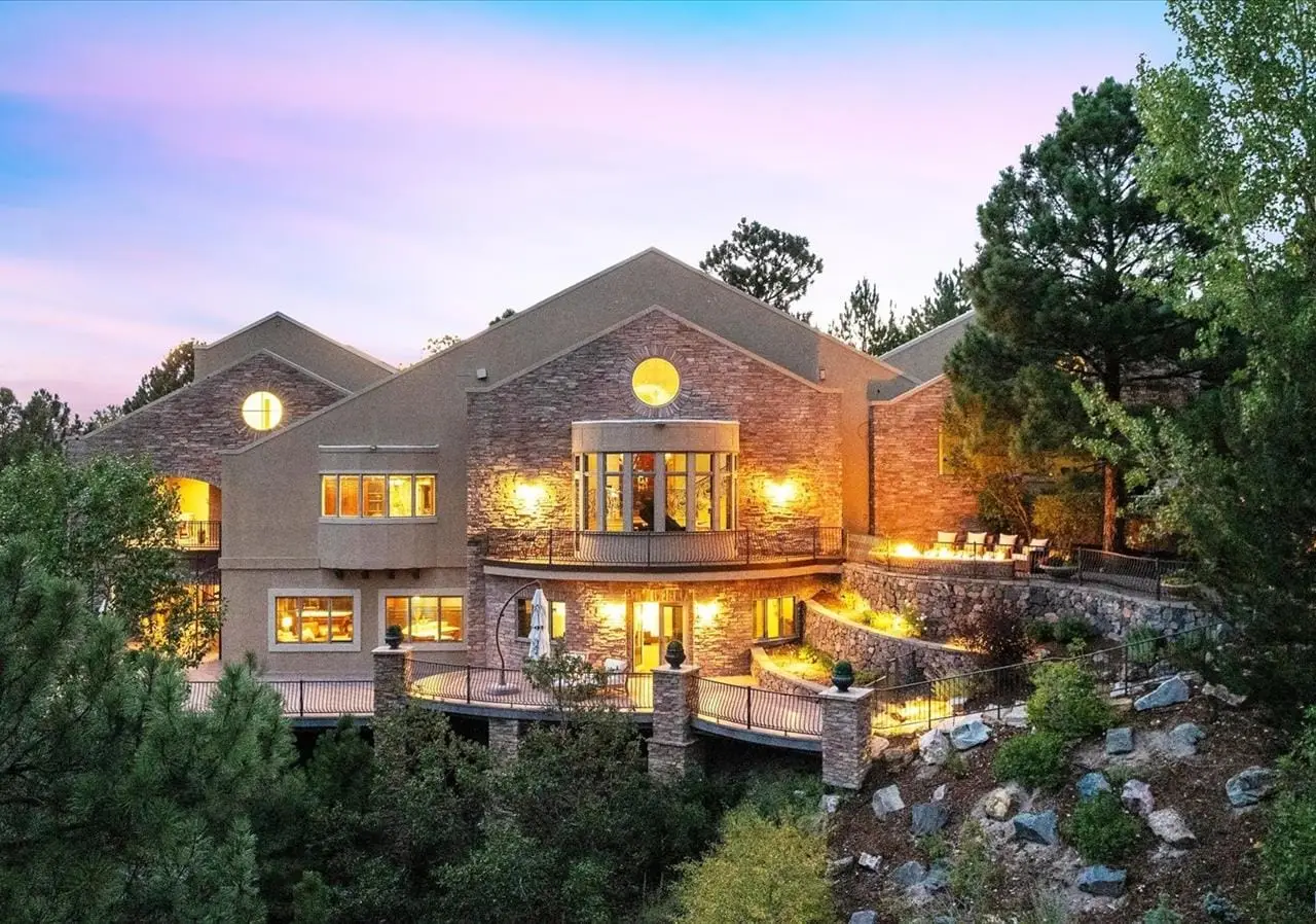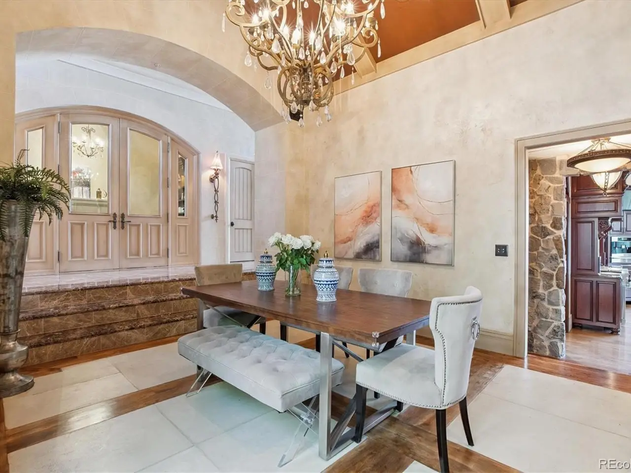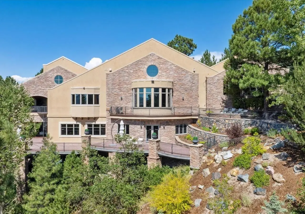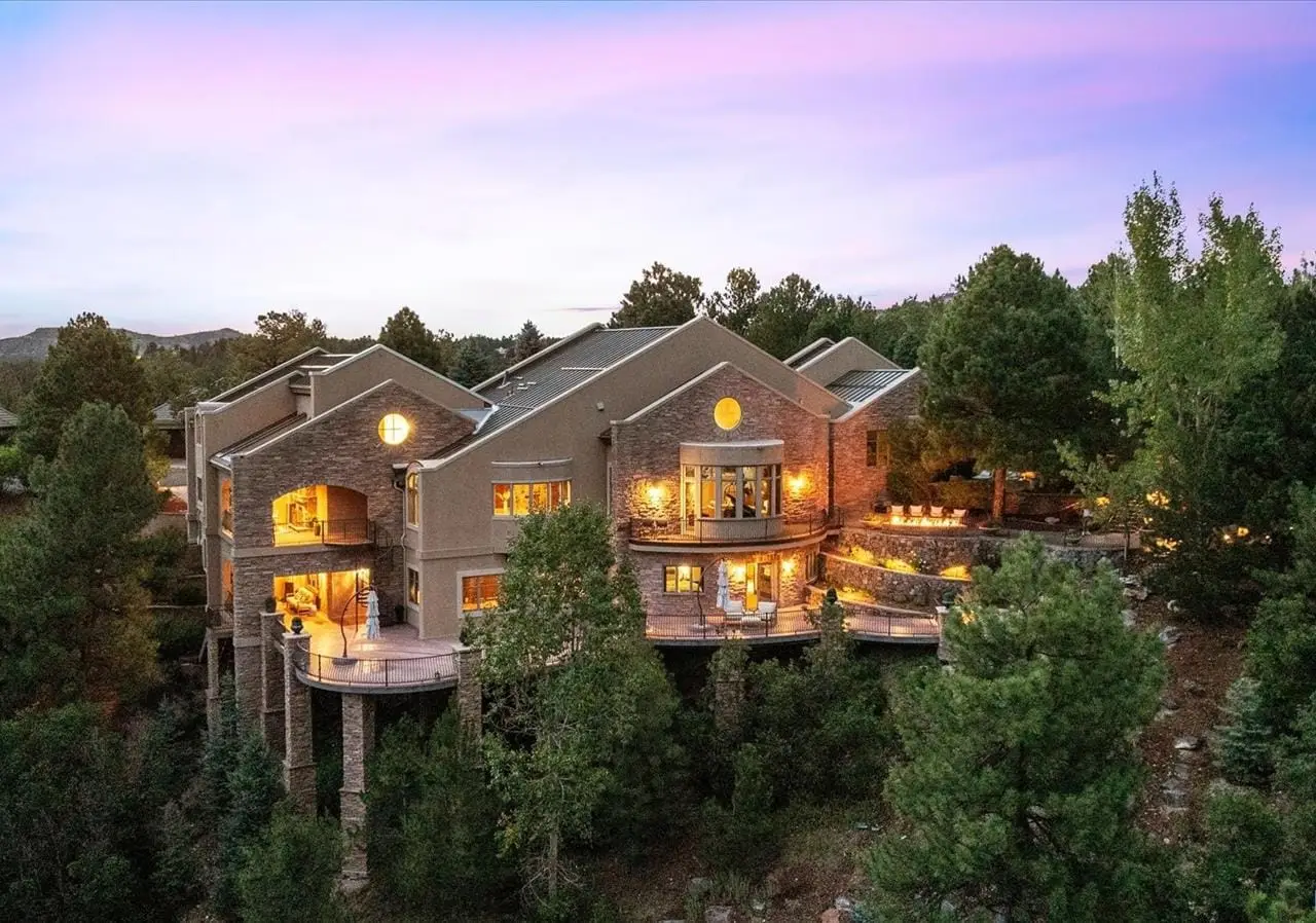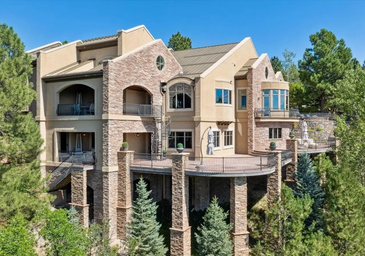 Spectacular Views and Unparalleled Luxury in Castle Pines Village. Nestled on a serene 1.75-acre wooded lot in the exclusive Castle Pines Village, this custom estate offers the perfect blend of privacy, elegance, and breathtaking views. From the moment you step inside, you are greeted by a stunning entryway and exquisite custom woodwork that set the tone for the homes timeless charm. The great room, highlighted by soaring wood cathedral ceilings and walls of windows, frames panoramic mountain views and flows seamlessly into the gourmet kitchen. Designed for both everyday living and entertaining, the kitchen features top-of-the-line appliances, a large center island, and an adjacent 300-bottle wine cellar. A formal dining room provides an elegant space for gatherings, while multiple living areas invite comfort and relaxation. The primary suite is a true retreat, offering dramatic views, a spa-inspired bath with heated floors, infinity tub, steam shower, and a custom wardrobe dressing room. Each of the spacious secondary bedrooms features en suite baths, and a private guest suite with deck access ensures comfort for visitors. Designed for entertainment, this home includes a bonus room with a pub-style bar and billiards, a theater room, and a private office with custom built-ins. A cozy den with a grand fireplace provides yet another inviting living space. Step outside to experience unbelievable outdoor living with multiple decks overlooking the treetops and mountains, a fire pit, hot tub spa, and a beautifully landscaped private yard. This rare Castle Pines Village retreat combines luxurious living with Colorados natural beauty. Fantastic gated community with swimming, tennis, fitness center trails and Security rate access to restaurants and shopping.