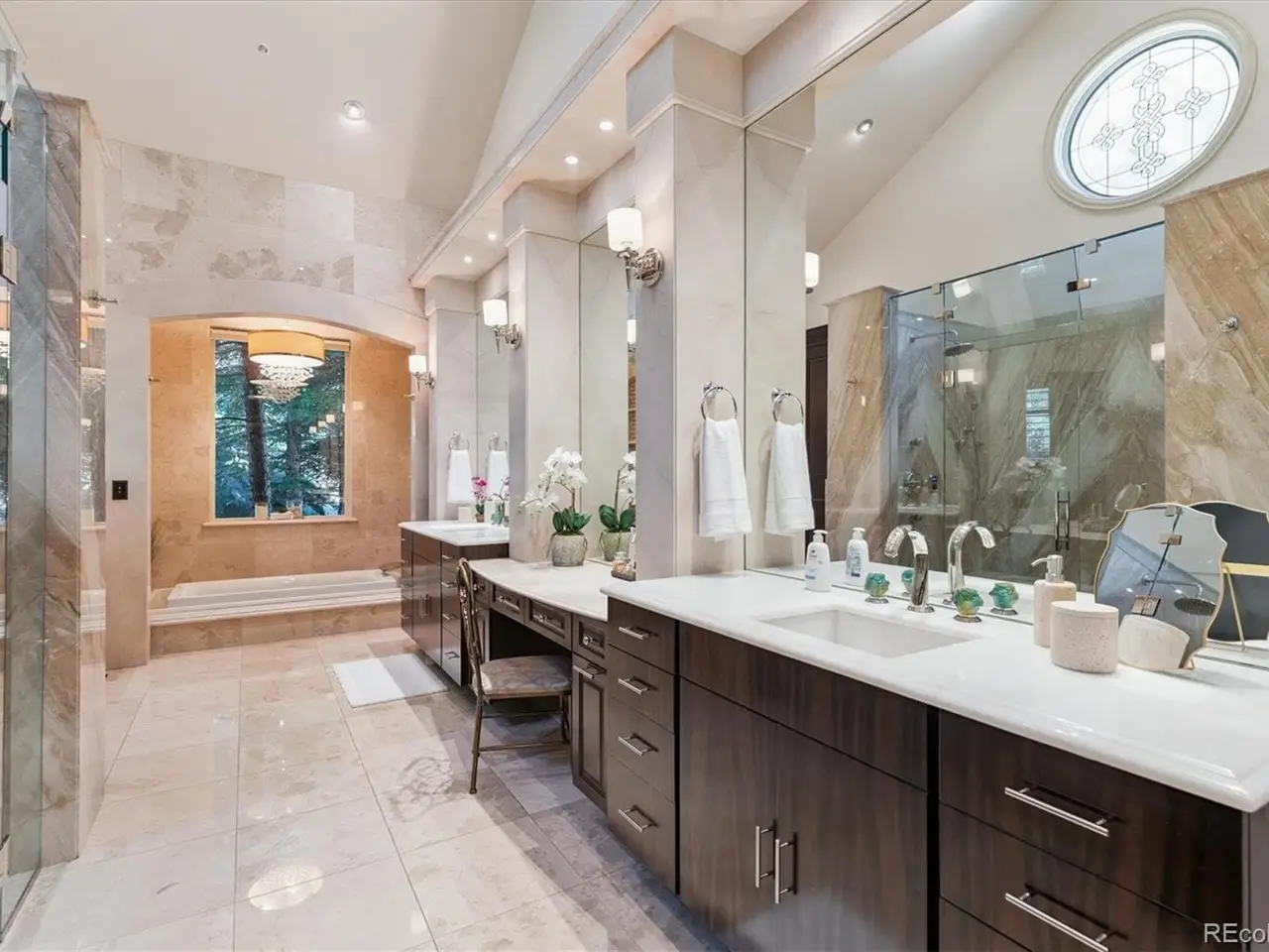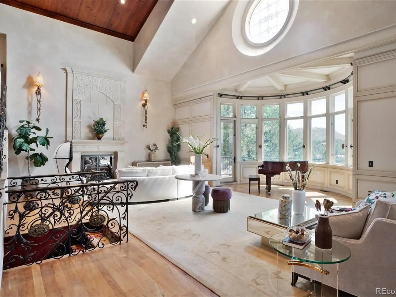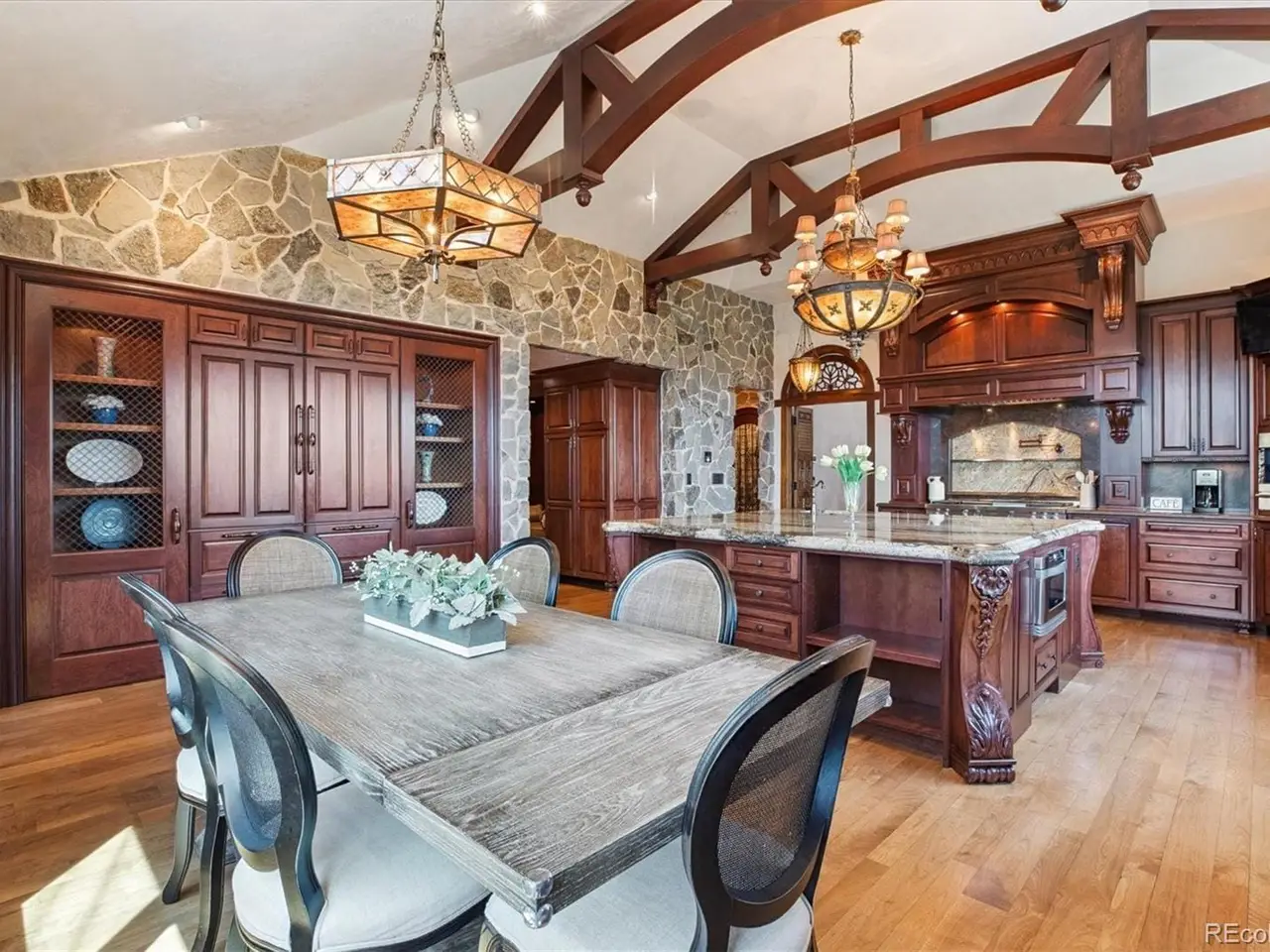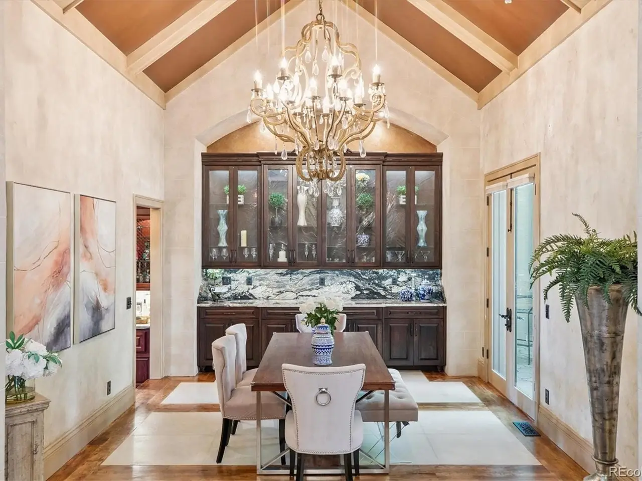 Spectacular Views and Unparalleled Luxury in Castle Pines Village. Nestled on a serene 1.75-acre wooded lot in the exclusive Castle Pines Village, this custom estate offers the perfect blend of privacy, elegance, and breathtaking views. From the moment you step inside, you are greeted by a stunning entryway and exquisite custom woodwork that set the tone for the homes timeless charm. The great room, highlighted by soaring wood cathedral ceilings and walls of windows, frames panoramic mountain views and flows seamlessly into the gourmet kitchen. Designed for both everyday living and entertaining, the kitchen features top-of-the-line appliances, a large center island, and an adjacent 300-bottle wine cellar. A formal dining room provides an elegant space for gatherings, while multiple living areas invite comfort and relaxation. The primary suite is a true retreat, offering dramatic views, a spa-inspired bath with heated floors, infinity tub, steam shower, and a custom wardrobe dressing room. Each of the spacious secondary bedrooms features en suite baths, and a private guest suite with deck access ensures comfort for visitors. Designed for entertainment, this home includes a bonus room with a pub-style bar and billiards, a theater room, and a private office with custom built-ins. A cozy den with a grand fireplace provides yet another inviting living space. Step outside to experience unbelievable outdoor living with multiple decks overlooking the treetops and mountains, a fire pit, hot tub spa, and a beautifully landscaped private yard. This rare Castle Pines Village retreat combines luxurious living with Colorados natural beauty. Fantastic gated community with swimming, tennis, fitness center trails and Security rate access to restaurants and shopping.