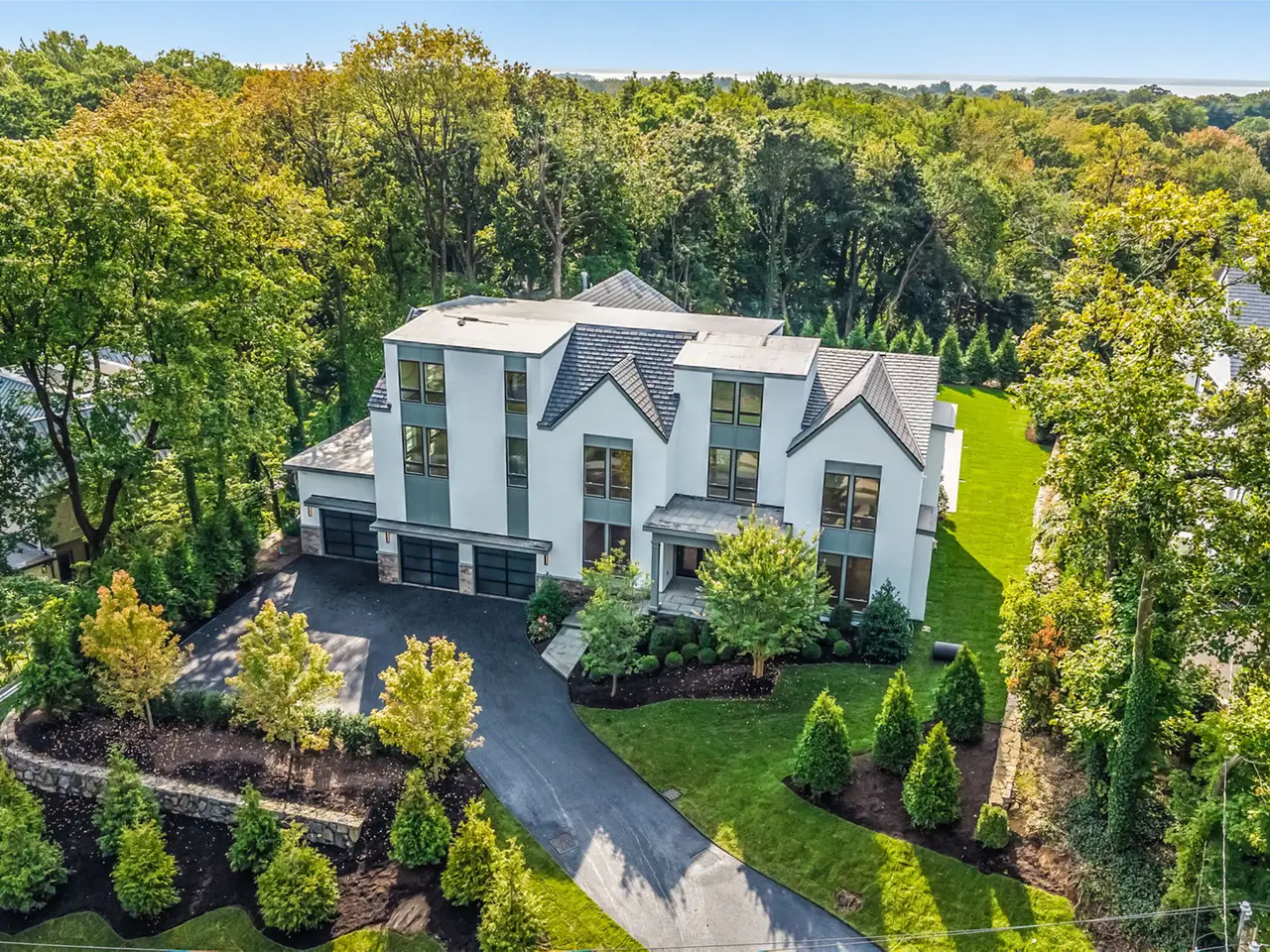 2025 New Consruction residence sits on 0.78 acres combines privacy, elegance, and timeless design just moments Greenwich Ave. Built by Hobi Award winner, RA Land Development, interiors by the acclaimed Laura Michael Design. This home features soaring ceilings, light-filled rooms, and seamless indoor-outdoor living. Highlights include a rooftop deck with Long Island Sound views that crowns the residence, a 3-car garage (+900 sq. Ft.) with 14-ft ceilings, and top-of-the-line finishes throughout. The Chef's kitchen features top-tier appliances, such as Sub-Zero, Wolf, Julien sinks. A grand center island, Custom cabinetry, and thoughtful storage, providing effortless daily living and elevated entertaining. The primary suite offers a double-sided fireplace, creating a warm ambiance enjoyed from both the bedroom and the spa-like bath. A private balcony extends the retreat, while the spa-inspired bathroom features a steam shower and radiant heated floors. 4 additional light filled en-suite bedrooms, share the same level, alongside a full laundry suite equipped with custom built-ins including steam/Iron drawer, a dry rack drawer, and stacked double washers and dryers. A 4-stop hydraulic elevator serves every level-from the versatile finished attic to a finished expansive lower level, you'll find a dedicated room for a gym, guest/au pair en-suite, and pre-wired theater/Golf simulator, ample space for a wine cellar, storage, and protected living space. This home is also equipped with intelligent Lutron lighting, a central vacuum system, integrated speakers on the main floor & primary, and a security system. Outdoors, enjoy a sparkling Gunite pool and integrated spa, hydraulic pool cover, complemented by a full property sprinkler system, and a backyard lined with evergreen trees for ultimate privacy. A rare opportunity for luxury living - delivering privacy, elegance, and sophistication in the heart of Greenwich.