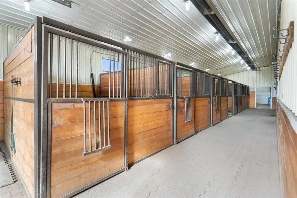 You can let the horses out of the barn—but you can’t take the passion out of a property like this. Thoughtfully designed for serious horse enthusiasts, this 107-acre equestrian facility just north of Calgary offers an exceptional blend of functionality, efficiency, and comfort. Every element has been designed with purpose, making daily operations smoother and the lifestyle truly rewarding. Step into a meticulously planned barn and arena complex that combines practicality with modern efficiency. Features include: heated indoor arena (80’ x 175’) with freshly releveled sand footing; two outdoor arenas (100’ x 210’ and 120’ x 140’); 65-ft, 8-ft-high round pen; hot walker; infrared solarium in the wash rack for year-round conditioning; auto waterers to all stalls; 17 paddocks and 24 shelters across the property; three ~10-acre pastures with excellent grass; insulated lean-to with bobcat bay; Energy Regulation System currently saving up to 28% on utilities; and three shipping containers (one fully converted for blanket storage with racks). The back 70+ acres is ready for the new year with a custom horse hay-blend, previously producing 200-280 round bales per season. Set on 107 private acres, this property offers space, seclusion, and natural beauty. The land is quiet and private, with neighbours rarely around, yet still benefits from school bus service with priority snow clearance and proximity to schools in Cochrane. The main residence is impeccably maintained and showcases a mountain view out of your living room windows. This bungalow has a walkout basement with illegal suite, and newer windows, electrical panel, furnace and hot water tank. A triple-car garage with 220V power adds versatility for tools or trailers, while a concrete parking pad out front adds even more practicality. This is not your average acreage — it’s a turnkey, intelligently designed equestrian operation with proven systems, established supplier relationships, and the perfect blend of form and function. If you’re looking for a facility that works as smart as you do, with the peace and privacy of Alberta’s countryside, this property delivers on every level. **See iGuide of House and Barn)