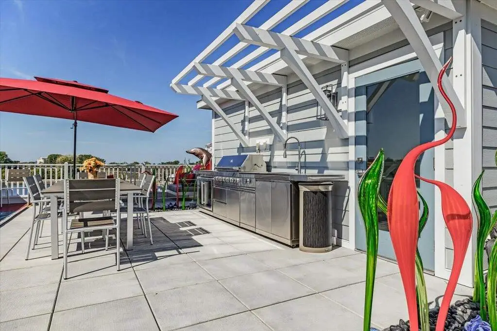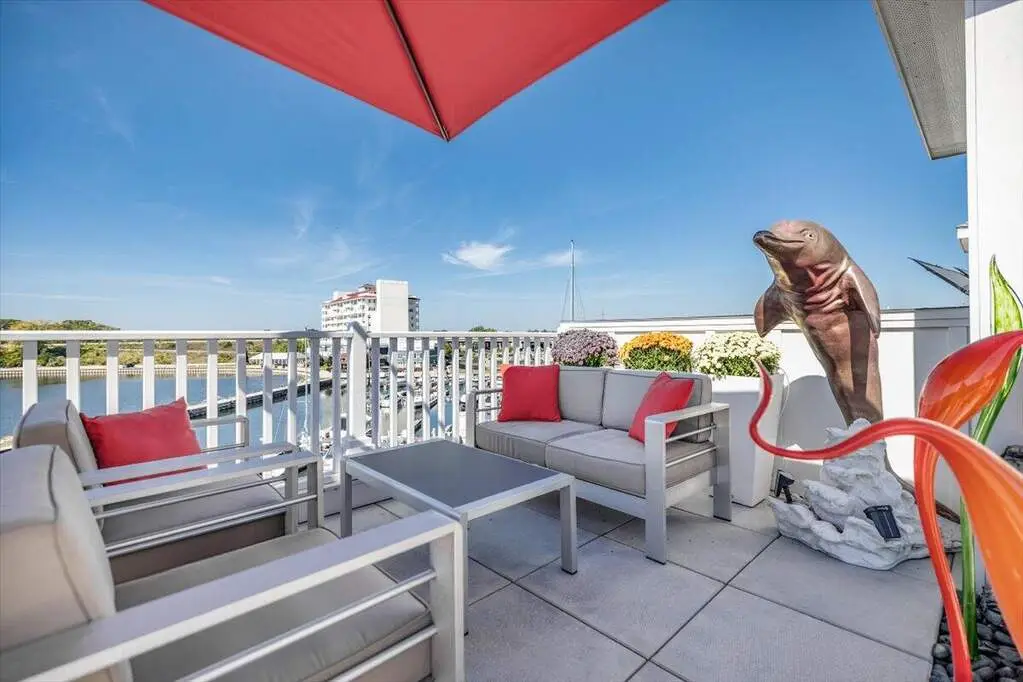 Welcome to your coastal retreat in the heart of Harbor Shores. This exceptional condominium blends elegant design with effortless comfort and a one-of-a-kind lifestyle. The only residence with water views on three sides, capturing soft sunrises and ever changing colors of the evening sky from multiple decks overlooking the St. Joseph River. Hear the water, watch sailboats pass, launch a kayak from nearby access points, and step outside to the Jack Nicklaus-designed golf course, waterfront cafes, parks, and walking trails. One of only six residences with a secluded rooftop terrace a" and no others like it will ever be built! This exclusive oasis features a kitchenette with two refrigerators, sink, BBQ, and burner. Sculpted glass art highlights the terrace's beauty and stays with the home. The rooftop level (one of ONLY 6!) is the showstopper, featuring a full kitchenette with two refrigerators, sink, BBQ, burner, multiple seating areas, and panoramic water views that capture the essence of Harbor Shores. Sculpted glass art highlights the terrace's beauty and stays with the home. Inside, the open-concept layout showcases top-of-the-line kitchen appliances, wine refrigerator, fully automated blinds on all levels, high ceilings, and designer finishes creating a warm, refined living space throughout. Expansive living and dining areas create the perfect setting for entertaining or relaxing after a day on the water. With a gorgeous primary ensuite, 2 additonal bedrooms and elegantly appointed baths, every space reflects superior craftsmanship and modern design. The versatile lower level can serve as a home gym, media room, or additional recreation space offering flexibility to fit your lifestyle. A boat slip is available separately if one desires!