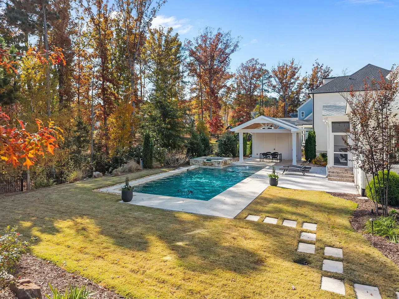 Step beyond the ordinary into a residence that embodies sophistication, craftsmanship, and character. Perfectly positioned on nearly half an acre in the highly sought-after Montvale community, this custom-built home impresses from the moment you arrive. A welcoming front porch leads to an expansive foyer, setting the stage for the home's thoughtful design. The private home office, ideal for today's work-from-home lifestyle, features glass pocket doors for quiet focus and French doors opening onto the porch, filling the space with natural light. The designer kitchen is a true showpiece, showcasing GE Caf? appliances, a walk-in pantry, lighted upper cabinetry, and a butler's pantry complete with a beverage refrigerator. The oversized center island with a single-bowl sink anchors the space, offering a perfect blend of function and style.The open-concept family room is the heart of the home, centered around a gas fireplace and stackable sliding doors that seamlessly extend the living area onto the screened porch?perfect for effortless indoor-outdoor entertaining. A luxurious first-floor guest suite with a spa-inspired bath provides the ideal retreat for visitors or a second primary option. Upstairs, each bedroom boasts a private ensuite, offering comfort and privacy for all. The primary suite is a serene sanctuary tucked away from it all, featuring a zero-entry shower, freestanding soaking tub, dual vanities, dual water closets, and a custom-designed walk-in closet of grand proportions. The upper level also includes a fifth bedroom or exercise room with an attached full bath, adding flexibility to the floor plan. Outdoors, a resort-style in-ground pool framed by lush green space creates a tranquil, private escape for year-round enjoyment. From its refined finishes to its exceptional layout, every detail of this home has been curated for luxury living. Experience the difference the moment you step inside?this Montvale masterpiece is truly one of a kind.