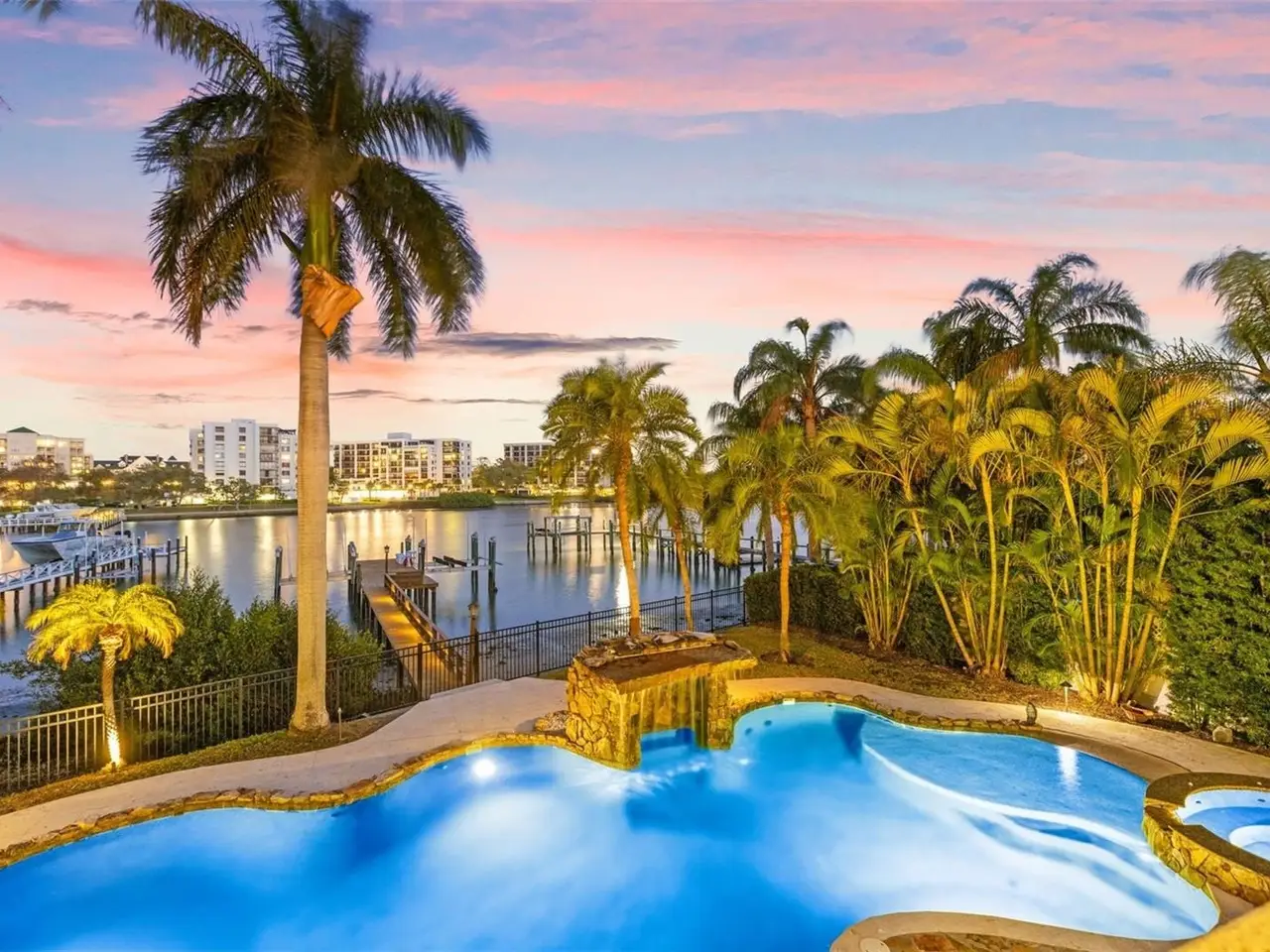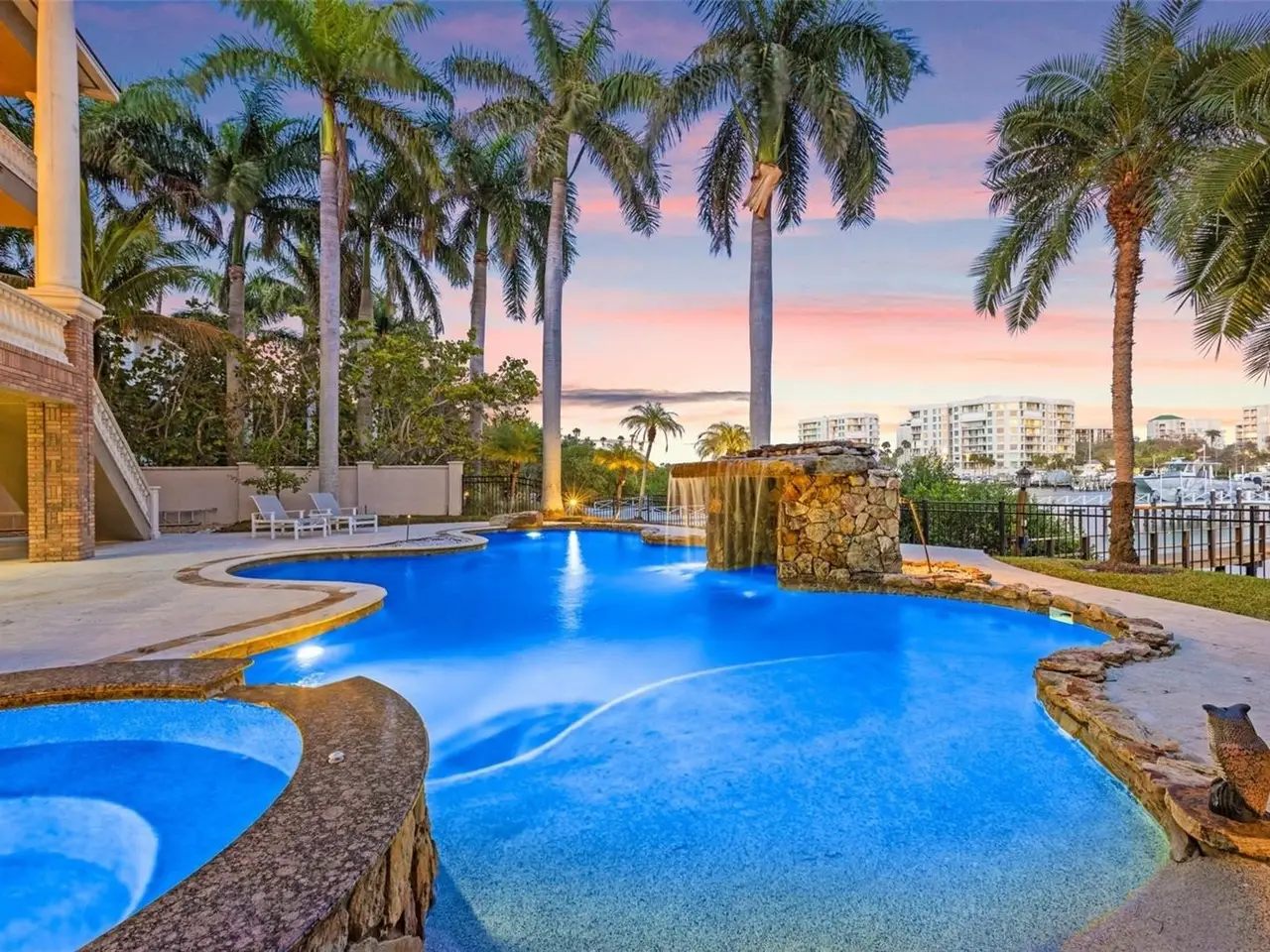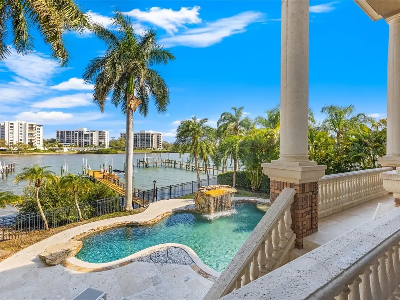 Experience an extraordinary expression of island elegance in this exquisite waterfront residence, nestled within Pinellas County’s most exclusive gated community. Home to fewer than 30 fortunate residents, Belleview Island offers a serene escape that combines unparalleled security, privacy, and breathtaking water views. A short stroll away lies the renowned Belleair Country Club—featuring two 18-hole Donald Ross-designed golf courses, Har-Tru tennis courts, pickleball courts and a junior Olympic-sized swimming pool. The ideal spot for boating enthusiasts, this premier waterfront location provides swift access to Clearwater Pass and the open Gulf waters. Marvel at panoramic water views that serve as the backdrop for the home’s timeless design, exemplifying understated elegance and open-concept living. From the moment you step into the grand foyer, you’ll be captivated by soaring ceilings that elevate every gathering. The gourmet kitchen, outfitted with striking quartz countertops and stainless-steel appliances, accommodates both formal and informal dining with abundant seating. Completing this level are a spacious family room, a formal dining room, and an executive home office—perfect for those who blend luxury living with professional pursuits. Ascend the marble staircase, or opt for the private elevator to reach the lavish primary suite, which boasts a spa-inspired bathroom, a generous walk-in closet, and two balconies overlooking the backyard. An adjoining 14' x 20' room allows flexibility for a nursery, second study, or home gym, catering to your evolving needs. Step outside to one of several balconies, ideal for savoring morning coffee or al fresco dining against a backdrop of idyllic water vistas. The show-stopping 60' x 28' pool is arguably the largest on Belleview Island, offering endless fun in the Florida sun, while a private dock equipped with lifts for two vessels ensures seamless access to your water adventures. This magnificent home is custom tailored for those seeking both refined entertaining spaces and a serene retreat, where every aspect is designed to fulfill the demands of a discerning lifestyle.