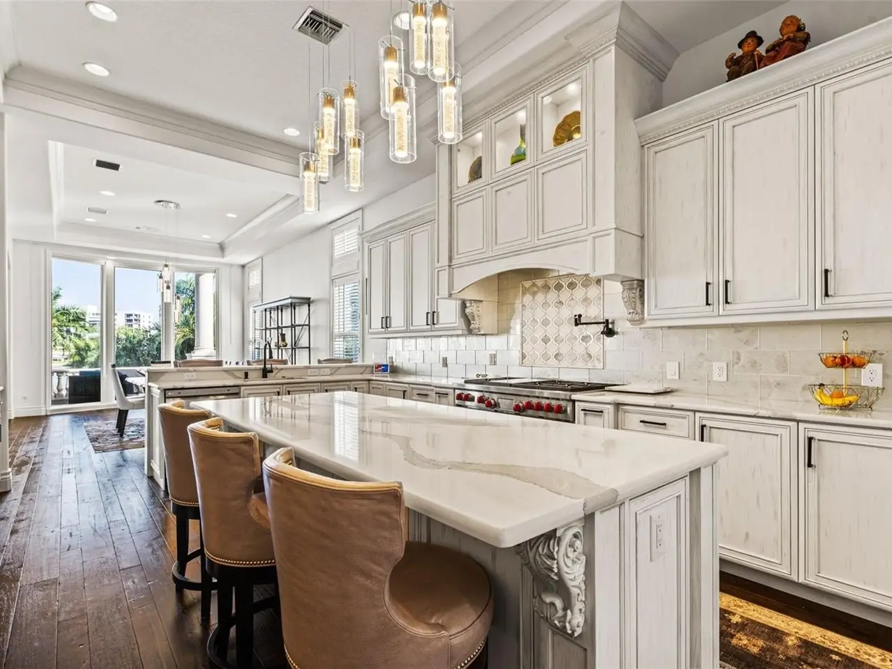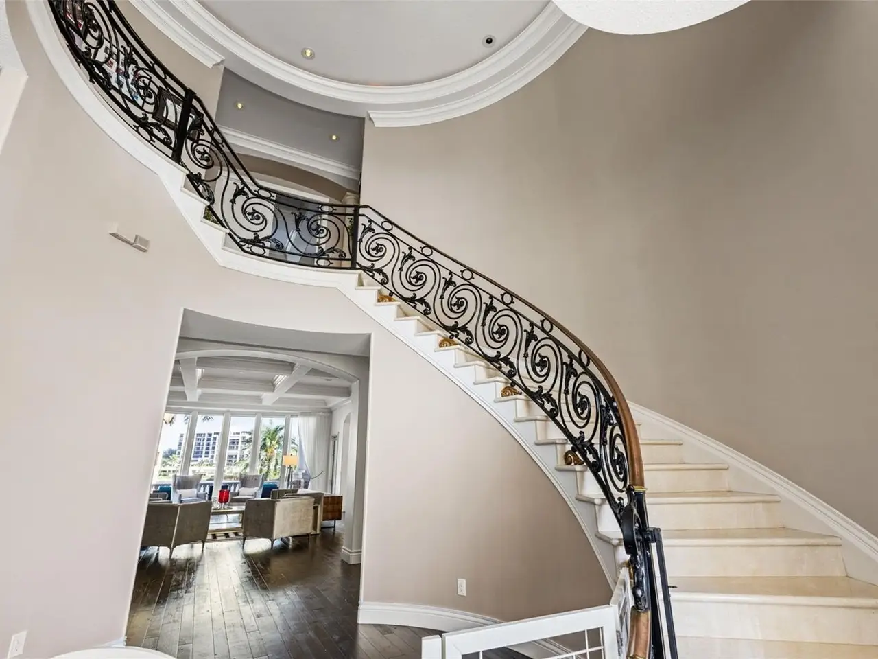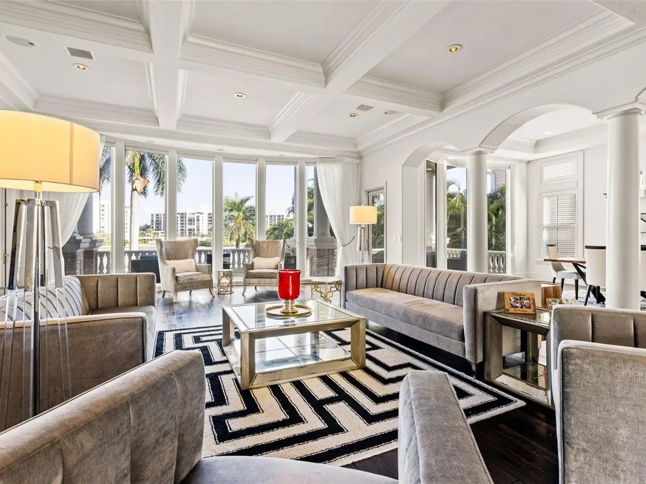 Experience an extraordinary expression of island elegance in this exquisite waterfront residence, nestled within Pinellas County’s most exclusive gated community. Home to fewer than 30 fortunate residents, Belleview Island offers a serene escape that combines unparalleled security, privacy, and breathtaking water views. A short stroll away lies the renowned Belleair Country Club—featuring two 18-hole Donald Ross-designed golf courses, Har-Tru tennis courts, pickleball courts and a junior Olympic-sized swimming pool. The ideal spot for boating enthusiasts, this premier waterfront location provides swift access to Clearwater Pass and the open Gulf waters. Marvel at panoramic water views that serve as the backdrop for the home’s timeless design, exemplifying understated elegance and open-concept living. From the moment you step into the grand foyer, you’ll be captivated by soaring ceilings that elevate every gathering. The gourmet kitchen, outfitted with striking quartz countertops and stainless-steel appliances, accommodates both formal and informal dining with abundant seating. Completing this level are a spacious family room, a formal dining room, and an executive home office—perfect for those who blend luxury living with professional pursuits. Ascend the marble staircase, or opt for the private elevator to reach the lavish primary suite, which boasts a spa-inspired bathroom, a generous walk-in closet, and two balconies overlooking the backyard. An adjoining 14' x 20' room allows flexibility for a nursery, second study, or home gym, catering to your evolving needs. Step outside to one of several balconies, ideal for savoring morning coffee or al fresco dining against a backdrop of idyllic water vistas. The show-stopping 60' x 28' pool is arguably the largest on Belleview Island, offering endless fun in the Florida sun, while a private dock equipped with lifts for two vessels ensures seamless access to your water adventures. This magnificent home is custom tailored for those seeking both refined entertaining spaces and a serene retreat, where every aspect is designed to fulfill the demands of a discerning lifestyle.
