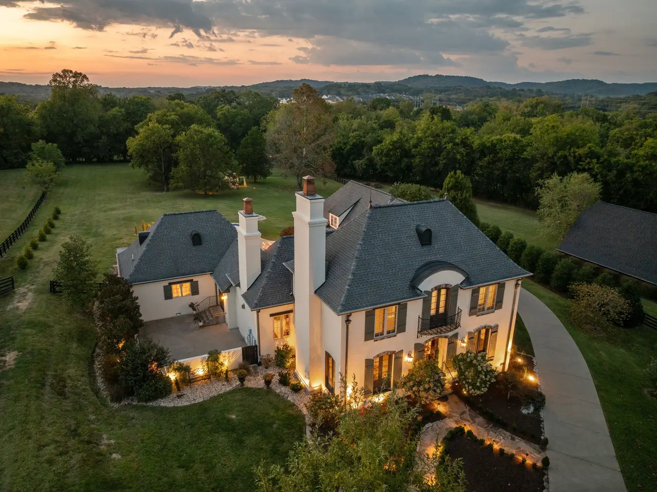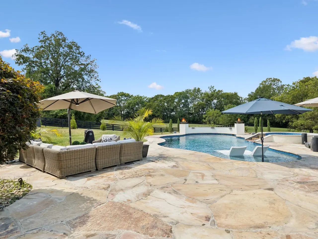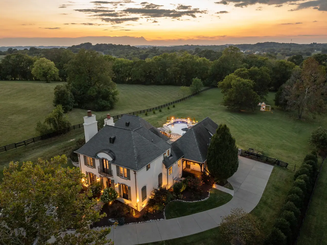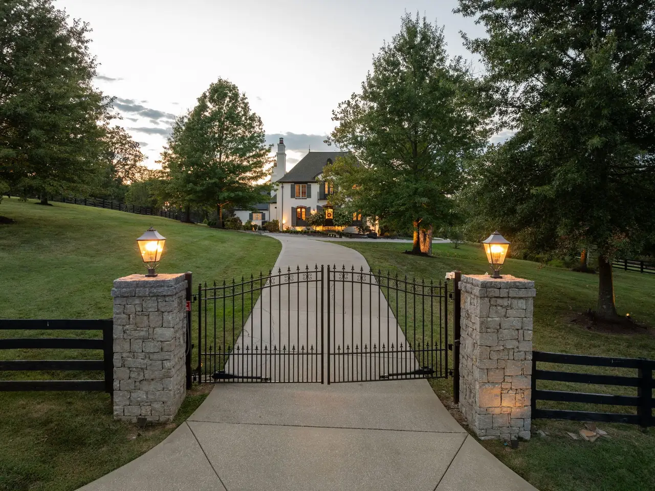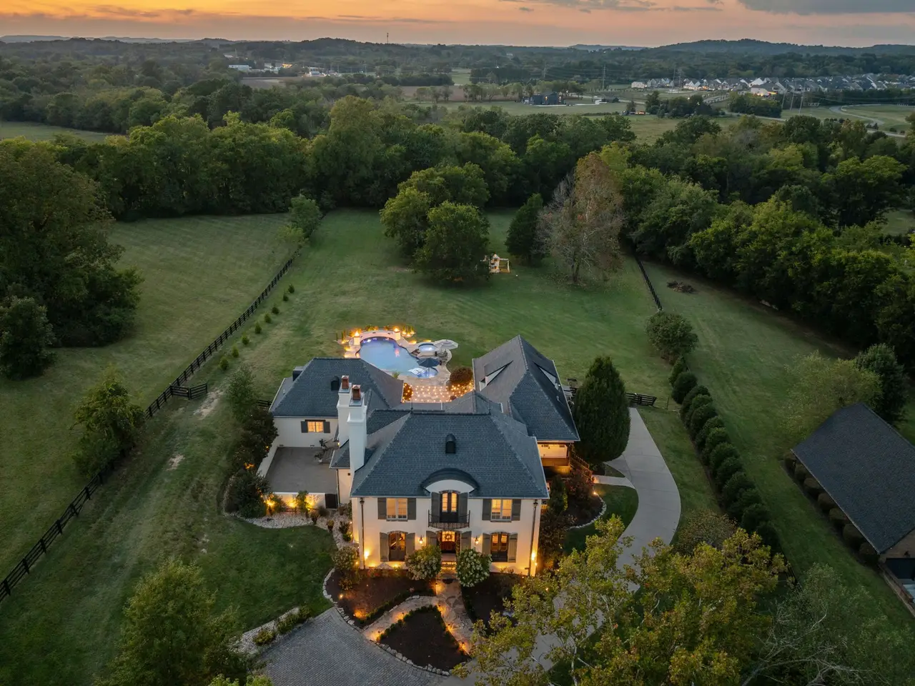 Experience refined country living on 3.39 acres with a private creek, gated entry, and incredible outdoor amenities that create a true resort-style retreat. Extensively renovated, this property pairs timeless architecture with thoughtful modern updates. Inside, the home welcomes you with a dramatic foyer showcasing checkered tile and wainscoting. The main level offers elegant spaces for gatherings, including formal living and dining rooms with gleaming hardwood floors. Arched openings, custom trim, and statement lighting carry throughout, while the coffered-ceiling family room features built-ins and a stone fireplace, flowing seamlessly into a chef's kitchen. The kitchen is designed for serious cooks and entertainers alike. An oversized island, wet bar, dual sinks, and a full suite of luxury appliances anchor the space--Fisher & Paykel refrigerator/freezer columns, an ILVE Italian dual-fuel range with gold accents, stainless vent hood, dual dishwashers, walk-in pantry, and a fluted glass buffet add both function and style. The primary suite on the main floor provides a private haven, complete with two walk-in closets, a marble shower, soaking tub, and dual vanities. A future bar area can be customized to your taste. Upstairs, one wing hosts a state-of-the-art media room with 11.2 surround sound and flexible storage, while the other offers three bedrooms, two baths, and a versatile bonus area. The grounds are exceptional, offering spaces for both quiet enjoyment and grand entertaining. A covered porch and fireplace patio overlook a sprawling fenced yard with raised garden beds. The pool complex features a sun shelf, integrated spa, and dramatic fire features. A separate creekside firepit provides an intimate escape. Additional highlights include a three-car garage, extended parking, and mature trees lining the private drive. Just minutes from Arrington Vineyards and Franklin, and within easy reach of Nashville.