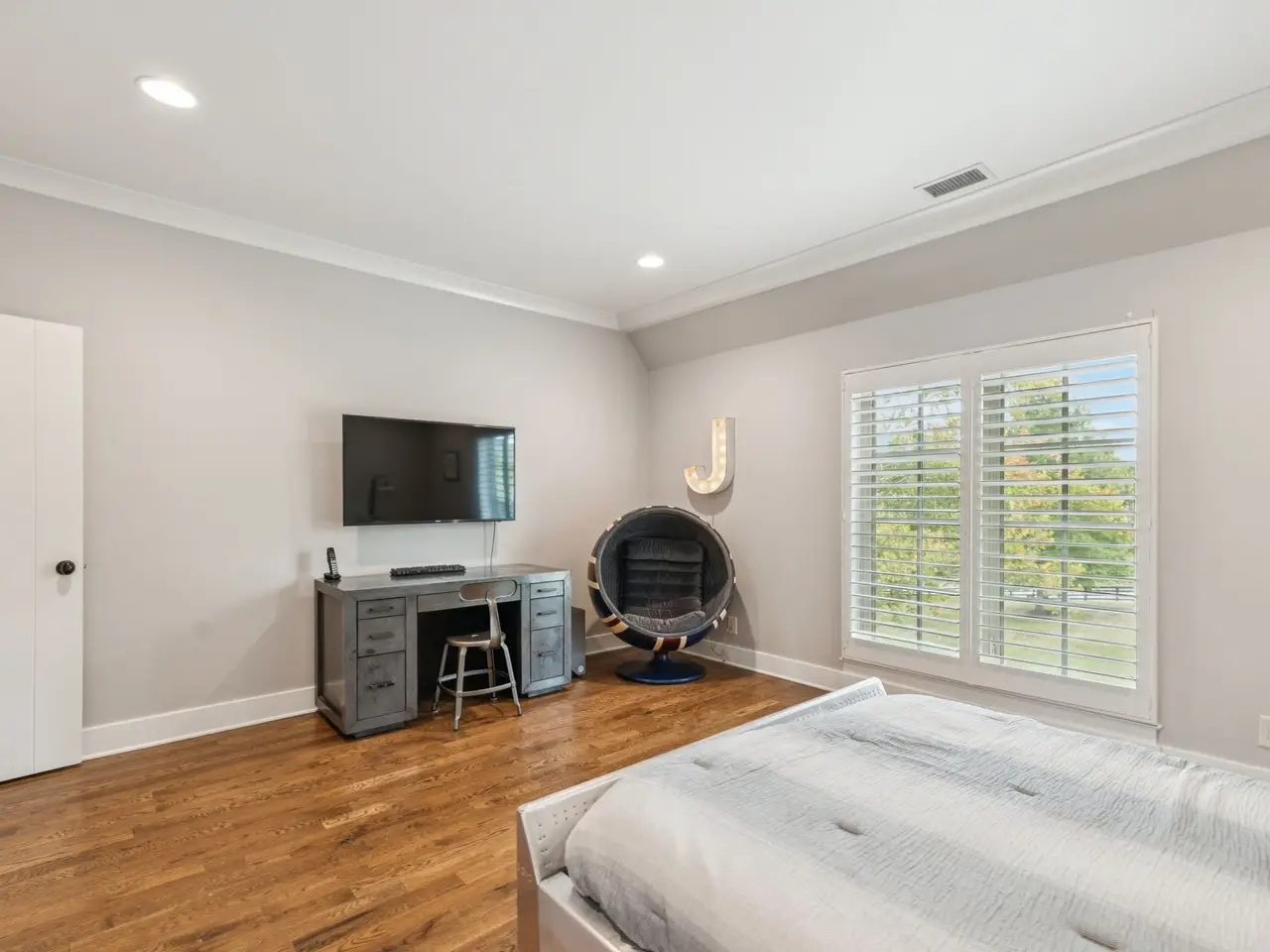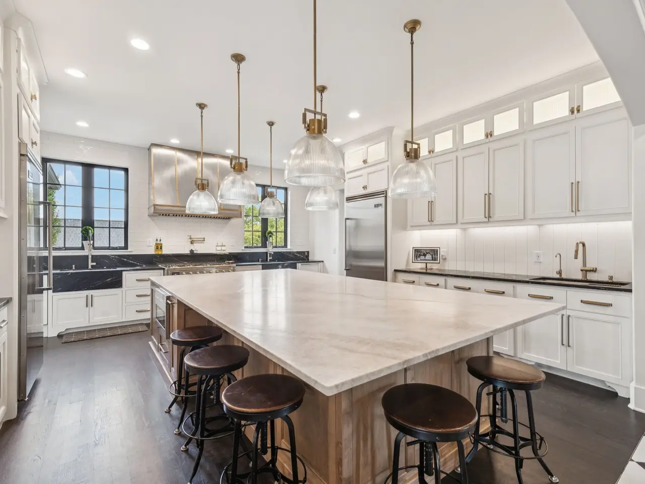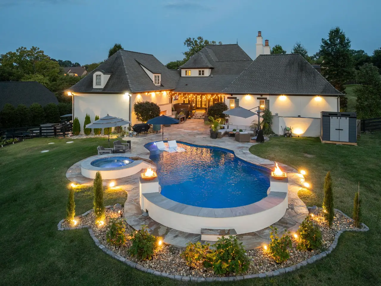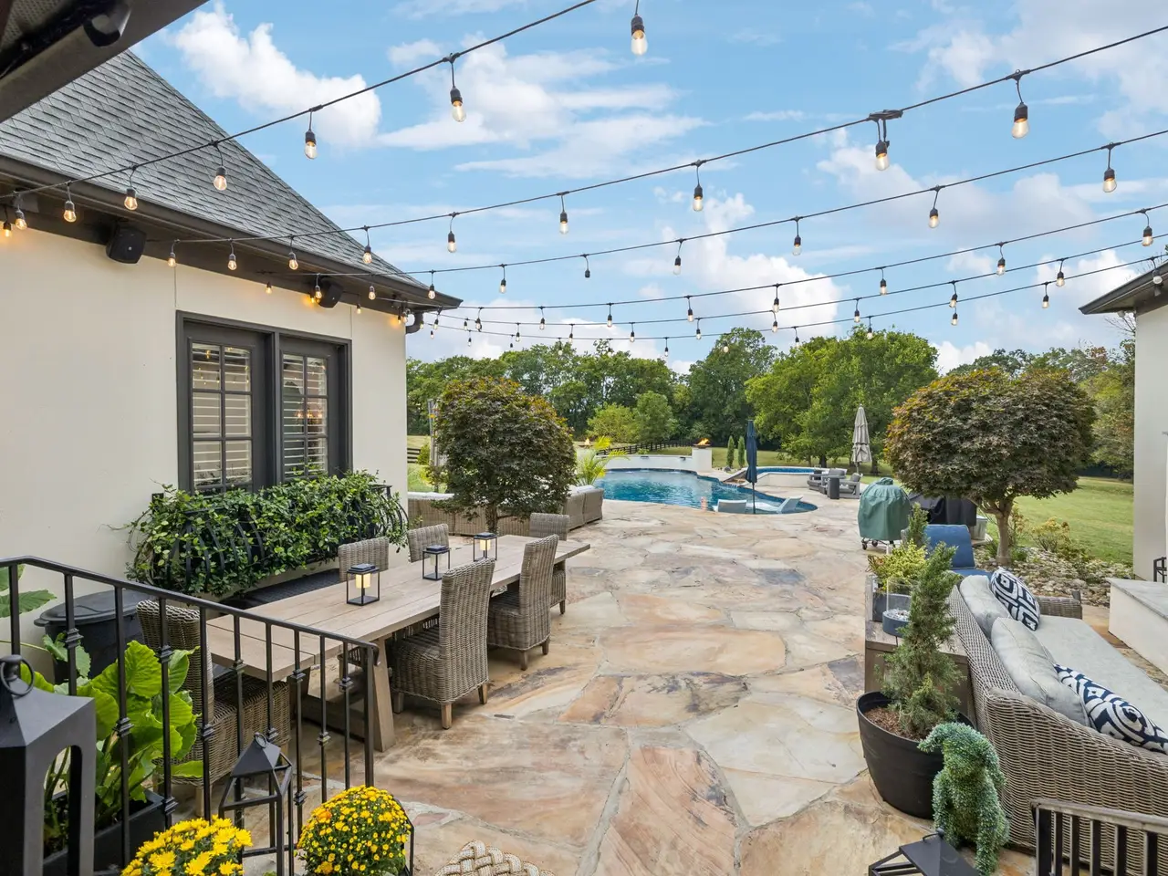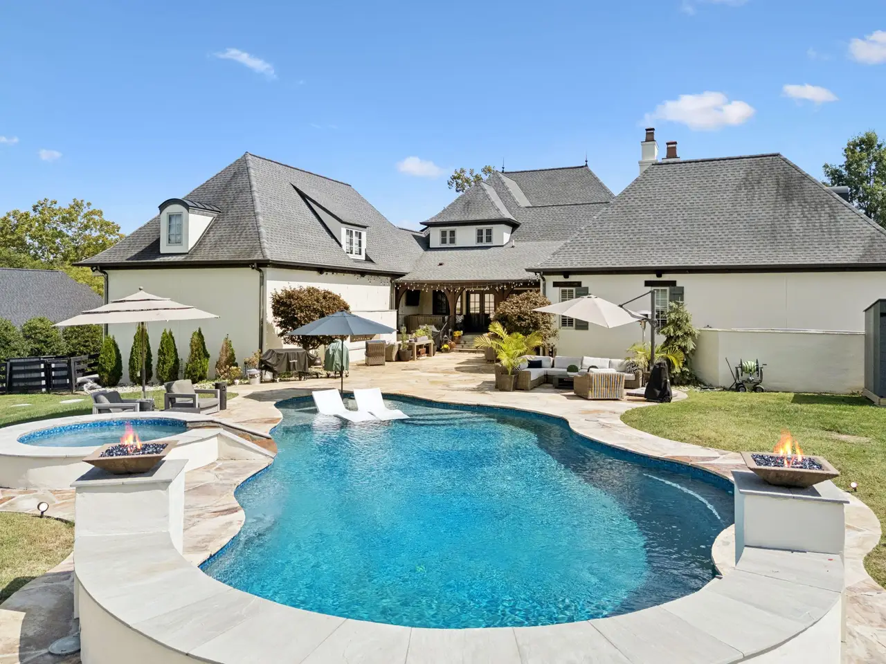 Experience refined country living on 3.39 acres with a private creek, gated entry, and incredible outdoor amenities that create a true resort-style retreat. Extensively renovated, this property pairs timeless architecture with thoughtful modern updates. Inside, the home welcomes you with a dramatic foyer showcasing checkered tile and wainscoting. The main level offers elegant spaces for gatherings, including formal living and dining rooms with gleaming hardwood floors. Arched openings, custom trim, and statement lighting carry throughout, while the coffered-ceiling family room features built-ins and a stone fireplace, flowing seamlessly into a chef's kitchen. The kitchen is designed for serious cooks and entertainers alike. An oversized island, wet bar, dual sinks, and a full suite of luxury appliances anchor the space--Fisher & Paykel refrigerator/freezer columns, an ILVE Italian dual-fuel range with gold accents, stainless vent hood, dual dishwashers, walk-in pantry, and a fluted glass buffet add both function and style. The primary suite on the main floor provides a private haven, complete with two walk-in closets, a marble shower, soaking tub, and dual vanities. A future bar area can be customized to your taste. Upstairs, one wing hosts a state-of-the-art media room with 11.2 surround sound and flexible storage, while the other offers three bedrooms, two baths, and a versatile bonus area. The grounds are exceptional, offering spaces for both quiet enjoyment and grand entertaining. A covered porch and fireplace patio overlook a sprawling fenced yard with raised garden beds. The pool complex features a sun shelf, integrated spa, and dramatic fire features. A separate creekside firepit provides an intimate escape. Additional highlights include a three-car garage, extended parking, and mature trees lining the private drive. Just minutes from Arrington Vineyards and Franklin, and within easy reach of Nashville.
