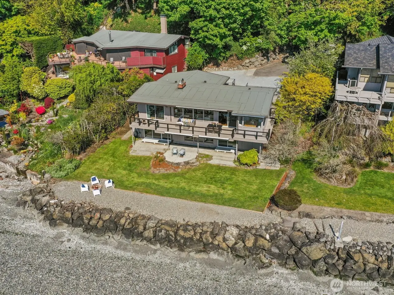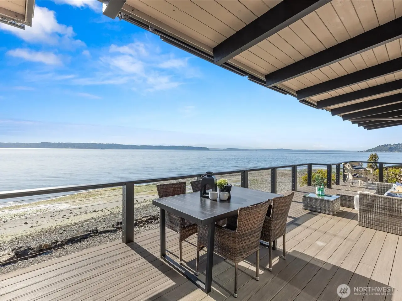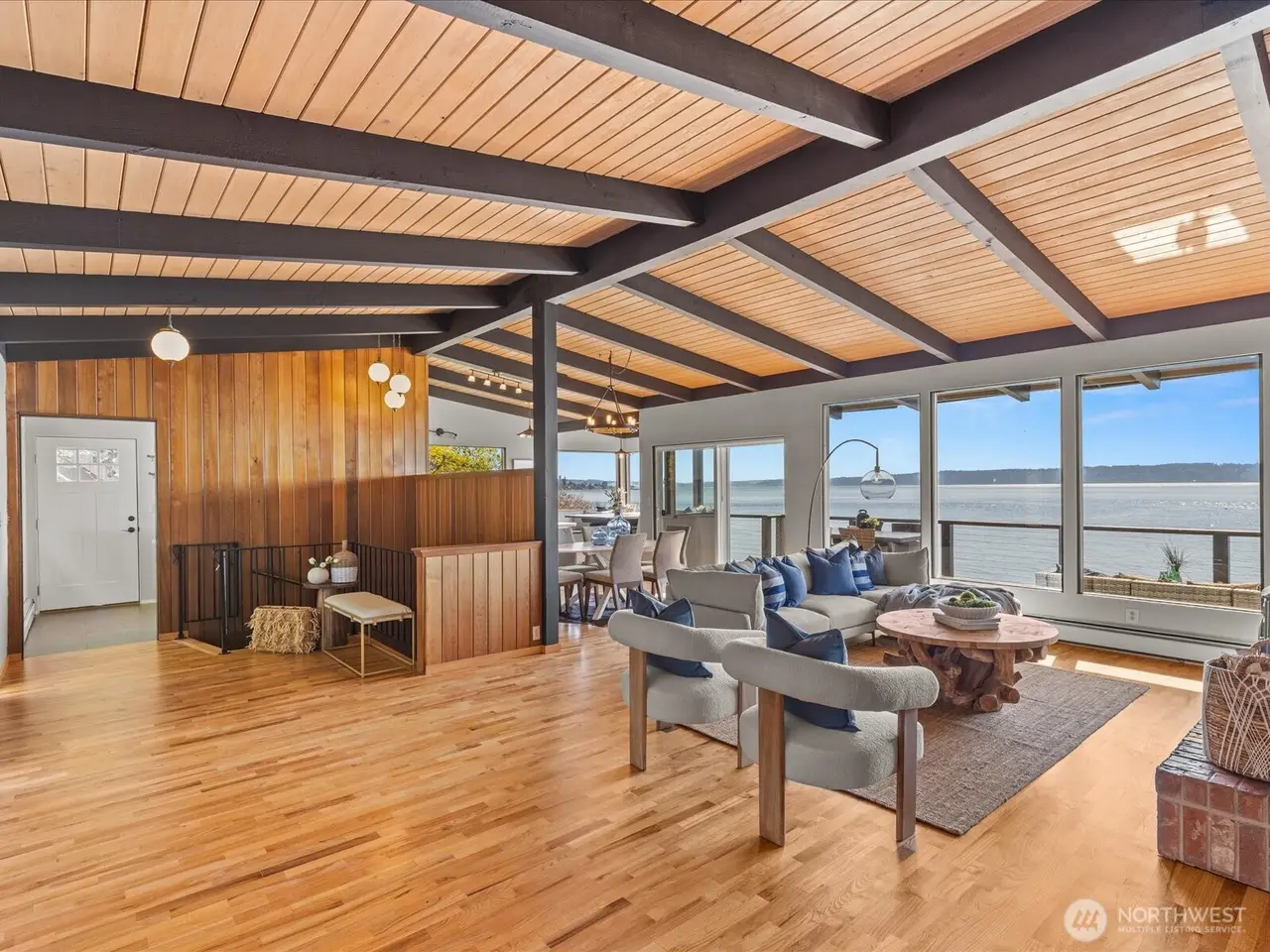Tucked away in Seahurst, this waterfront haven offers over 180 of sweeping Puget Sound views and rare privacy on a coveted point. Unlike many homes in this area, you can drive up to your front door - no tram required. The beautifully updated kitchen features high-end appliances--double ovens, gas stove, built-in microwave--and cozy in-kitchen seating to enjoy sunrise with your coffee. Upstairs glows with refinished Red Oak floors and fresh paint, while the primary bath includes a heated mirror in the shower. Entertain on the main-level deck with front-row seats to orcas and seals. There's room for up to five vehicles, plus generator wiring and an outdoor shower--pure Northwest coastal luxury. 4th bedroom downstairs is non-conforming.