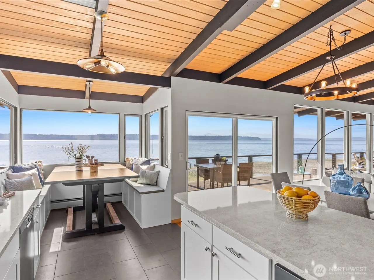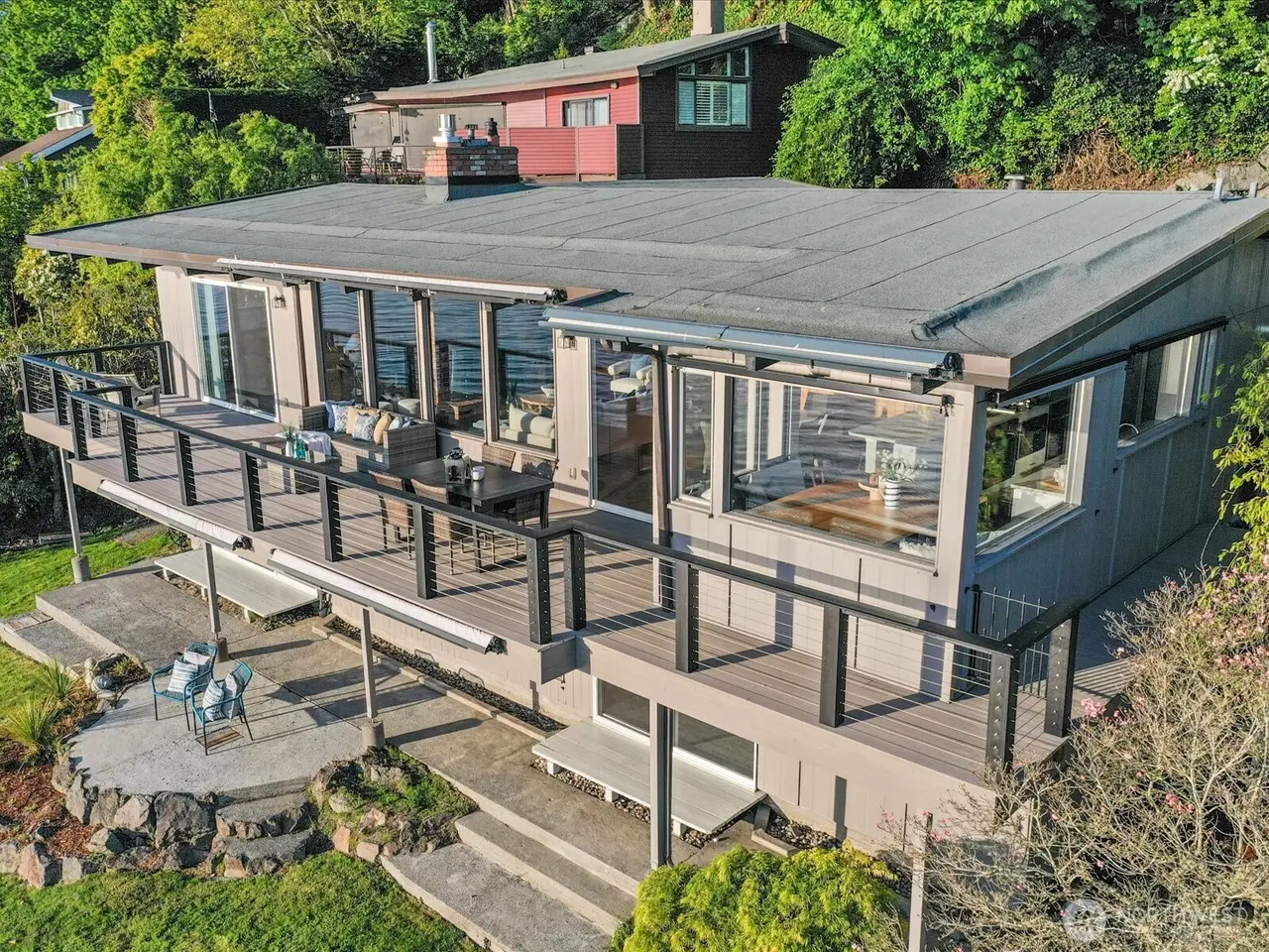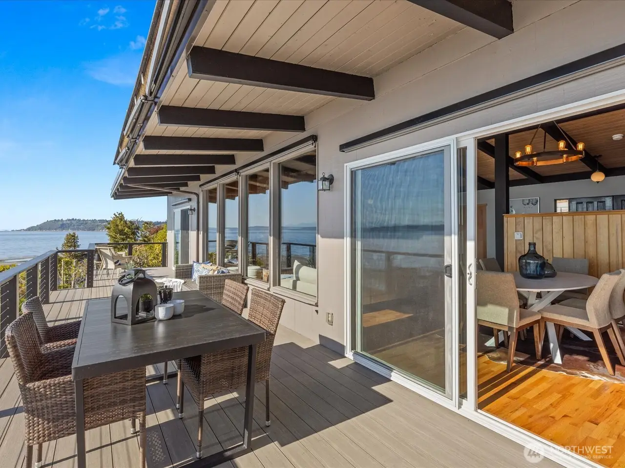 Tucked away in Seahurst, this waterfront haven offers over 180 of sweeping Puget Sound views and rare privacy on a coveted point. Unlike many homes in this area, you can drive up to your front door - no tram required. The beautifully updated kitchen features high-end appliances--double ovens, gas stove, built-in microwave--and cozy in-kitchen seating to enjoy sunrise with your coffee. Upstairs glows with refinished Red Oak floors and fresh paint, while the primary bath includes a heated mirror in the shower. Entertain on the main-level deck with front-row seats to orcas and seals. There's room for up to five vehicles, plus generator wiring and an outdoor shower--pure Northwest coastal luxury. 4th bedroom downstairs is non-conforming.