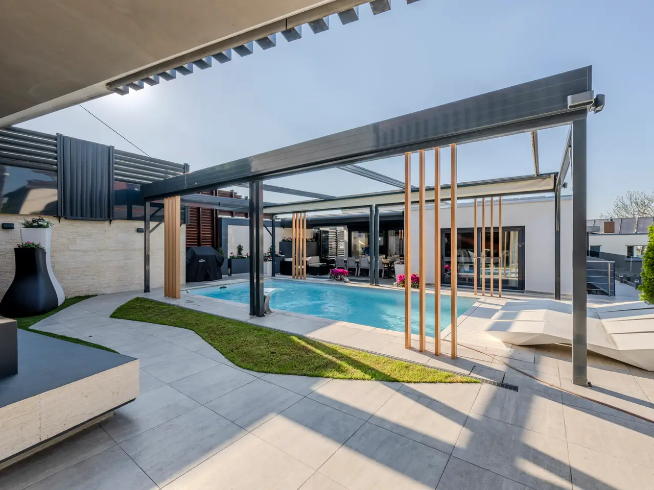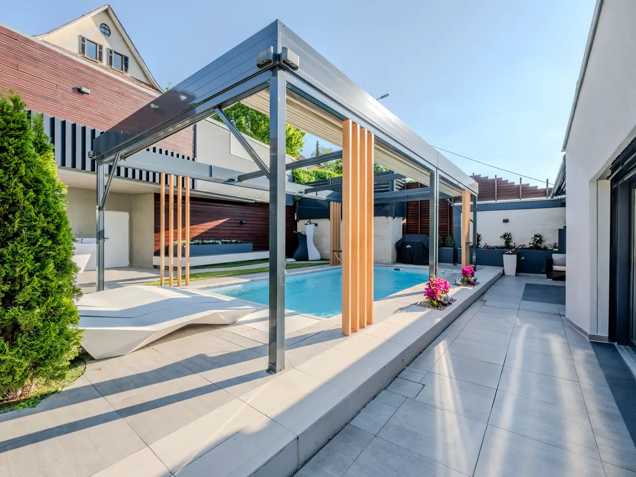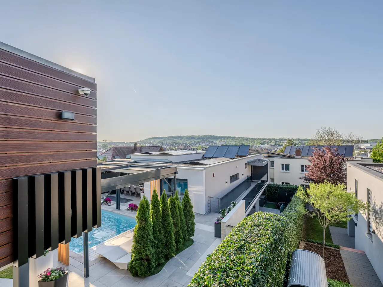 This exclusive single-family home combines exceptional individuality with a high level of living comfort in the family-friendly Killesberg area. This discreet family residence is invisible from the street and offers a high degree of privacy. Conveniently park your vehicle in the adjacent outdoor parking spaces or in the garage, and access the house entrance via a stylish staircase. The elaborately landscaped outdoor area, with its heated pool and electric shading, creates an ambiance reminiscent of Mediterranean summer residences. Even beyond the summer months, the property, including the terrace and its associated usable areas, is perfect for relaxing family moments as well as for extensive pool parties with your loved ones. The south-facing terrace also features electric shading, allowing you to fully enjoy the holiday atmosphere even on very hot days. With approximately 300 m² of living space, the house is spread over two levels, plus a fitness room and building services in the basement. On the upper level, open-plan living, dining, and kitchen areas form the center of family life. The parents' retreat with a luxurious en-suite bathroom and walk-in closet, as well as a guest bathroom, complete this level. Several children's and/or guest rooms on the lower living level offer a high degree of flexibility and privacy. A separate entrance also allows independent access to this floor. In 2015/2016, the house was extensively renovated and remodeled, using very high-quality materials. Stylish Corian elements adorn the kitchen and bathrooms. The floor is covered in high-quality marble, which harmonizes perfectly with the underfloor heating. From the doors, windows, and lighting to the sophisticated electrical system, including a bus system and app control, everything has been thought of to ensure the highest level of living comfort. A modern heating concept with pellets, a heat pump, solar thermal energy, and a photovoltaic system (11 kW) ensures a very good energy balance – consumption values are on par with those of a new building. Locations Killesberg has been considered one of the most desirable addresses in Stuttgart since the 1920s. This residential building is located on a hillside in the beautiful Feuerbach Valley. The neighborhood is characterized by single- and two-family homes and green surroundings. The house we are offering is very discreetly nestled, allowing you to enjoy a high degree of privacy and tranquility on your own property. Families with children will appreciate the proximity to the outdoor pool and Höhenpark, which offer a wide range of leisure activities. Schools and kindergartens are also easily accessible. The immediate proximity to the B295, B10, and B27 highways means that surrounding towns and the motorway are within easy reach. The nearest tram stop is located at Maybachstraße. Numerous shops, as well as restaurants, bars, and cafés, are also within walking distance or just a few minutes by car. Type of parking 2 x outdoor parking space, 1 x garage Other information An energy performance certificate is available. This is valid until July 1, 2035. The final energy consumption is 25.98 kWh/(m²*a). The main energy source for heating is electricity. The year of construction of the property according to the energy performance certificate is 1965. The energy efficiency class is A+. MONEY LAUNDERING: As a real estate brokerage company, von Poll Immobilien GmbH is obligated according to Section 2 Paragraph 1 No. 14 and Section 11 Paragraphs 1 and 2 of the Money Laundering Act (GwG) to establish and verify the identity of the contractual partner when establishing a business relationship, or as soon as there is a serious interest in executing the property purchase agreement. For this purpose, it is necessary that we record the relevant data from your identity card (if you are acting as a natural person) – for example, by means of a copy. For a legal entity, we require a copy of the commercial register extract showing the beneficial owner. The Money Laundering Act stipulates that the broker must retain copies or documents for five years. As our contractual partner, you also have a duty to cooperate according to Section 11 Paragraph 6 of the Money Laundering Act. LIABILITY: We would like to point out that the property information, documents, plans, etc. we provide originate from the seller or landlord. We therefore assume no liability for the accuracy or completeness of the information. It is therefore our clients' responsibility to check the property information and details contained therein for accuracy. All property offers are subject to change without notice and are subject to errors, prior sale and rental, or other interim disposal. OUR SERVICE FOR YOU AS AN OWNER: If you are planning to sell or rent your property, it is important for you to know its market value. Have one of our real estate specialists professionally assess the current value of your property free of charge and without obligation. Our nationwide and international network enables us to optimally match sellers or landlords with interested parties.