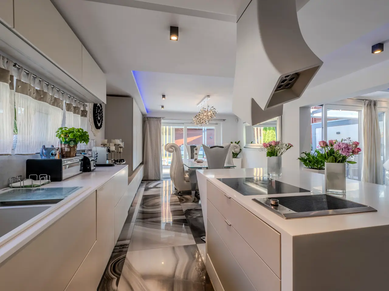 High-quality Corian elements in kitchen and bathrooms