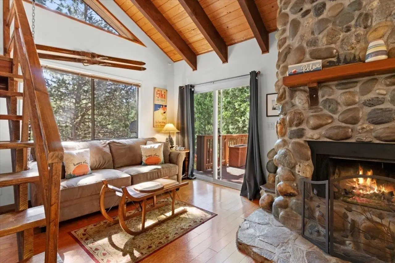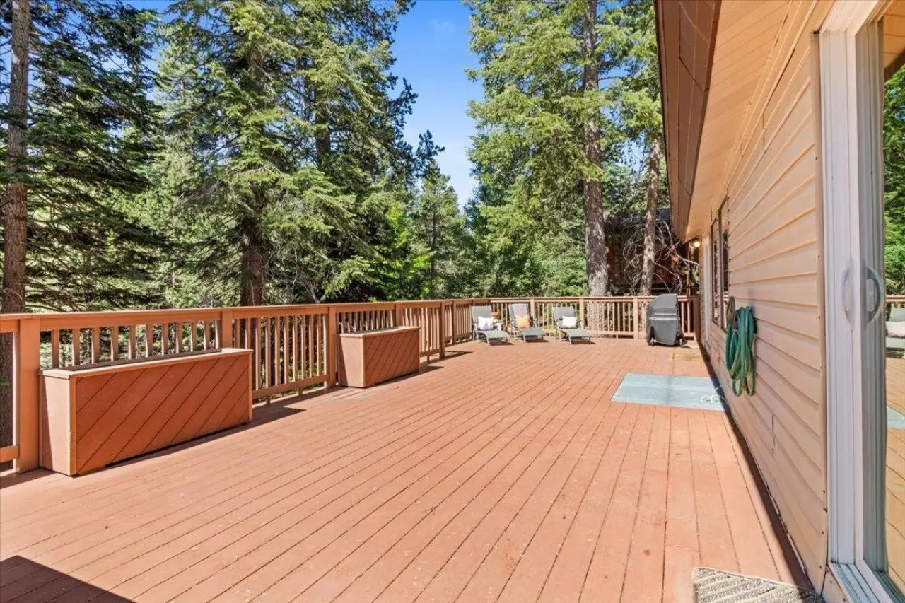 This home sits amongst an extraordinary alpine setting adjacent to greenbelt with the perfect amount of sun throughout. The main floor has cathedral ceilings with windows lining the entire back wall of the home's main floor allowing for a generous amount of sunlight into the home. There are two sliding glass doors onto an extended outside living area. The deck off of the main floor is made of Trex and runs the entire length of the home. The beautiful back lot backs up to protected land allowing forever natural beauty and privacy. In the winter, cozy up to the River Stone Fire Place which is a statement piece in this home. All three bedrooms are on the lower level and the primary suite that has a small private patio. There is a fun bonus loft above the living room that sleeps two adults in a queen bed and makes an excellent play space for children. Awake to the tree top views from the window right at the foot of the bed. A must have these days, there is a small office nook on the lower level that allows one to comfortably shut themselves away and work remotely while your guest are emerged in their vacation. The primary suite also has it's own separate private entrance and exit as there are stairs from it's private patio down to the back and side yard as well as to the covered cat walk on the lower front of the home with stairs leading to the garage and street. ADU! The 400 sq ft ADU is completely separate from the home has been brand newly remodeled. There is direct/separate entrance to and from this ADU and the garage & street level through a covered cat walk patio on the lower level of the front of the home and up a couple of stairs. This ADU also has it's own private patio and direct access to the side yard and back lot area of the property. This is a fantastic unit for guest or potential rental housing opportunities to share your property with others. Close to Northstar and the sandy-beaches of Lake Tahoe. National Forest Service trail system with biking, hiking and snowmobiling right around the corner.