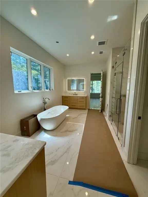 Tucked away at the end of Mystic Drive, just a short walk to Chastain Park's premier trails, golf course, and dining, this custom new construction offers the perfect blend of privacy, functionality, and refined design. The open-concept layout is built for effortless entertaining, with multiple indoor and outdoor gathering spaces, including a marble-floored porch with a fireplace and a separate grilling station. A rare main-level primary suite features custom his-and-her closets and a spa-like bath with a soaking tub and oversized enclosed shower. A second main-floor bedroom is ideal for guests or a home office. At the heart of the home, a steel-and-glass wine room creates a stunning focal point, adjacent to a custom bar for seamless hosting. For added convenience, laundry rooms are located on both levels, making everyday living effortless. Upstairs, a spacious loft connects to three en-suite bedrooms and a flexible bonus space. The lower terrace level is already framed, offering endless possibilities to customize so bring your vision, and we'll handle the rest. This level also features a walkout patio leading to a lush backyard with established hardwoods and a prime pool site. Additionally, a brand-new sewer line has been installed for a seamless connection to public sewer. Located in the coveted Heards Ferry/Riverwood school districts, this is a rare opportunity to own a thoughtfully designed, high-end home in one of Atlanta's most desirable neighborhoods. **Now available for private showings. ** Built by Dar-Court Builders with nearly 25 years of building experience in the N. Buckhead/Chastain/Sandy Springs areas you can count on a strong reputation of quality at a fair price.