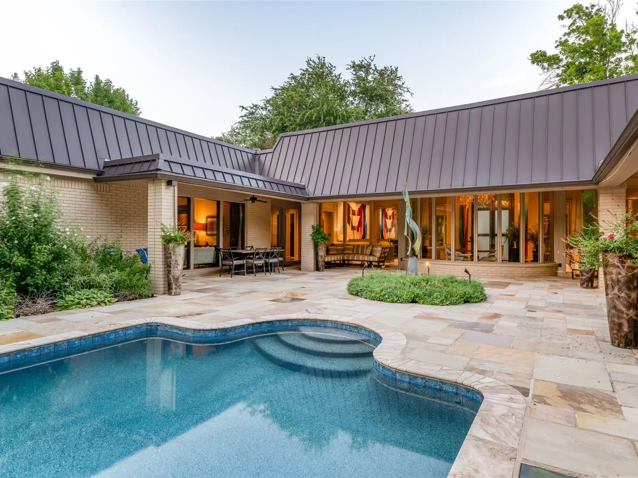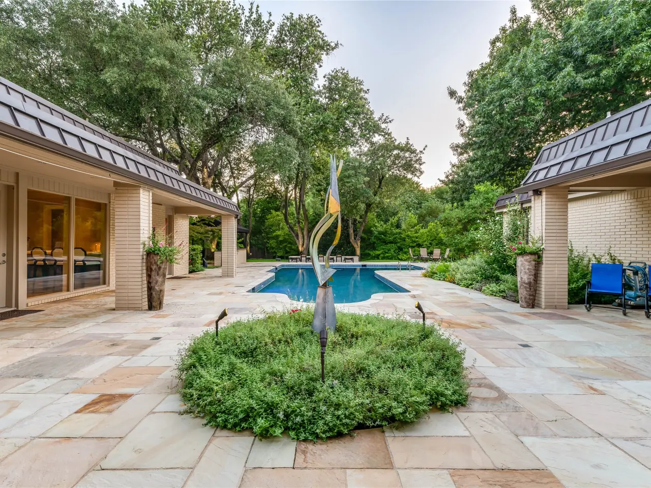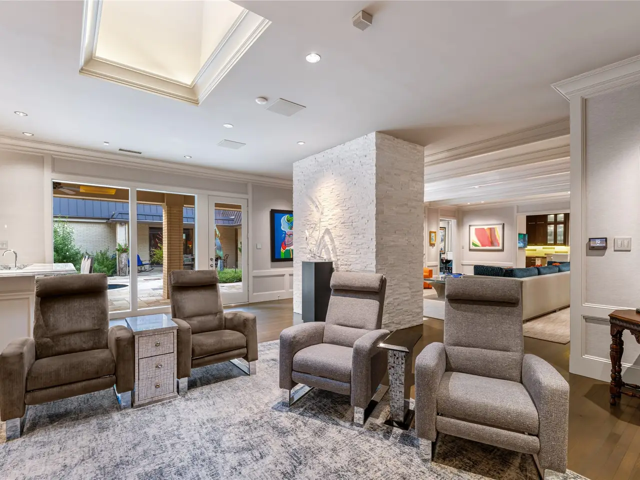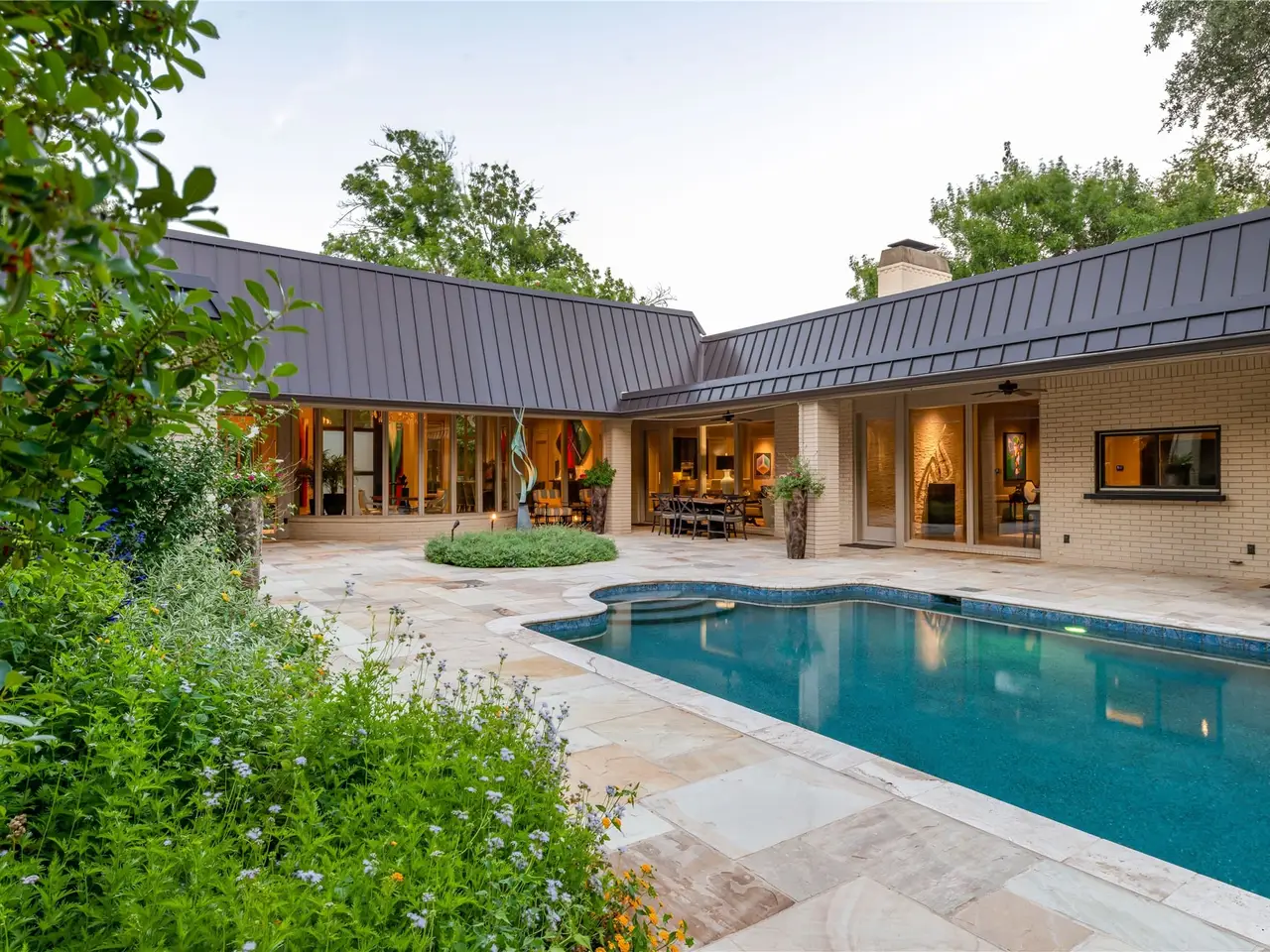 Welcome to a one-of-a-kind estate nestled in the heart of Dallas' coveted Preston Hollow. This exquisitely designed residence is a rare blend of refined sophistication, contemporary luxury, and timeless appeal designed for both grand entertaining and exclusivity ' perfect for the discerning buyer seeking space, privacy, and impeccable design. Totally remodeled in 2014 and sitting on over .92 acres, this sprawling single-story home features five bedrooms, five and a half bathrooms. The grand marble entry, dramatic chandelier, and floor-to-ceiling windows offer a striking first impression. The chef's kitchen is a true centerpiece with dual islands, premium Wolff appliances, custom cabinetry and millwork and skylights that fills the spaces with natural light. It opens seamlessly to a spacious living room, perfect for entertaining or everyday living. Each of the rooms are beautifully appointed with custom finish outs throughout. The primary suite is a serene escape with a spa-like bath, fireplace, custom jetted tub, dual rainfall showers, infrared dry sauna, and direct pool access. The multiple oversized custom closet includes built-ins, island storage, and a dedicated washer-dryer. Outside, enjoy your very own urban oasis with private pool, outdoor kitchen, and multiple entertainment areas. Surround yourself in the properties natural beauty and privacy that runs along the creek, with mature trees, lush landscaping, a sparkling pool, and expansive patios perfect for relaxing or hosting. Located minutes from Dallas' best private schools, shopping, and dining, this home is luxury living at its finest.