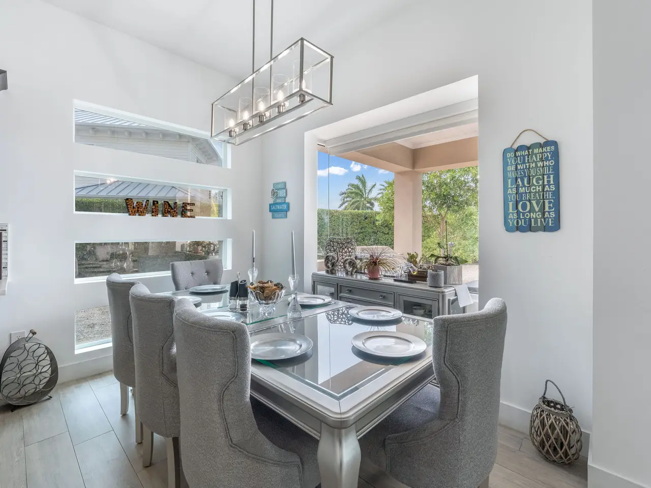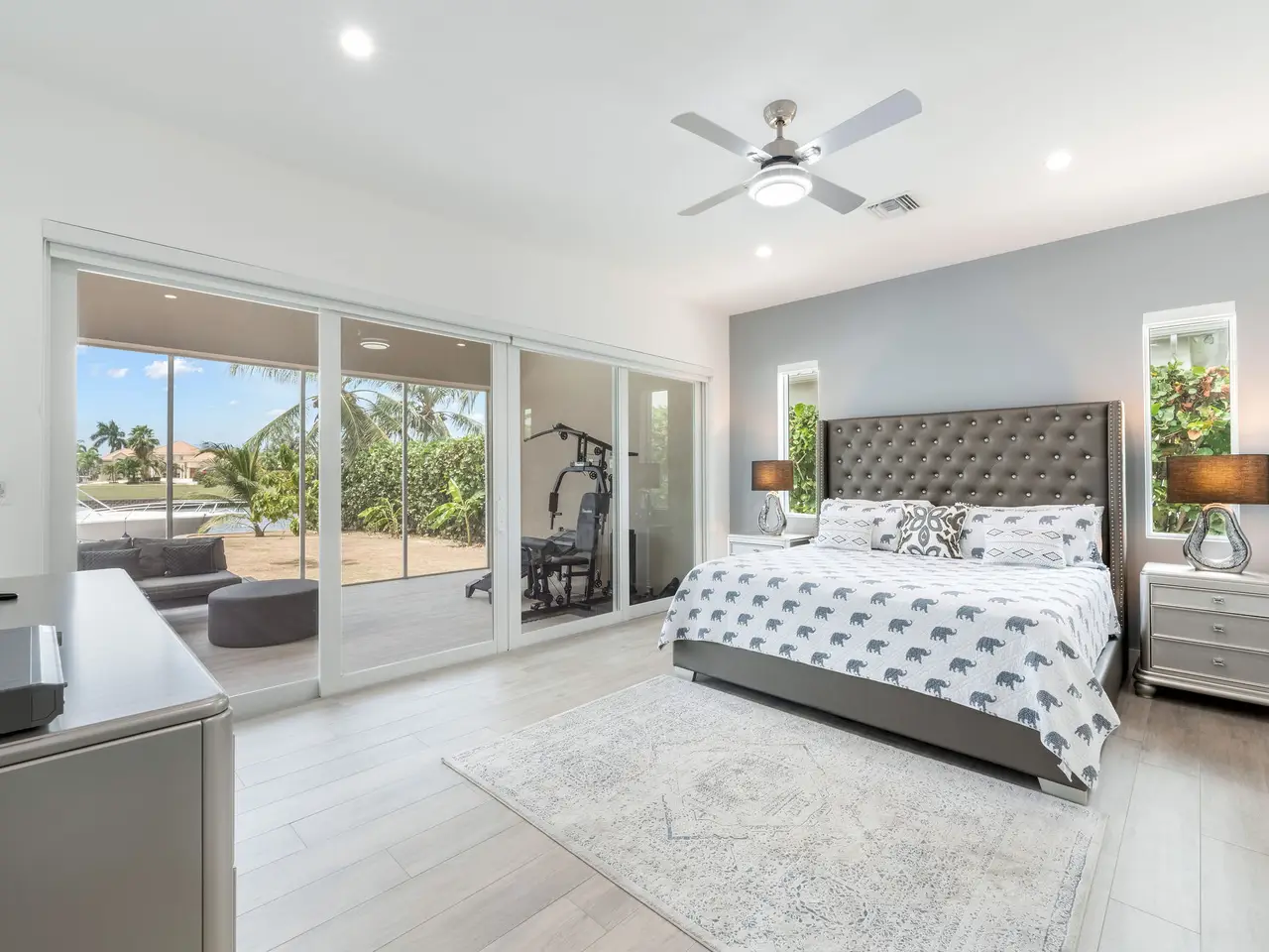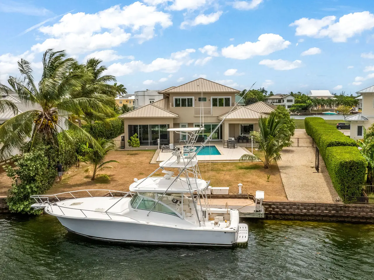 Welcome to your waterfront oasis in the prestigious Grand Harbour community! This meticulously designed canal home offers luxury and comfort, boasting three bedrooms plus a den and four bathrooms. Upon entering, you'll be greeted by an expansive open floor plan seamlessly connecting the living, kitchen, and dining areas, providing an ideal space for both relaxation and entertainment. The ground-floor primary suite is a true retreat, featuring an en suite bathroom, dual walk-in closets, and a screened patio leading to the inviting pool and outdoor area. Whether enjoying a morning coffee or hosting a soirée with friends, this private sanctuary offers endless possibilities for outdoor living. Peace of mind for years to come is offered by this well-built home, which was constructed with craftsmanship and durability in mind. Boaters will appreciate the 40-foot boat dock's usefulness as it provides easy access to the pristine waters of the spectacular North Sound. Surrounded by heat-tolerant landscaping, this home offers a serene escape from the hustle and bustle of everyday life while still being conveniently located near shopping, dining, and entertainment options. Take advantage of the opportunity to experience waterfront living at its finest. Schedule your private tour today and discover the endless possibilities at this Grand Harbour gem!