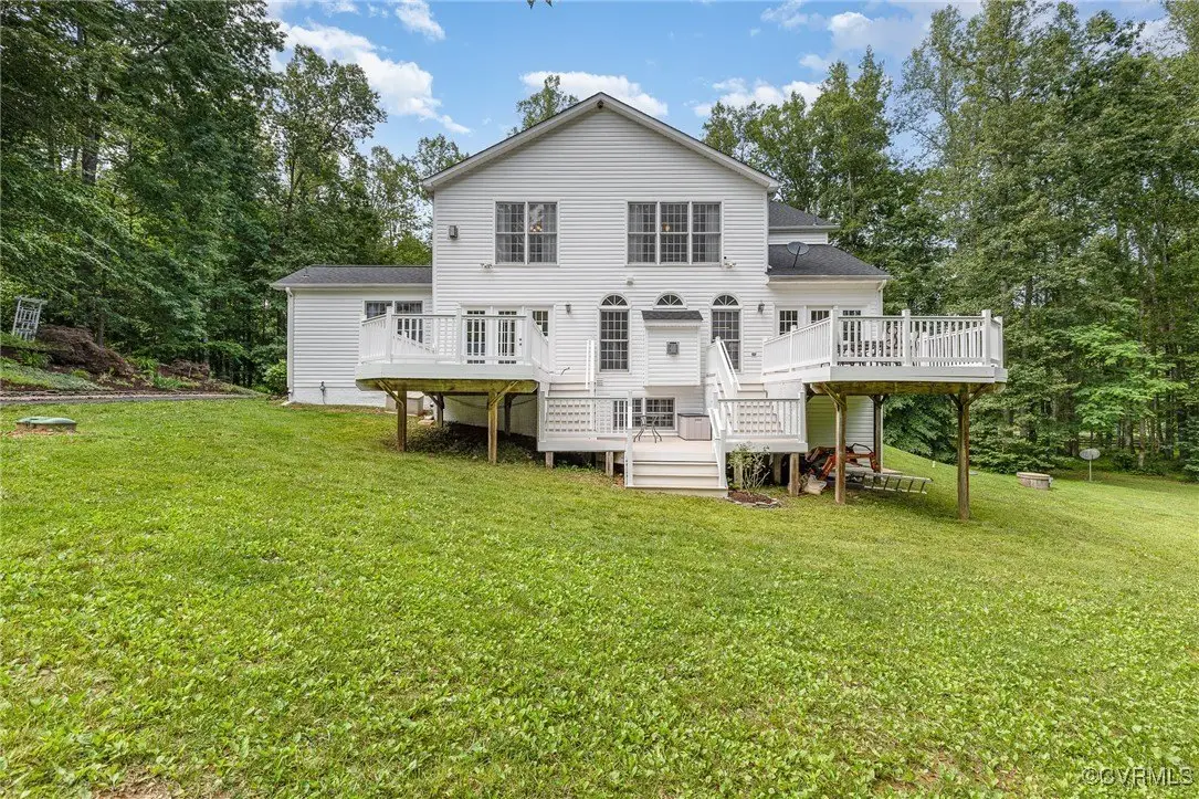 Welcome to 160 Walnut Ridge Dr -Your Dream Home Awaits! Set on a beautifully fully fenced lot, 11.4 acres! This stunning property offers the perfect blend of elegance, functionality, and tons of space.You'll fall in love before you even step inside thanks to the expansive country-style front porch & brand new concrete walking path. Step into the home through a bright, open entryway w/grand staircase & entry flowing into a spacious layout w/charming hardwood floors throughout main level. Updated kitchen, featuring BRAND-NEW quartz countertops, brand new custom tile backsplash, & an inviting eat-in dining area w/large windows that flood the space w/ natural light. The bright & open concept living room is the perfect gathering spot, showcasing a gas fireplace, custom columns, & arched windows that create an elegant & comfortable atmosphere. The main level also features a 1st-floor bedroom w/an attached full bath, perfect for guests or multigenerational living. Also included on the 1st floor- Enjoy a dedicated office, a formal dining room, and a formal living room-each w/atrium doors leading out to the front or back porch. Huge 3 tier deck off the back of the house which overlooks the spacious yard. New roof, 2024. Upstairs, you'll find 3 bedrooms w/ 2additional rooms, all with brand-new carpeting & a spacious landing area. Luxurious primary suite features a gas fireplace, large windows that bathe the room in light, & a spa-like en suite bathroom w/ a double vanity, soaking tub, walk-in shower, & 2 walk-in closets. The fully finished walk-out basement provides even more space, complete w/ a full bathroom, ample storage, and flexible areas perfect for a home gym, music studio, or recreation room. And don't miss the incredible 48'x40' detached garage/workshop, complete with a car lift. With a 2-car attached garage, incredible interior updates, and unmatched outdoor amenities, this home offers the best of both luxury & comfort. Located in sought-after Stafford- less than 1 hr from DC, it's a must-see!