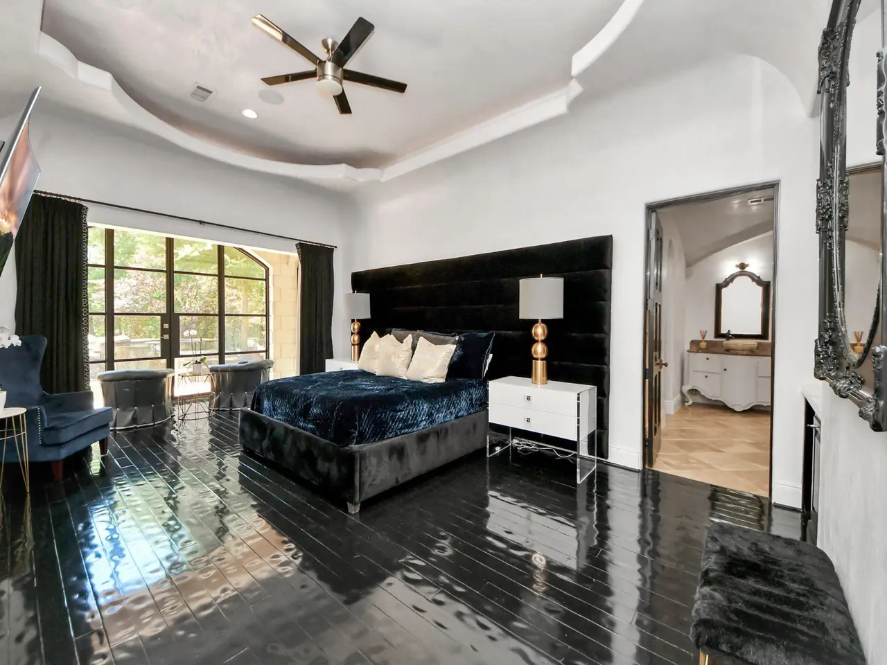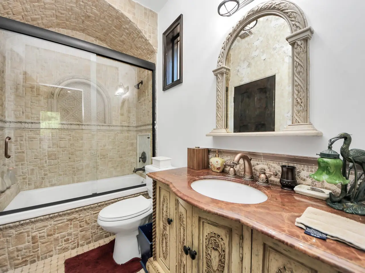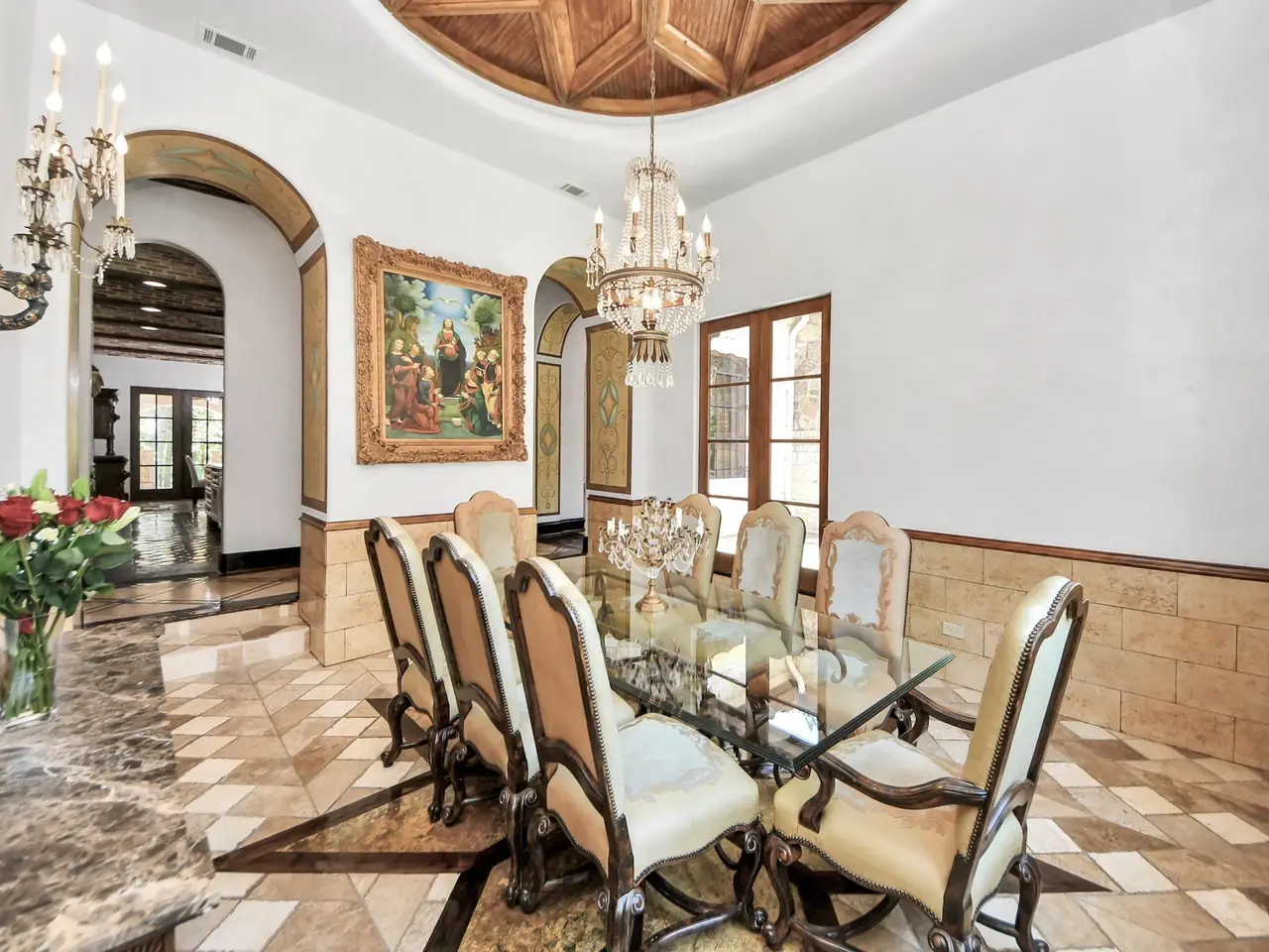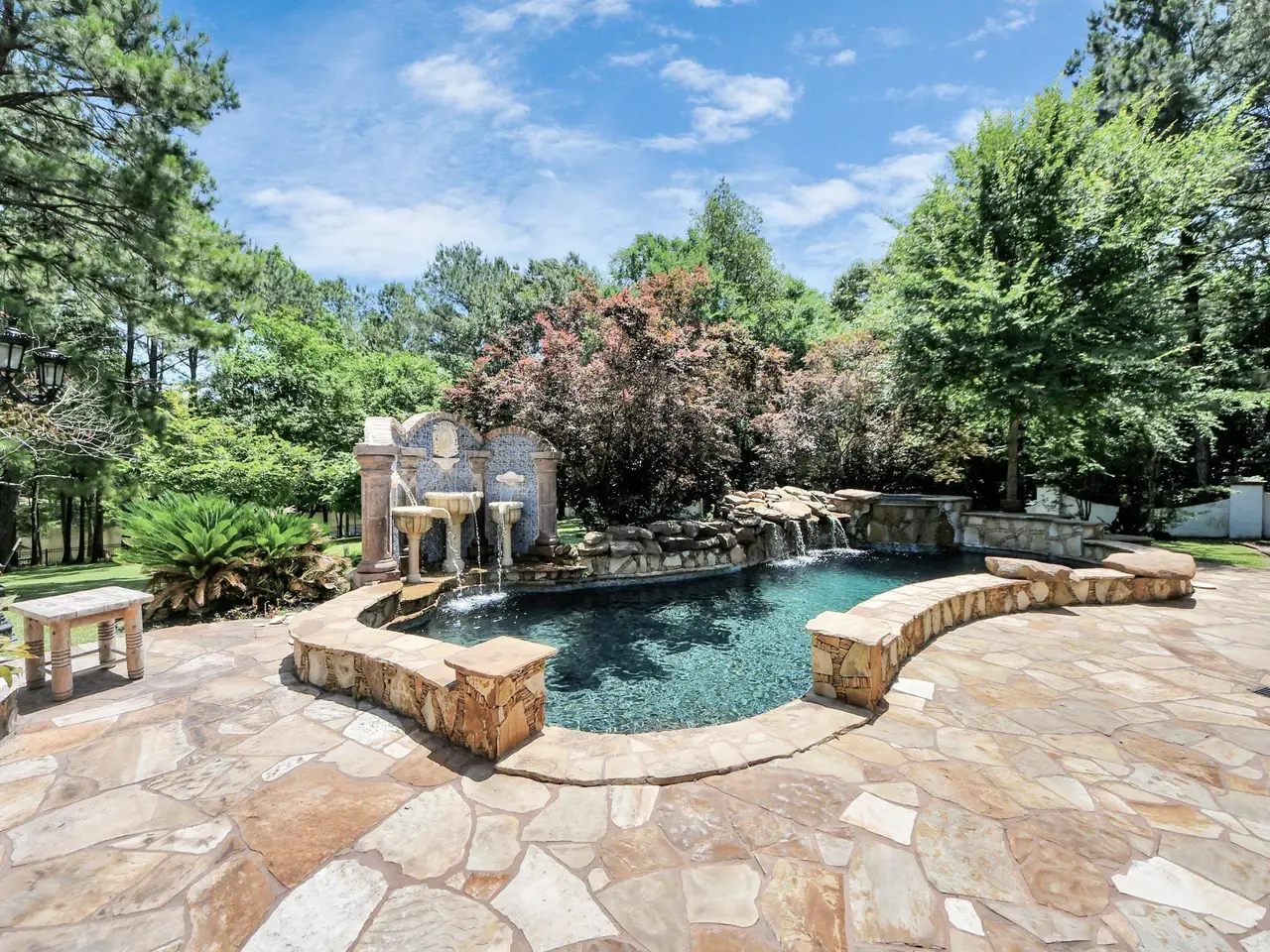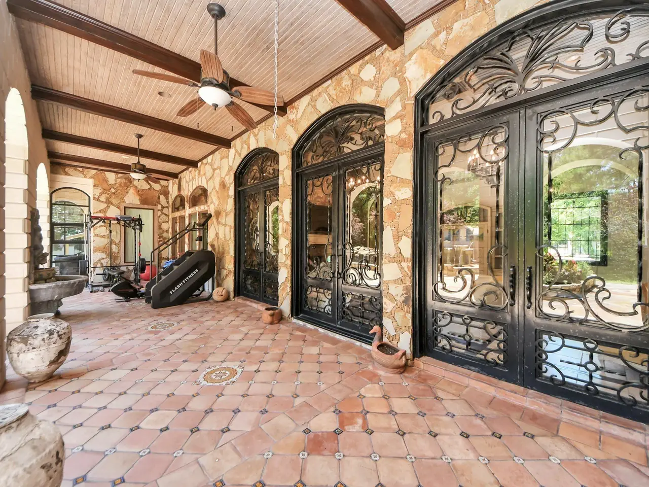 Experience luxury in this stunning custom Spanish-style home featuring 5 spacious bedrooms, 4.5 bathrooms, and a layout ideal for both entertaining and everyday living. Nestled on expansive acreage with private lake access, this residence blends elegance and tranquility. Highlights include a grand formal dining room, a dedicated office with custom wood built-ins, a large living area, a kitchen with bar and breakfast nook, and a versatile game room. Enjoy movie nights in the private theater or unwind outdoors by the custom-designed pool. Wine enthusiasts will appreciate the beautifully crafted custom wine cellar. The luxurious primary suite includes a private sunroom with serene views of the pool. Every detail of this home exudes character, warmth, and craftsmanship. Don’t miss your chance to own this one-of-a-kind property that combines timeless architecture, modern amenities, and peaceful lakeside living.