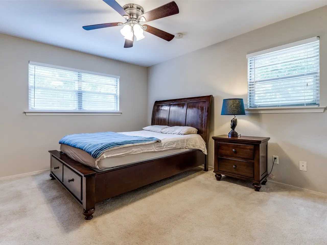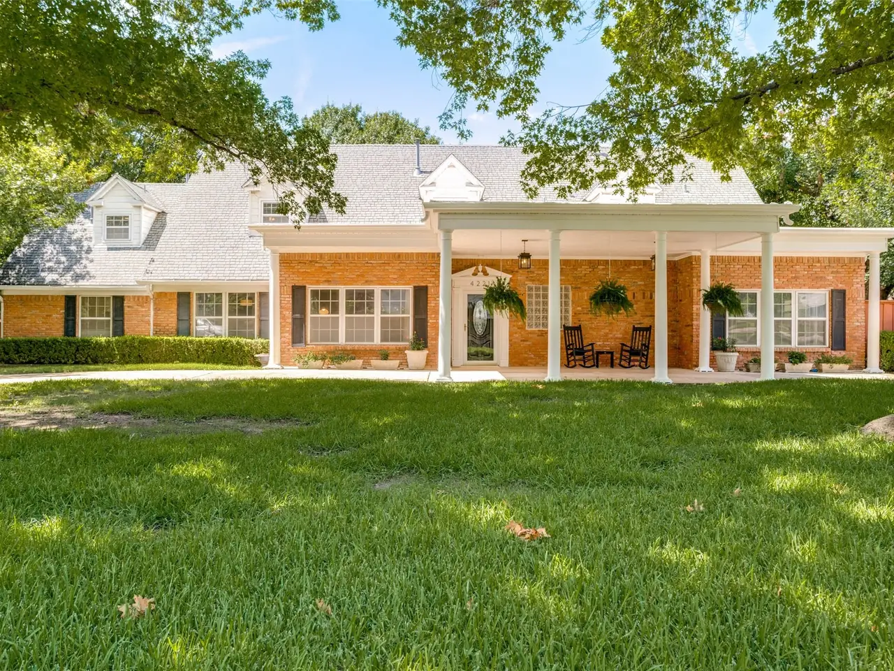 With all the charm of a 2-story, red brick Colonial-style home featuring white columns under a tall porte cochere, this 4,003 square foot home checks all the boxes! Boasting 5 bedrooms. 4 full baths & 2 half baths, the floor plan provides lots of flexibility. 2 spacious living areas are downstairs, accessing the beautifully updated kitchen with floor to ceiling cabinets, granite counters, & a full suite of stainless steel appliances. The inviting den provides beautiful builtin shelving & a handsome fireplace, with a door to the back patio. The ensuite primary bedroom & a second ensuite bedroom are on the 1st floor, with 3 bedrooms & 2 baths on the 2nd floor. At the top of the stairs is a game room available to 2 connecting bedrooms that share a large updated bathroom, with a 5th bedroom that accesses another updated full bath! At the end of the hall is a large office space that opens to a cozy media room! Surrounded by grassy lawns & tall trees in front and back, there is a captivating white back house with all utilities, & just enough space for an overnight guest! A floor plan & survey are available.