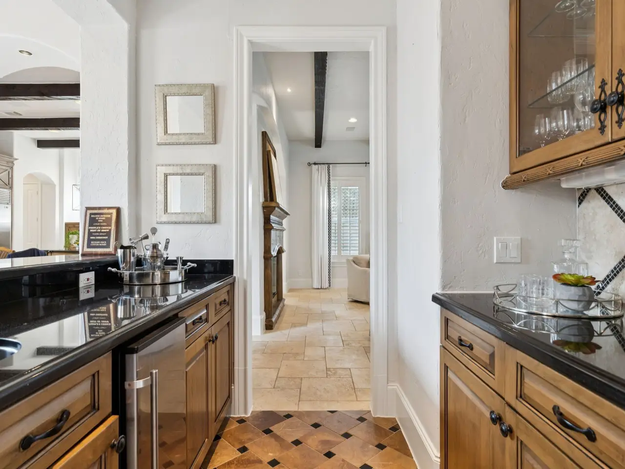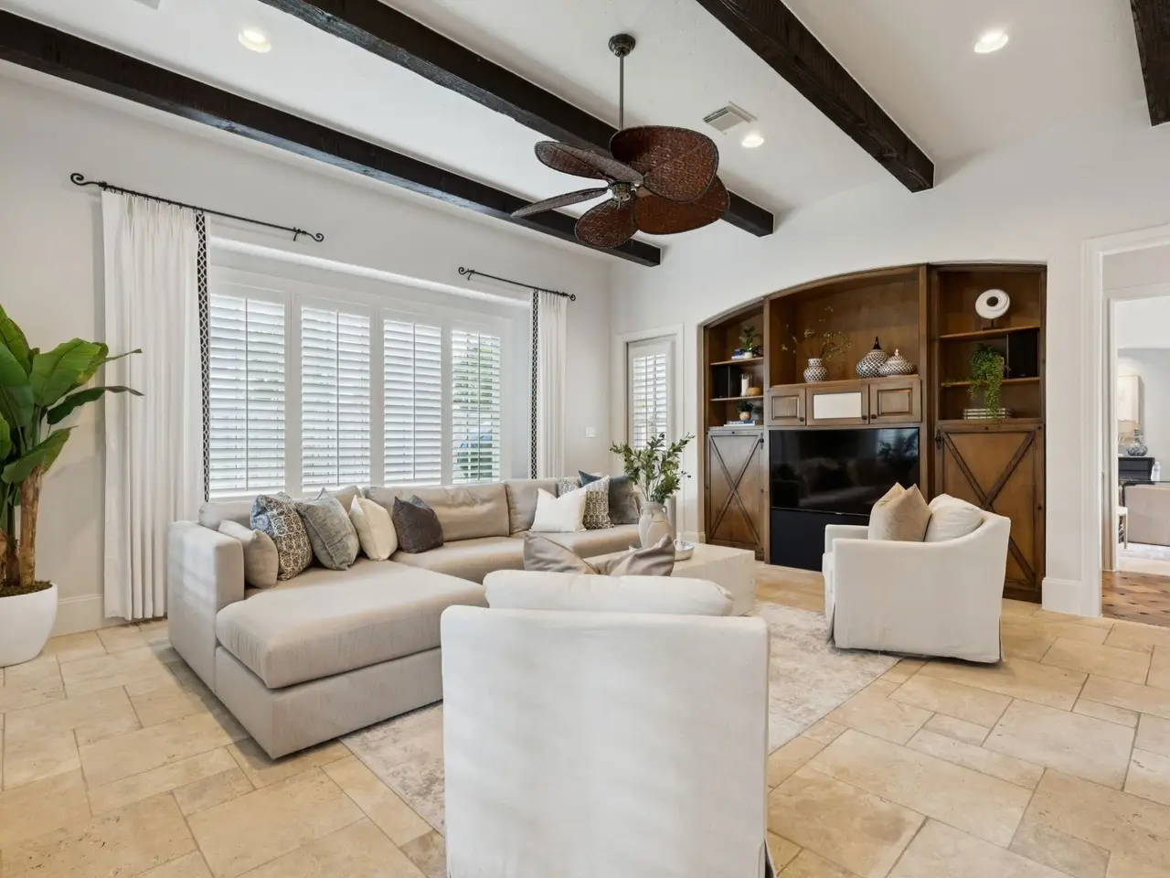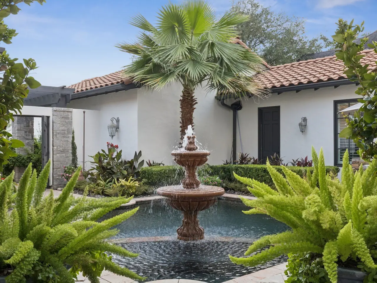 Designed and built in 2001 by acclaimed Richard Price, this home won GHBA 2003 award for design. Front, private courtyard with pool, fountain and spa wraps around the home and features a new outdoor kitchen. Stylish double height foyer welcomes you w/ designer lighting. Country style kitchen with Thermador appliances with seamless flow into family room. Water osmosis system. Private Primary Bedroom with spa style bathroom and generous closets. Sumptuous dining room with attached wine room and butler's pantry and further formal living room. 3 bedrooms up, all with ensuite - and large games room. Outside roomy back yard with new Astro Turf & Tuff Shed (both 2024). Shutters throughout the home, exposed beams, double garage and driveway parking. Outside fully painted (2025). This home is unique and has been beautifully maintained by current owners.