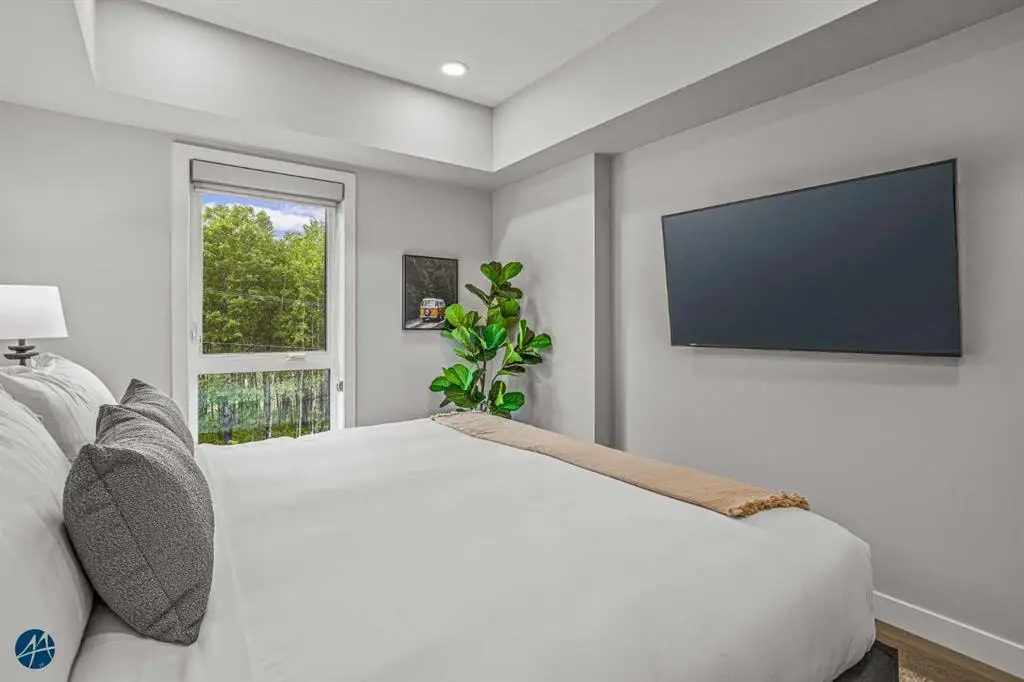 This is your opportunity to own your own little piece of the Rockies. This 3 bedroom, 2 bathroom short-term rental has beautiful treed and west facing mountain views that can be enjoyed from the large private patio. Turn-key ready this property features a custom furniture package, modern mountain chic decor, patio furniture plus BBQ; plus with this being a new complex, this means all new appliances, including in suite laundry. In addition to the spacious, bright & airy suite interior you also have heated underground storage, a large heated outdoor pool & hot tub, fitness room, secure underground storage cage and separate bike storage. List price includes GST