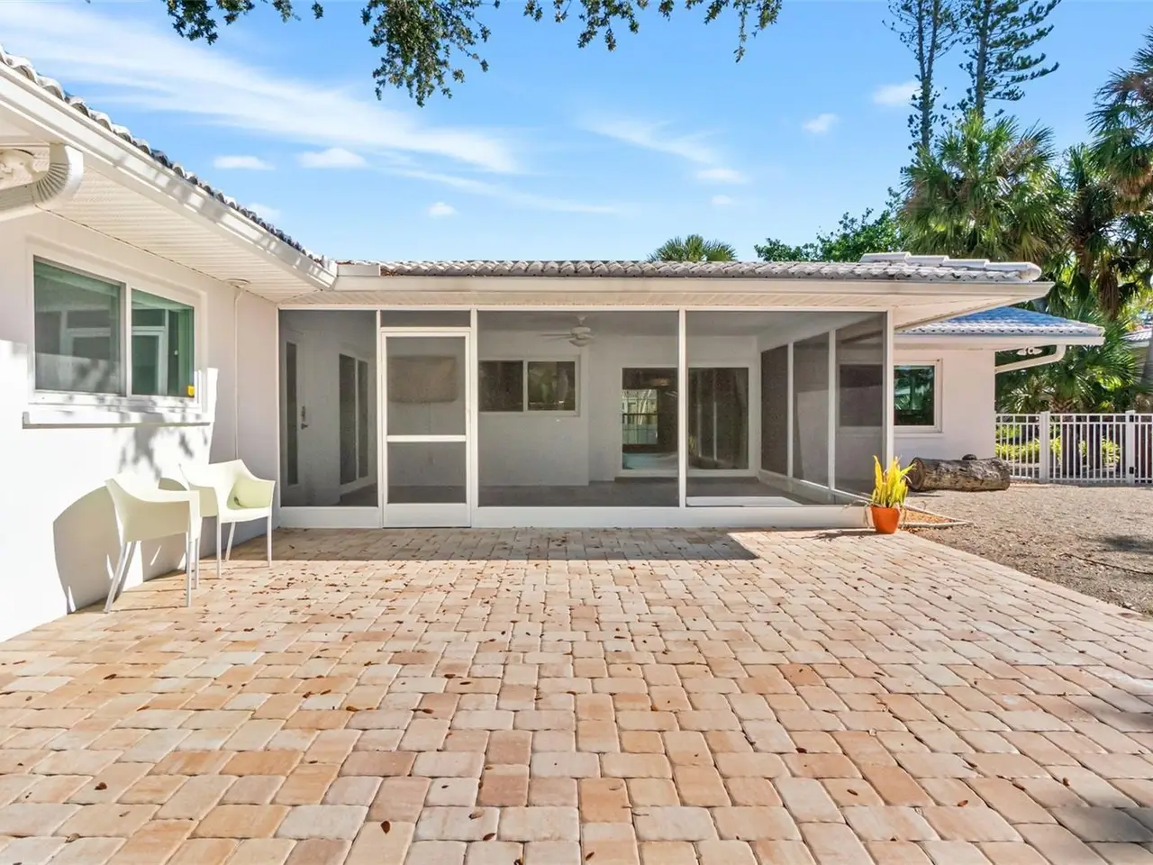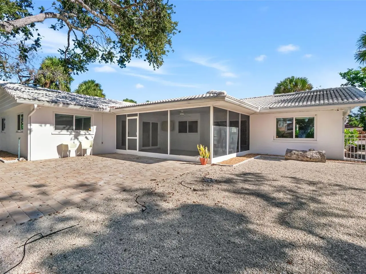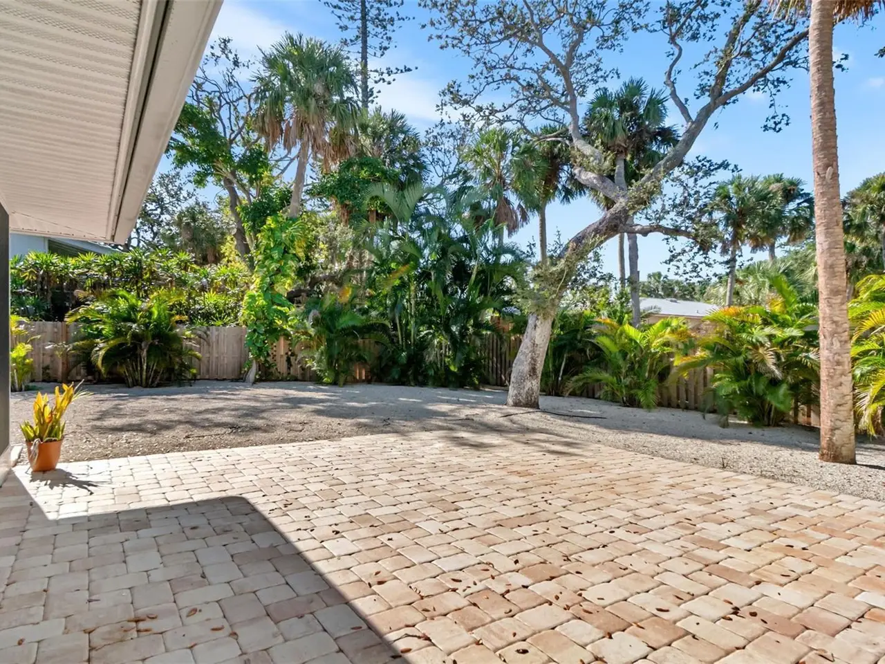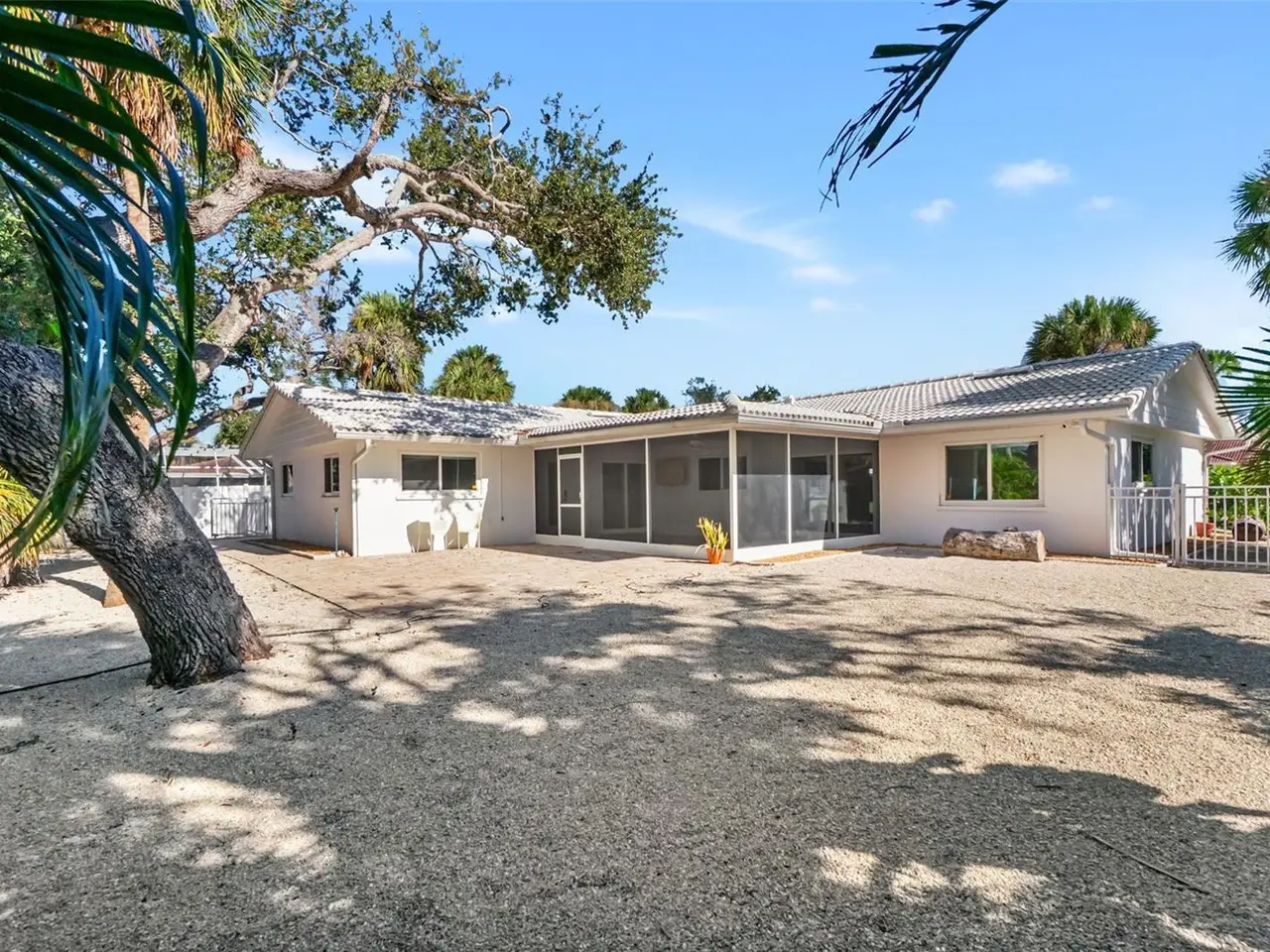One or more photo(s) has been virtually staged. Nestled near the gentle waters of Roberts Bay, this enchanting Siesta Key home rests on a quiet cul de sac street where the only sounds are the whisper of palms and the laughter of neighbors walking by. Though not waterfront, the location captures the essence of island life - peaceful, private, and just moments from where the sun dips into the Gulf. A short stroll or quick bike or golf cart ride has you in the center of vibrant Siesta Key. Step inside, and you'll feel the warmth of a home that's been lovingly renewed. Every detail reflects care and comfort - from the four inviting bedrooms and two full baths to the light-filled kitchen adorned with stainless steel appliances and a captivating blue glass tile backsplash reminiscent of the Gulf waters just moments from your front door. The dining area invites long, easy meals, while two separate living spaces offer versatility for gathering, relaxing, or simply enjoying the rhythm of coastal living. Life is low maintenance and carefree with durable lvp flooring that looks modern and will compliment your coastal decor. Beyond the back door lies a spacious, fenced yard - a blank canvas waiting for your imagination. Picture a pool glimmering under the afternoon sun, a lush garden framed with tropical blooms, or a firepit where evenings stretch into starlit conversations. Here, you aren't confined to someone else's vision - you have the freedom to create your own perfect oasis suited to your tastes and dreamy outdoor vibe. The charming front porch welcomes your guests - a cheerful prelude to the life that awaits within. New hurricane-rated windows offer confidence and calm, while the spacious two-car garage with smart epoxy flooring and the generous, indoor laundry room offers convenience. This is more than a house; it's a fresh beginning on Siesta Key - a place where your coastal dream can take root.