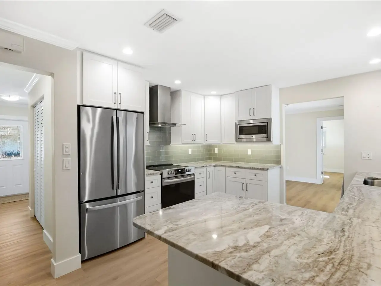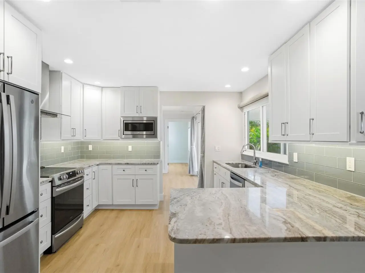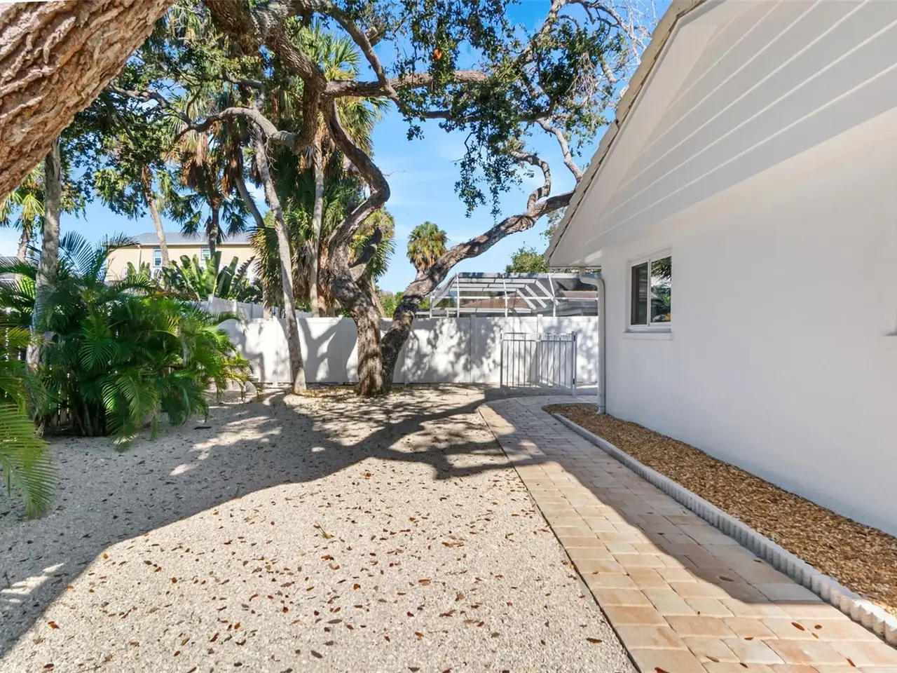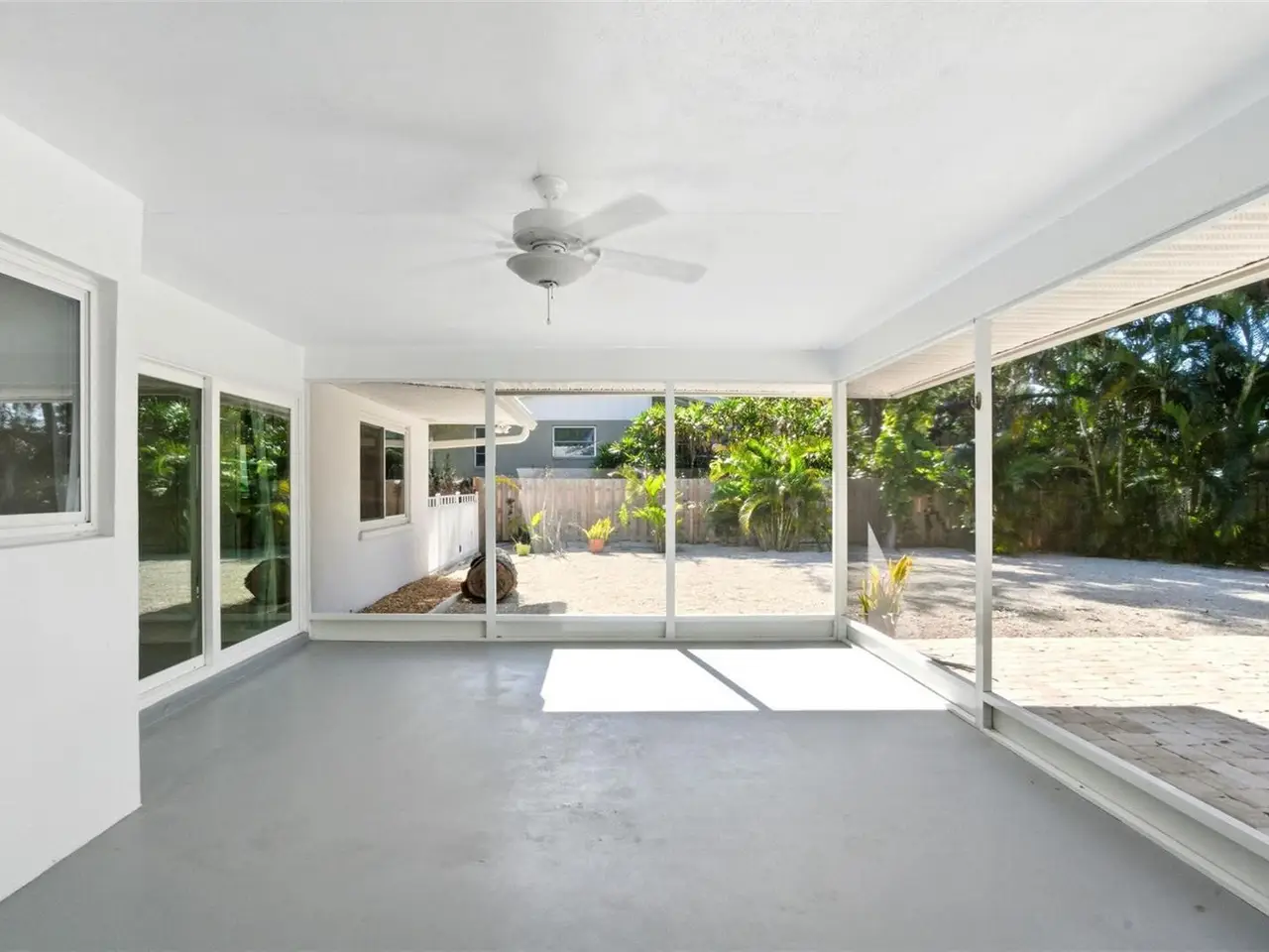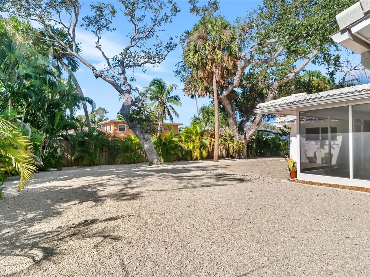 One or more photo(s) has been virtually staged. Nestled near the gentle waters of Roberts Bay, this enchanting Siesta Key home rests on a quiet cul de sac street where the only sounds are the whisper of palms and the laughter of neighbors walking by. Though not waterfront, the location captures the essence of island life - peaceful, private, and just moments from where the sun dips into the Gulf. A short stroll or quick bike or golf cart ride has you in the center of vibrant Siesta Key. Step inside, and you'll feel the warmth of a home that's been lovingly renewed. Every detail reflects care and comfort - from the four inviting bedrooms and two full baths to the light-filled kitchen adorned with stainless steel appliances and a captivating blue glass tile backsplash reminiscent of the Gulf waters just moments from your front door. The dining area invites long, easy meals, while two separate living spaces offer versatility for gathering, relaxing, or simply enjoying the rhythm of coastal living. Life is low maintenance and carefree with durable lvp flooring that looks modern and will compliment your coastal decor. Beyond the back door lies a spacious, fenced yard - a blank canvas waiting for your imagination. Picture a pool glimmering under the afternoon sun, a lush garden framed with tropical blooms, or a firepit where evenings stretch into starlit conversations. Here, you aren't confined to someone else's vision - you have the freedom to create your own perfect oasis suited to your tastes and dreamy outdoor vibe. The charming front porch welcomes your guests - a cheerful prelude to the life that awaits within. New hurricane-rated windows offer confidence and calm, while the spacious two-car garage with smart epoxy flooring and the generous, indoor laundry room offers convenience. This is more than a house; it's a fresh beginning on Siesta Key - a place where your coastal dream can take root.