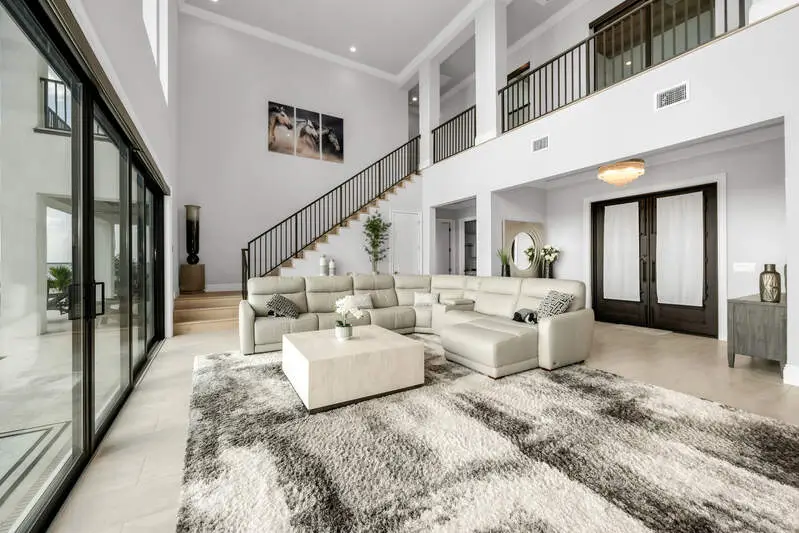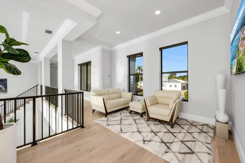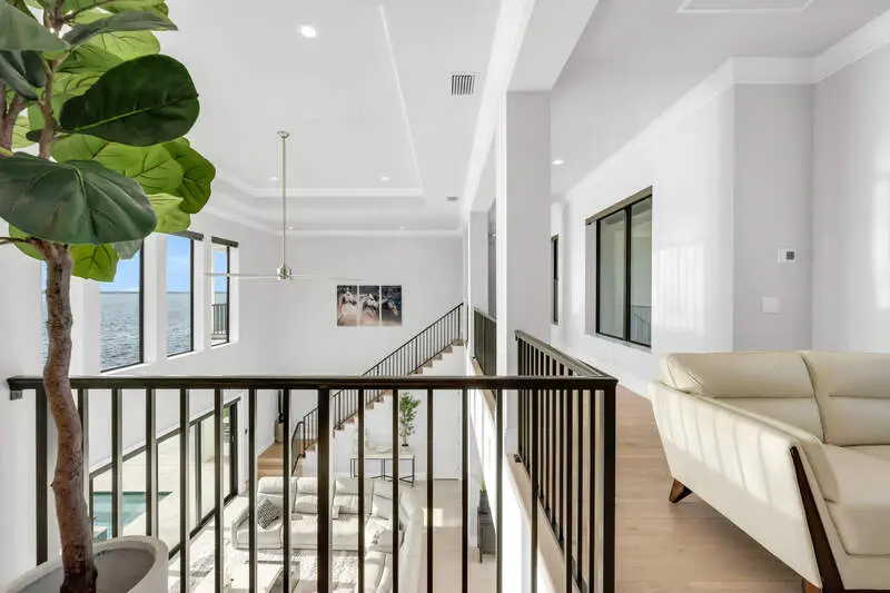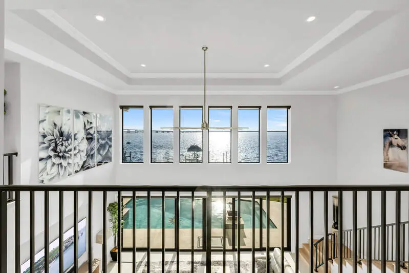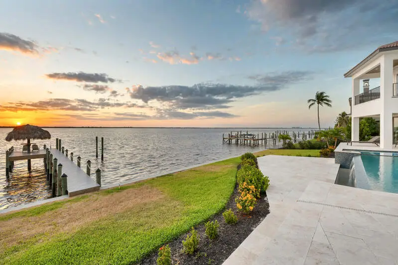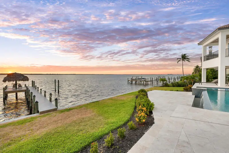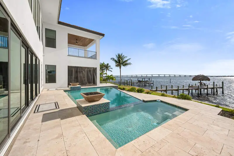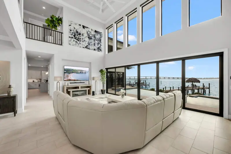 Welcome to 3924 W Riverside Drive - an architectural masterpiece newly constructed in 2023 by acclaimed luxury builder PGI Homes. This custom estate offers over 4,600 square feet of refined living space with 5 spacious bedrooms, a private den, and 5 luxurious bathrooms - all thoughtfully designed to showcase panoramic views of the Caloosahatchee River. From the moment you arrive, the grand pavered motor court and stately facade set the tone for the elegance that continues inside. Soaring ceilings and walls of glass fill the interiors with natural light, while the open-concept layout offers seamless flow between the living, dining, and chef's kitchen - all framed by breathtaking riverfront vistas. The home features two luxurious primary suites - one upstairs and one downstairs - ideal for multi-generational living or hosting long-term guests. Both offer spa-inspired en suites, with the main-level retreat boasting a freestanding soaking tub and oversized walk-in shower. Wellness and relaxation are taken to the next level with not one, but two private saunas - a rejuvenating steam sauna and a traditional dry sauna - providing a true spa experience at home. Indulge in Southwest Florida's indoor-outdoor lifestyle with disappearing sliders that lead to a resort-style lanai, featuring a custom pool and elevated spa overlooking the water. Enjoy sunrise coffee or sunset cocktails from your private dock with tiki hut, offering direct boating access to the Gulf of Mexico. Every finish has been meticulously selected to combine modern elegance with coastal luxury. Situated on one of Fort Myers' most prestigious waterfront streets, this is not just a home - it's a lifestyle. A rare opportunity to own a brand-new, move-in-ready riverfront estate with world-class craftsmanship and unmatched views.