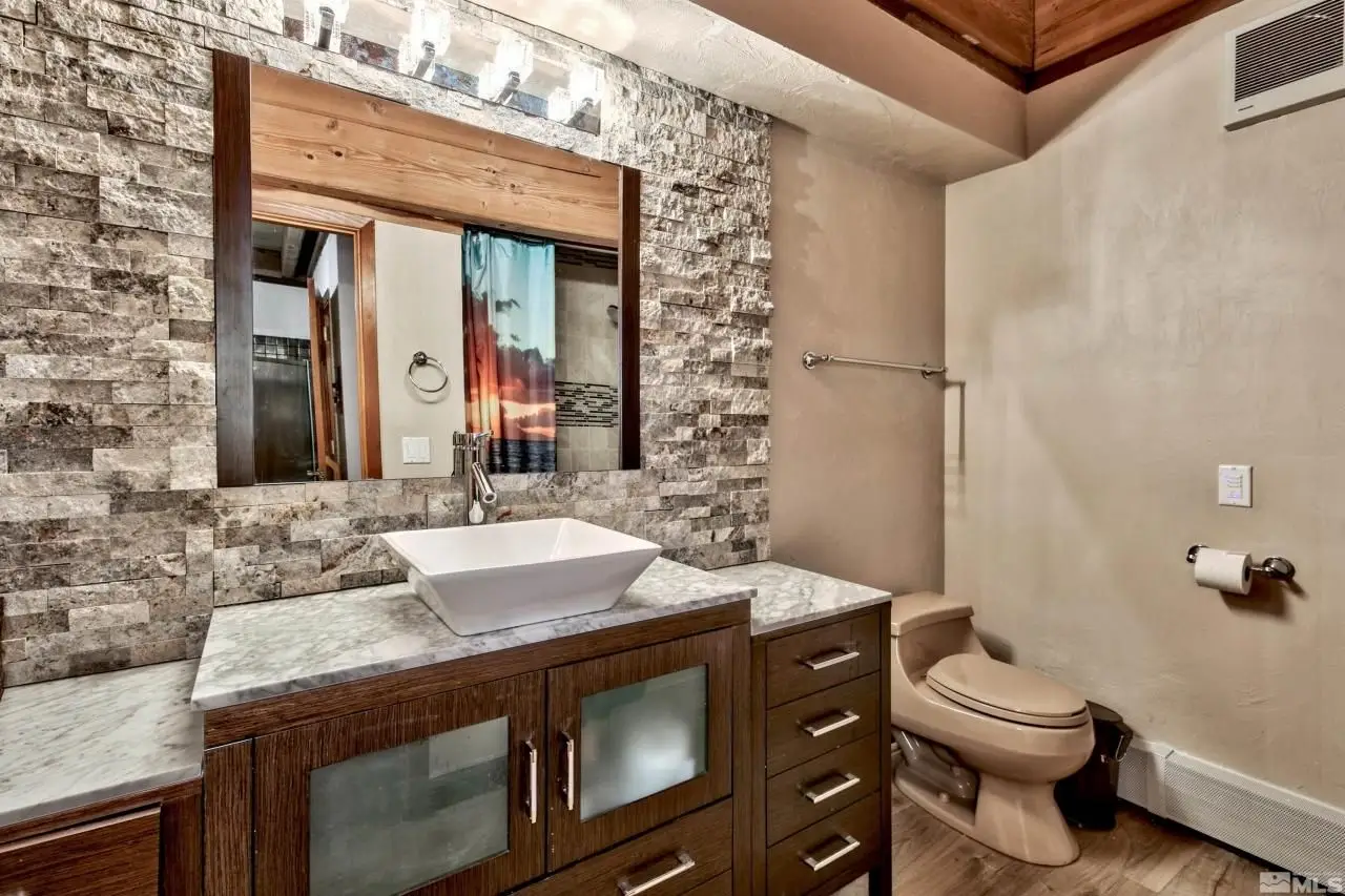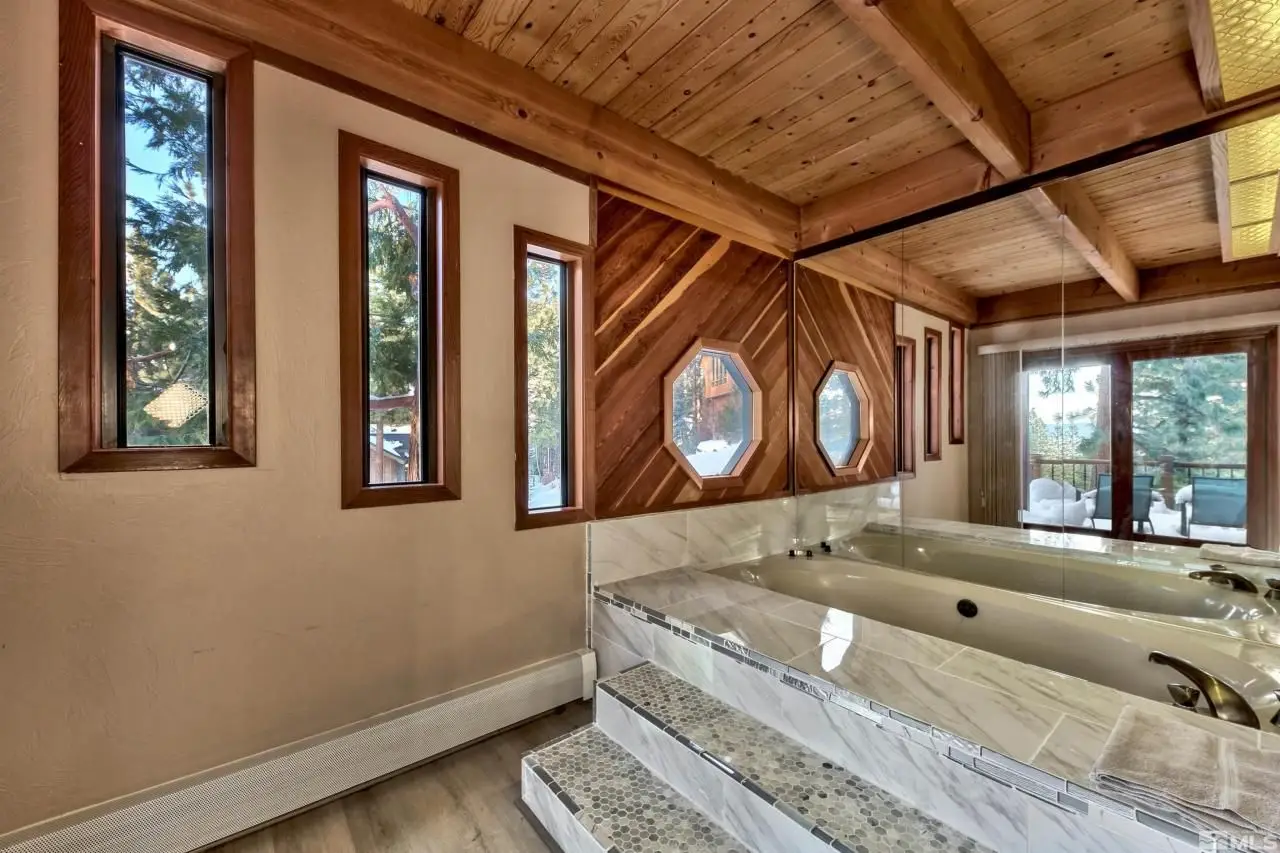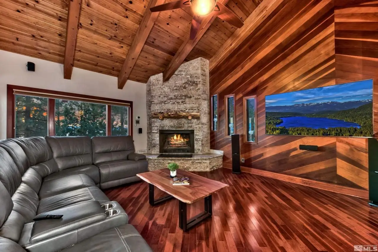 Welcome to Hidden Woods one of the most desirable neighborhoods on the East Shore of Nevada. This spacious lakeview mountain-style residence showcases grand open-beam ceilings, six bedrooms, 4.5 bathrooms, offering over 4496 sqft of living space, including a wine cellar, theater and gym. Boasting over 1000 sqft of recently stained Redwood decks. This home has all you need to relax and restore the soul. There is more than enough room for family and friends. Set on a generous half-acre lot, this property boasts distinctive features including a loft above the great room, perfect for a cozy sleeping nook or home office. The residence also has a remarkable 920+ bottle wine cellar, a dedicated home theater, and a spacious family game room. The luxurious master suite has been thoughtfully designed with a remodeled bathroom, while additional amenities include a heated driveway, 48" Wolf Range, 48" fridge, outdoor spa, indoor sauna, and three levels of outdoor decks. You can enjoy the Tahoe lifestyle to the fullest with direct access to US Forest Service hiking trails, minutes to Round Hill Pines Resort, nightlife and the renowned slopes of Heavenly Ski Resort. Hidden Woods Haven is perfect for anyone wanting a true Tahoe mountain getaway.