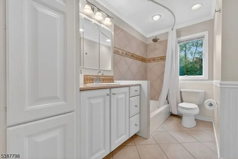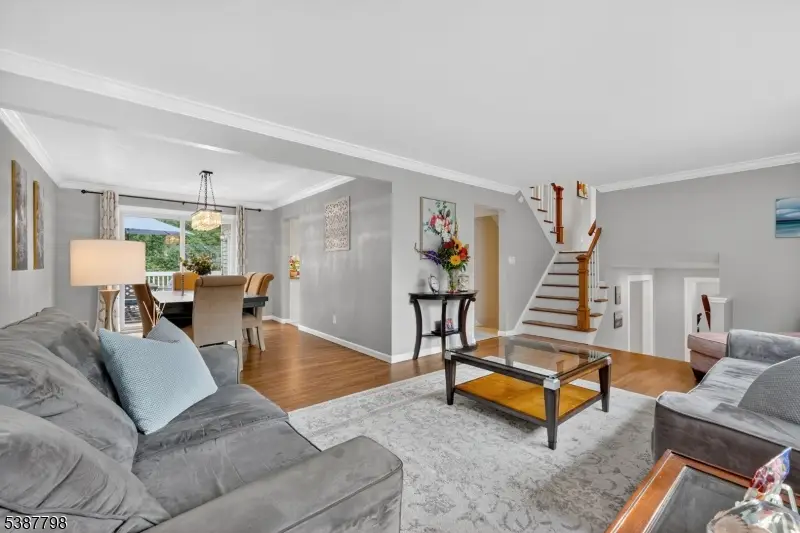 Wow! 54 Badgley will impress you from the moment you pull up to this meticulous home! They say "the kitchen is the heart of the home" and it speaks true for 54 Badgley! The 1st floor offers a large living room with an abundance of sunlight and an open floor plan to the dining room and the kitchen. The expanded kitchen offers granite counter tops, custom cabinetry, stainless steel appliances and a stunning eating area accented by a cathedral ceiling and windows on three sides overlooking the yard, deck and patio (this area is ideal for dining, game night or entertaining!) Both the dining room and kitchen offer egress to the private trek deck. The ground floor offers a gracious foyer, large family room with egress to the patio, custom built-in cabinet with lighting, the 5th bedroom (also suitable for home office) and a powder room. Upstairs are three bedrooms inclusive of the primary suite and a full bath. The third level offers another spacious bedroom with custom built-in cabinets/closets (currently used as primary). The basement is all set for conversion to a recreation room or home gym! The outside is the perfect set-up for entertaining with a large private yard, spacious patio and deck. Let's talk about location!!! Just 0.25m to Salt Brook Elementary, 0.5m to NP Train Station and bus to Port Authority, 2 blocks to Lions Park playground and 0.75m to New Providence's vibrant downtown restaurants and small businesses. Welcome home!