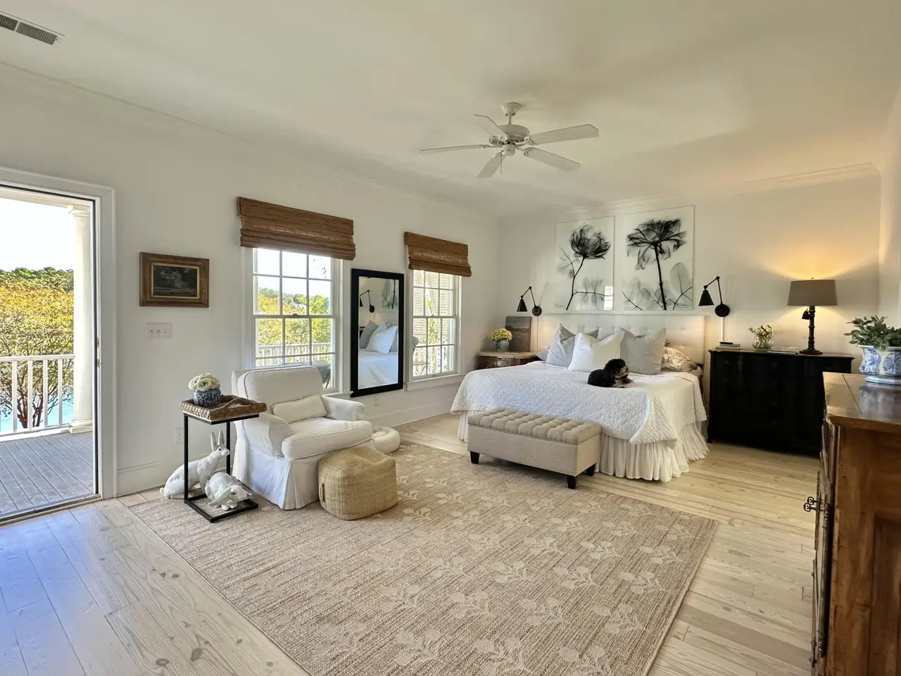 LAKEFRONT IN I'ON: At just under 3,000 square feet, this neoclassically inspired house with double piazzas and amazing views is the perfect size. There is no wasted space in this chic redesign that can accommodate a family or those downsizing. Set near the midpoint of East Lake, views in three directions are spectacular including stunning sunsets. The front porch opens to the main level with a side staircase plan that has been efficiently reconfigured to allow a living room and dining room with views of the lake, a fabulous new kitchen and large family room with fireplace and flanking bookcases overlooking the private walled garden. The expansive primary bedroom on the second floor runs the full width of the house, opens to the porch for incredible views of the lake, and has threeclosets. A second main bedroom, secluded from the family floor for luxurious privacy and space, opens to a Juliet balcony over the garden. Each additional bedroom has an en-suite bathroom. One is currently outfitted as a studio/office. Garden entry and garage can be accessed from the lane that runs behind the house. I'ON NEIGHBORHOOD: Award winning urban design with high architectural standards. 5 minutes to Downtown Charleston. I'on Club with tennis, pools, fitness center. Are features lakes, canals, walking trails, deep water dock, boat launch, amphitheater, restaurants, and shops.