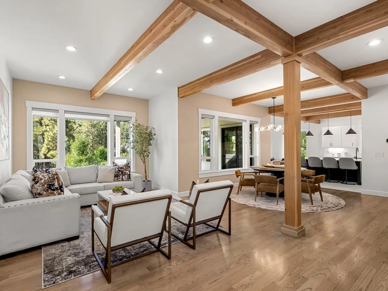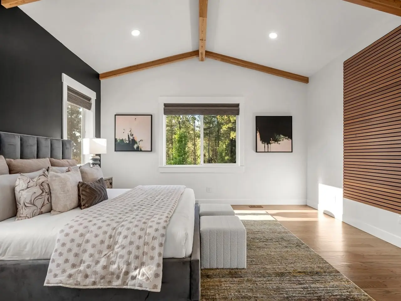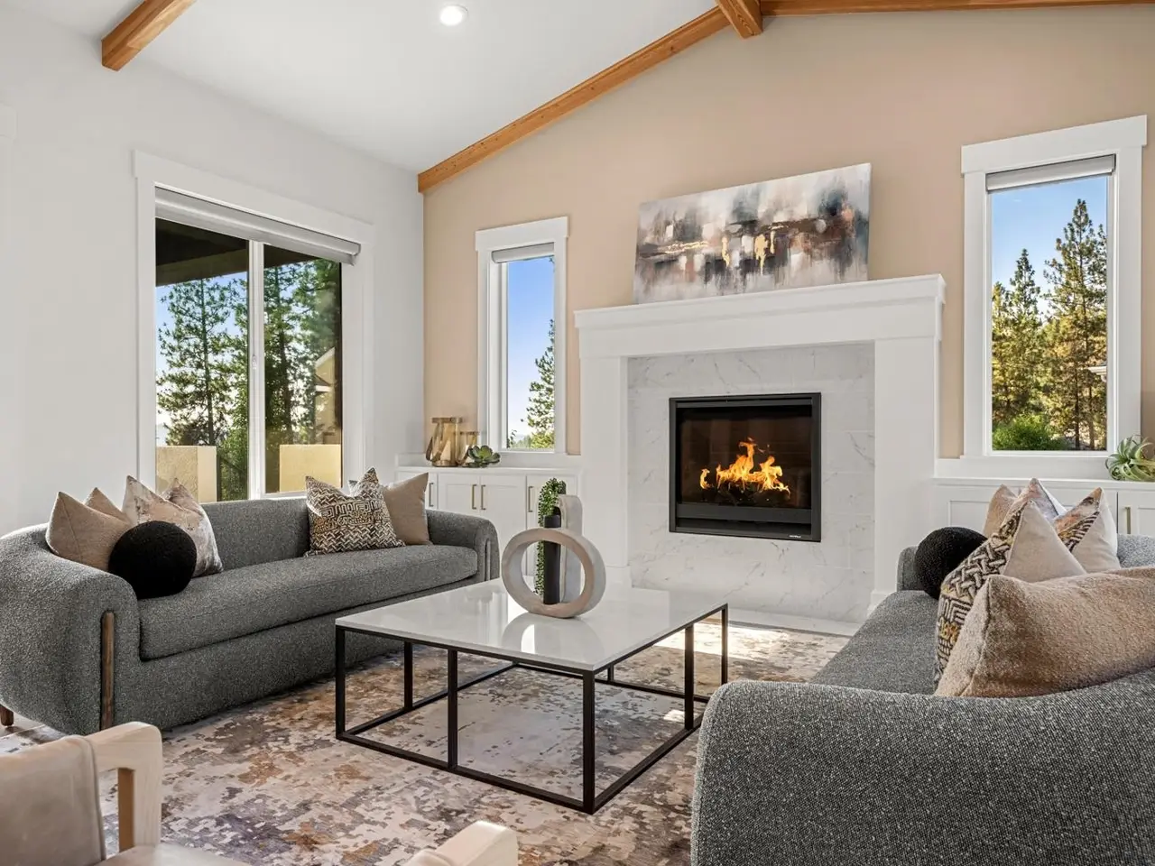 • 12ft vaulted & beamed ceilings