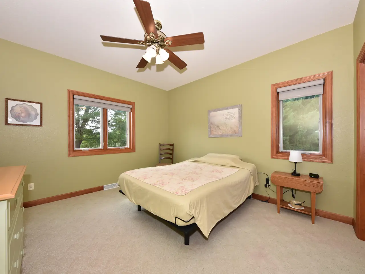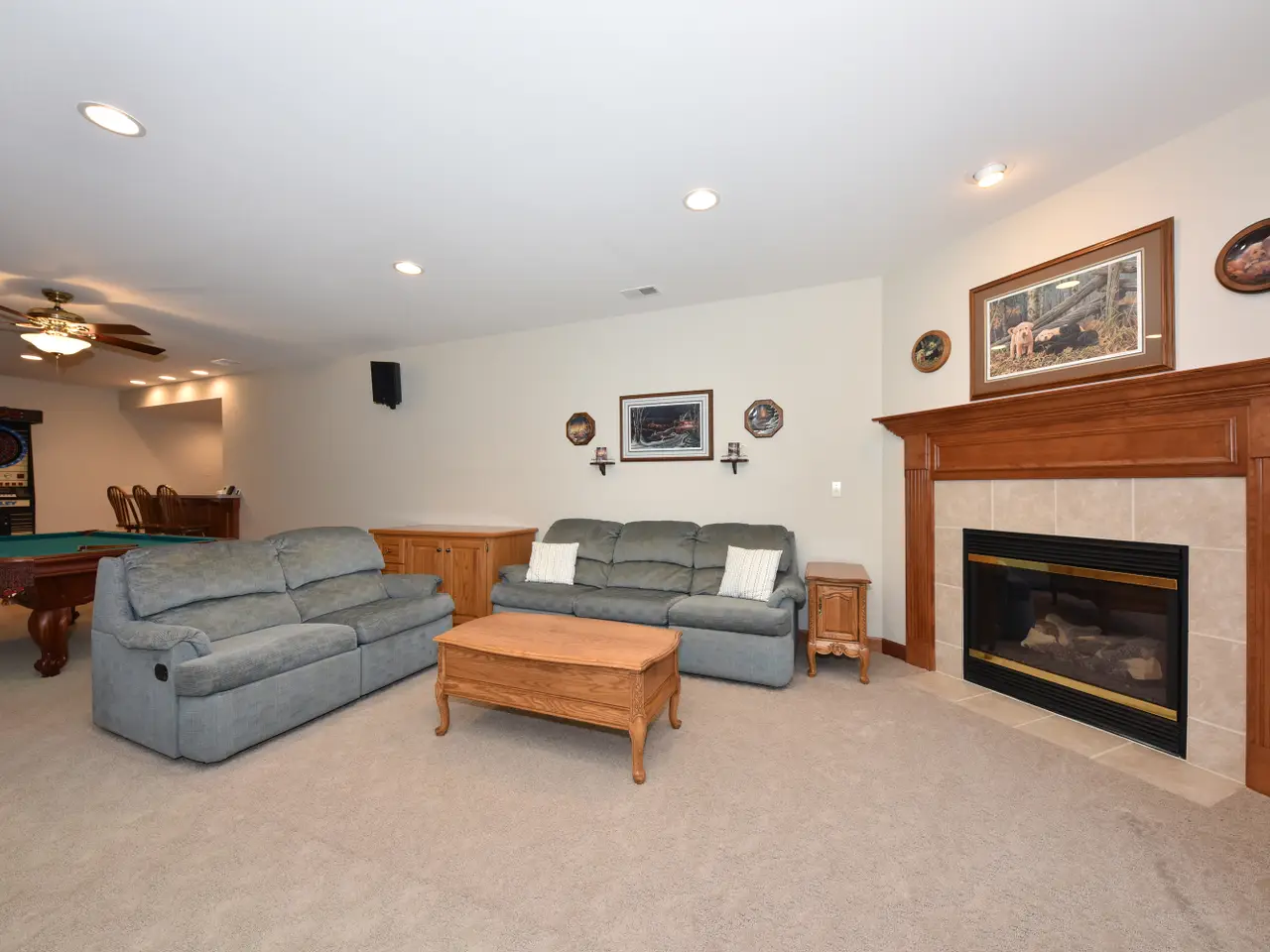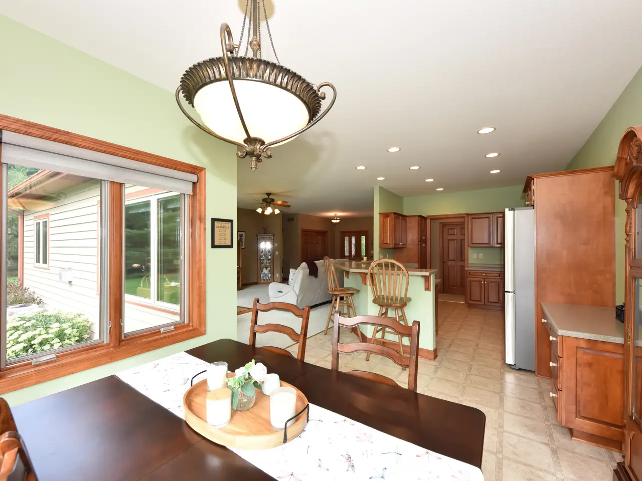 Nestled in the sought-after Watercress Springs area of Erin and near the scenic Erin Hills golf course, this impressive split ranch home embodies the lifestyle you seek. The open floor plan highlights a beautiful kitchen featuring white birch cabinets complimented by birch doors and trim throughout the home. An inviting dining area that overlooks your expansive 2.1-acre lot. The living room provides a cozy atmosphere for relaxation by the fireplace. The primary bedroom offers a private full bath and a large walk-in closet for your comfort. A Jack and Jill bedroom with an additional full bathroom complements the main level. The finished lower level boasts a family room with a second fireplace, a recreation room with a wet bar, a fourth bedroom, and a third full bath, perfect for entertaining and accommodating guests. Additionally, a remarkable 6-car attached garage with a heated workshop and its own bathroom enhances the home. For added storage, a detached garage is also available. The beautifully landscaped yard features tall trees, a lined pickle ball court in the driveway, and a whole-home generator ensures peace of mind.