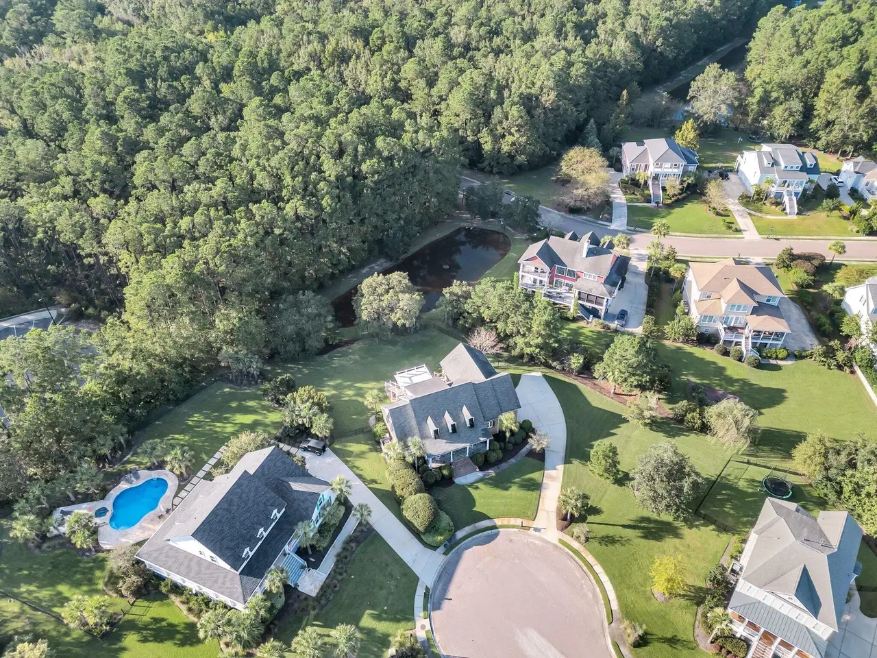 Your private Lowcountry oasis--pond, fountain, live oak, and a home built for entertaining. Move-in-ready and beautifully maintained 5BR/4BA brick home on a quiet cul-de-sac, set on over a 1/2-acre lot in a highly sought-after neighborhood. Private backyard oasis with pond, fountain, and a stately live oak. Open floor plan with hardwoods, updated kitchen (granite, SS appliances, farmhouse sink, oversized island), and spacious family room with built-ins. First-floor primary suite with spa-like bath plus 2 additional en-suite bedrooms downstairs. Upstairs offers a guest suite, custom home theater and an oversized flex room - ideal as a bedroom, workout room, office, or playroom. Neutral paint colors throughout.Enjoy the screened-in porch and an upper deck with serene views of the gorgeous oversized yard. Community amenities include an Olympic-size pool, clubhouse, dock, playground, tennis, pickleball, basketball & boat storage. Conveniently locatedunder 30 mins to downtown Charleston, beaches & 15 mins to the airport! This home is back on the market at no fault of the Sellers. Come see this gorgeous home that is move-in-ready and priced to sell. Don't miss your opportunity to be a part of this beautiful community! All information within is to the best of Agents knowledge but any items of importance such as square footage, schools, etc is the responsibility of Buyer and Agent to confirm.