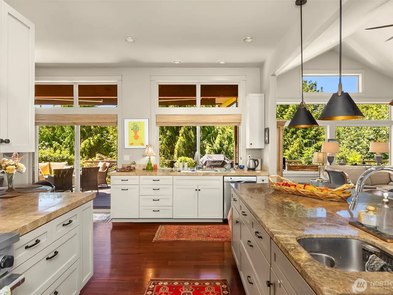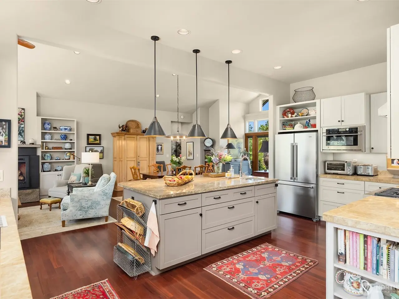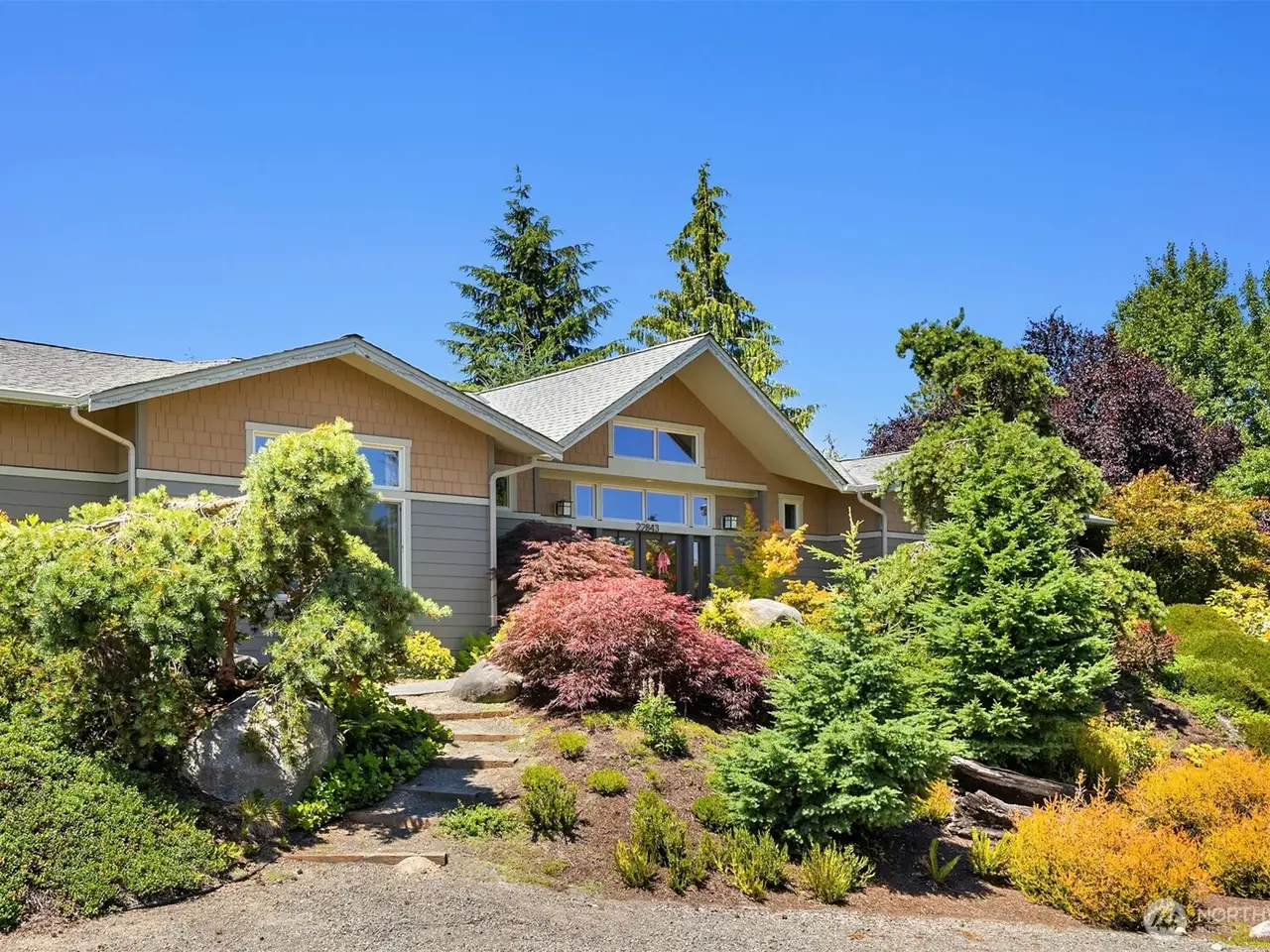 Exceptional 1 level home in Kingston's White Horse golf community. Custom 2 bdrm + office/den home blends luxury & comfort in a serene, park-like setting. Open layout w/ vaulted ceilings, hardwoods & striking fireplace features walls of windows showcase greenery & glowing western light. Chef's kitchen w/granite counters, stainless appliances, custom cabinetry + a generous walk-in pantry is a dream! Spacious primary offers spa-like bath w/soaking tub & walk-in closet. 2 other bdrms (1 currently used as the office) provides additional flexibility. Enjoy morning coffee or evening gatherings on the covered patio surrounded by gorgeous grounds. Minutes from the ferry, clubhouse & scenic trails, this is upscale Northwest living at its finest!